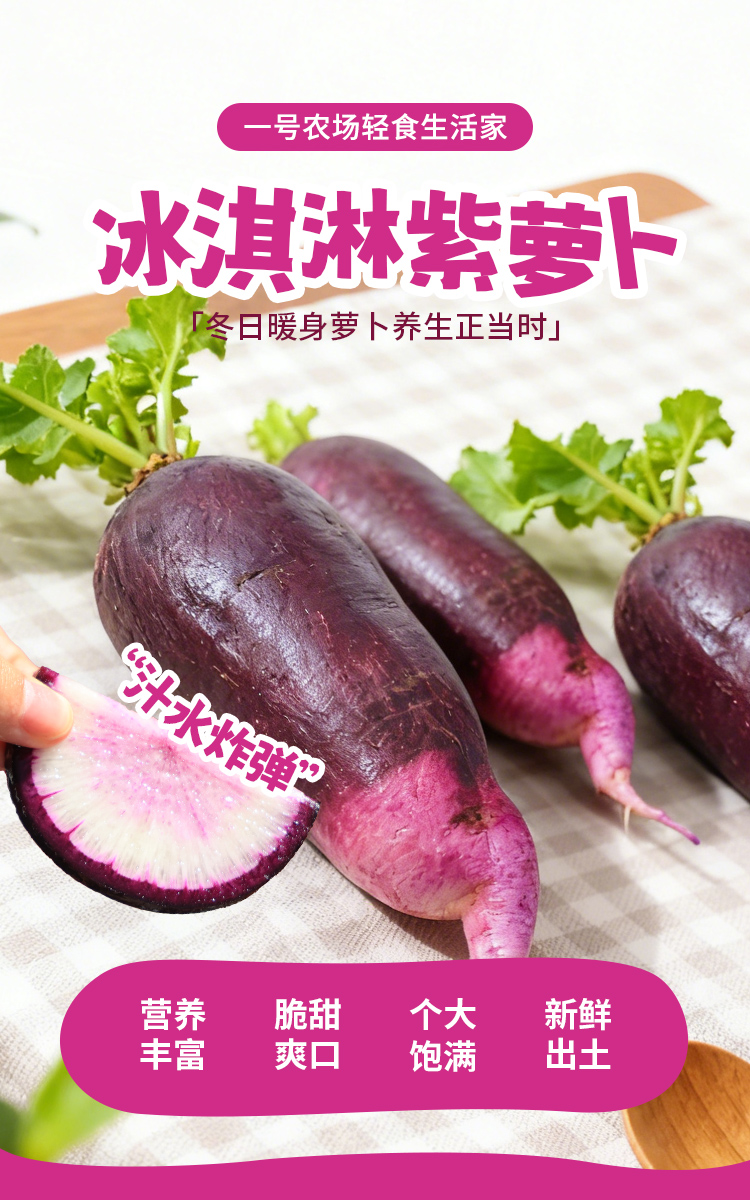 一号农场2025当季新品紫萝卜冰淇淋胡萝卜新鲜脆甜爆汁甜心不辣皮薄好吃