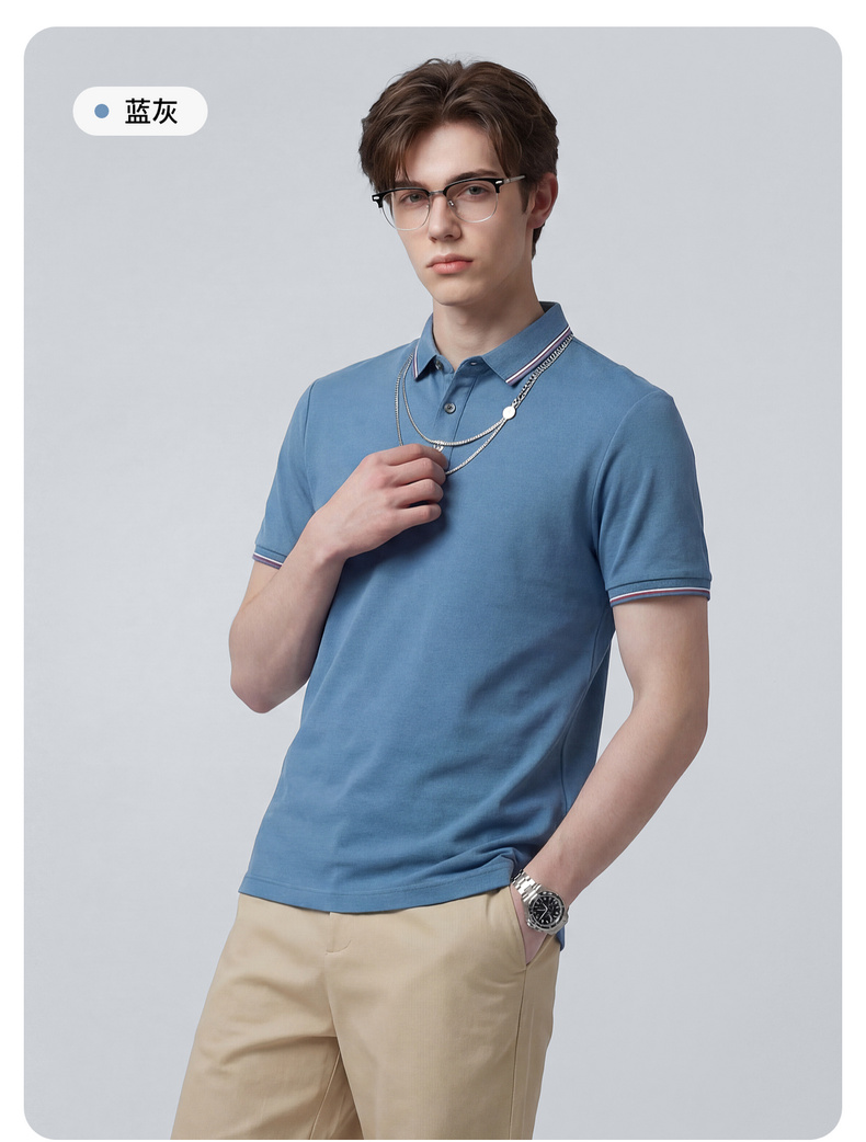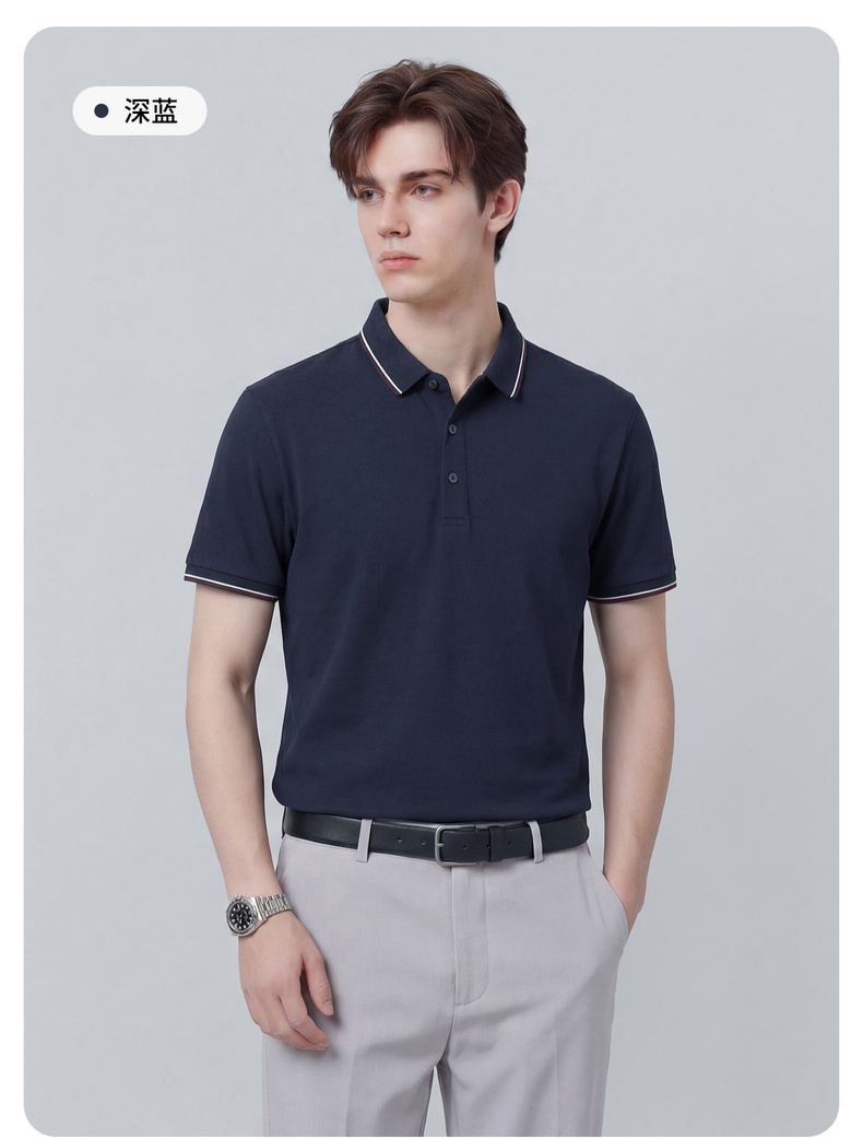 【含棉】圣得西男士通勤短袖POLO衫2026新款春季商务绅士翻领T恤