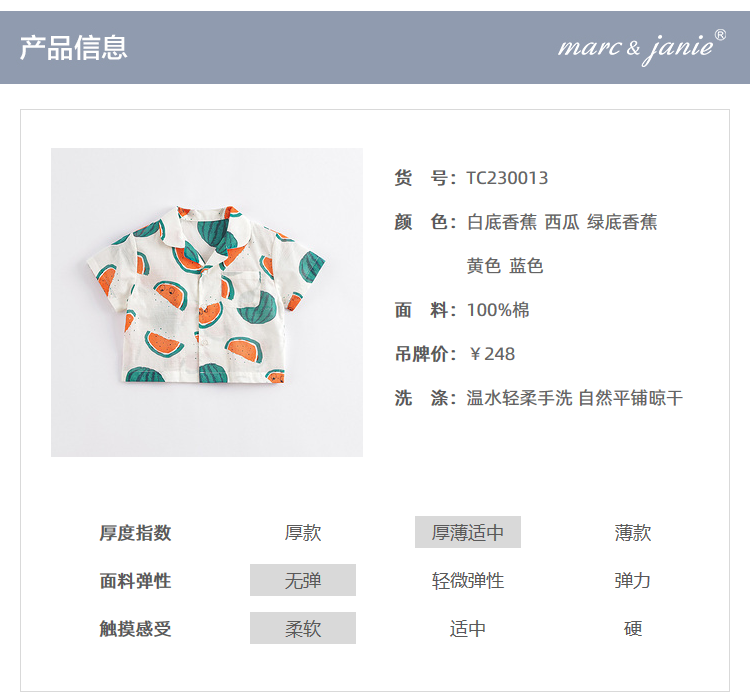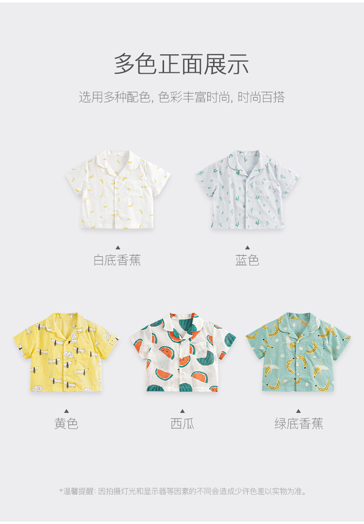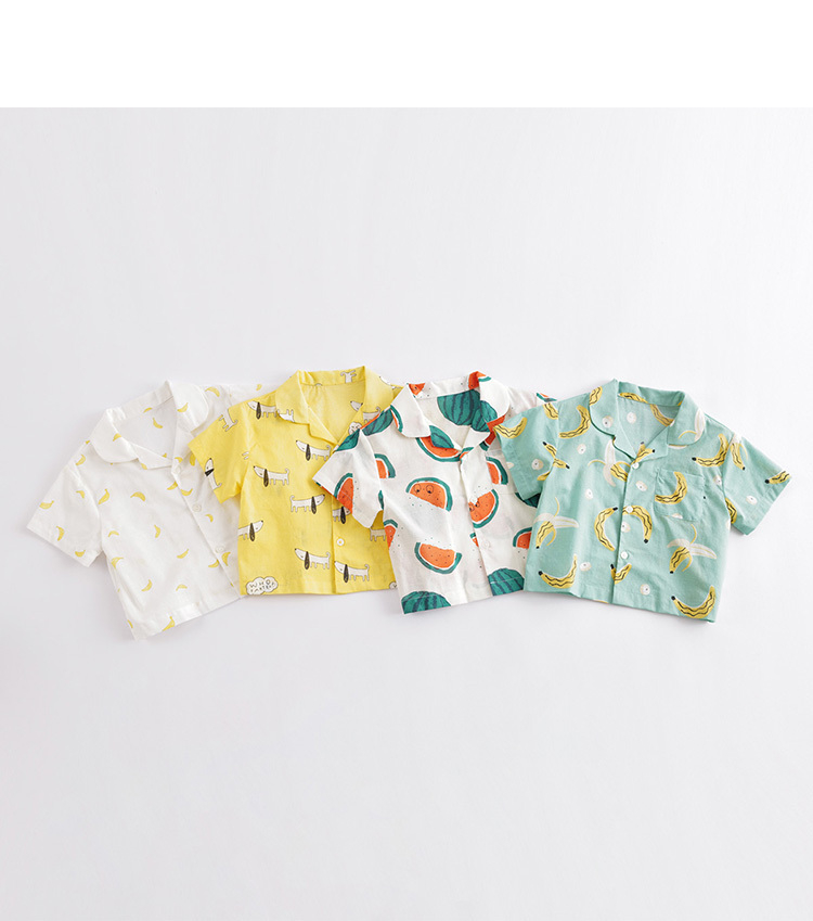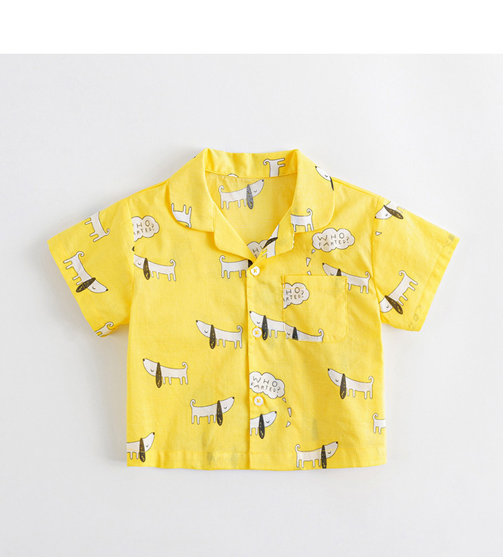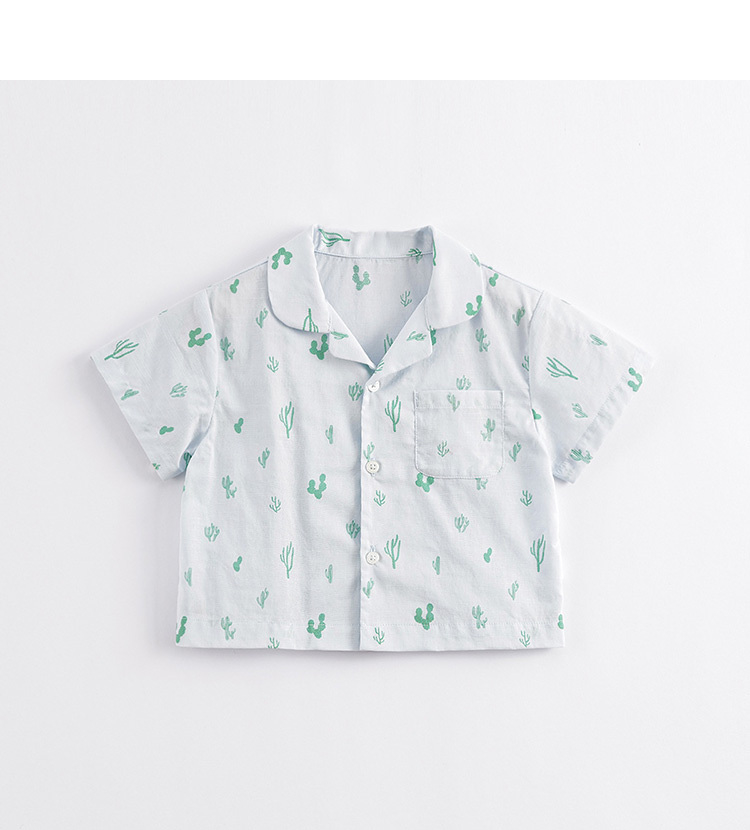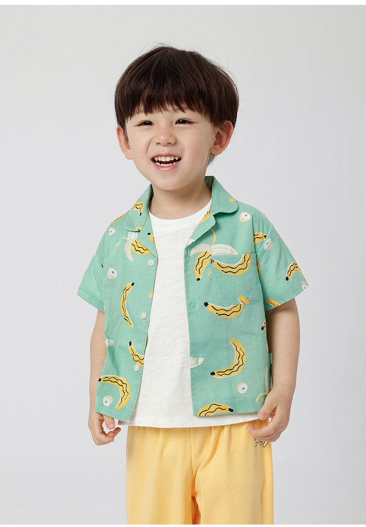马克珍妮夏装新款 男童全棉满印短袖衬衫 儿童上衣230013