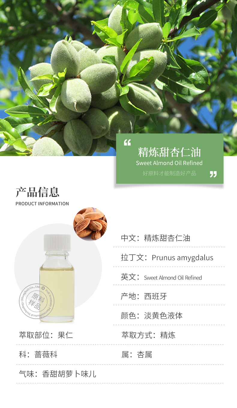 西班牙进口精炼甜杏仁油 颇黎甜杏仁基底油批发 基底精油原料