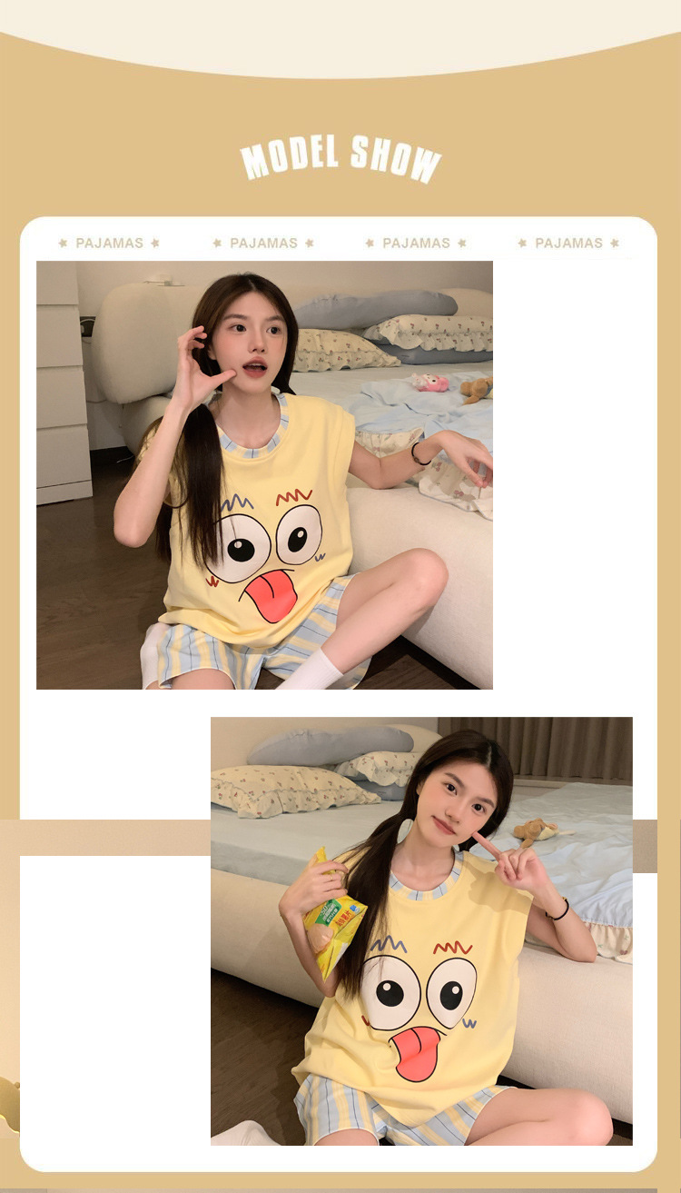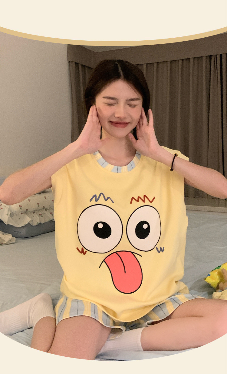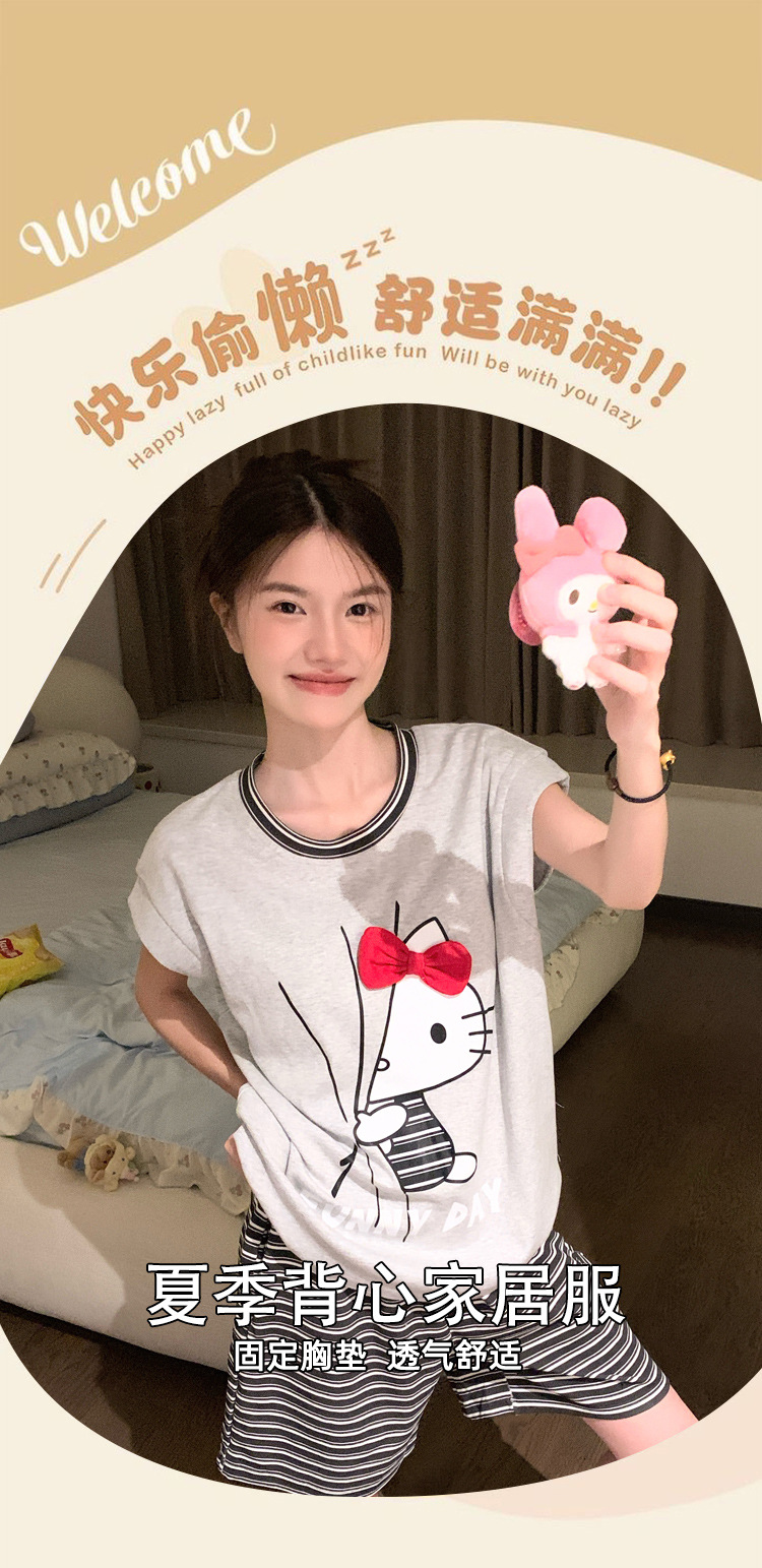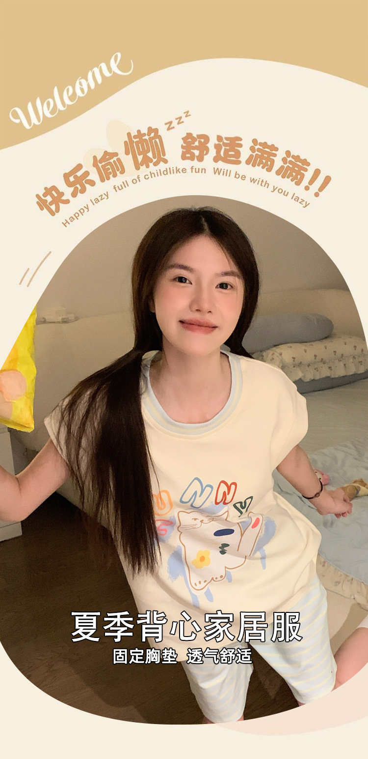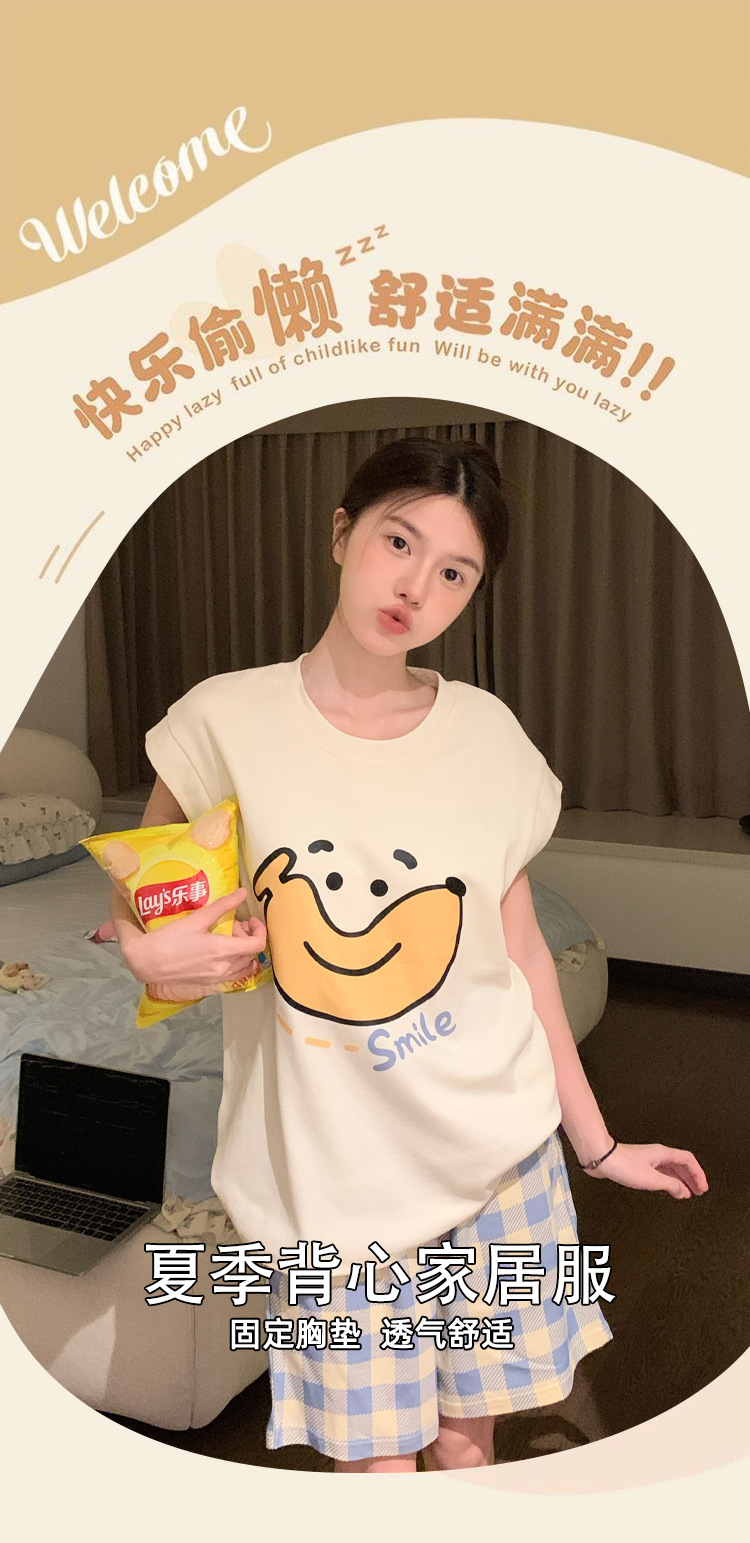 【GZ】无忧购带胸垫睡衣女夏季索罗娜背心卡通可外穿家居服套装(截单后3-5天发货)