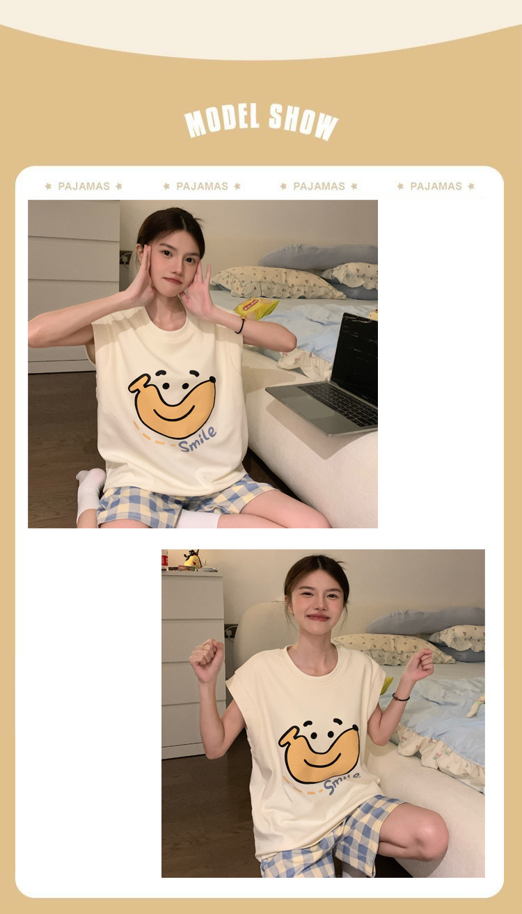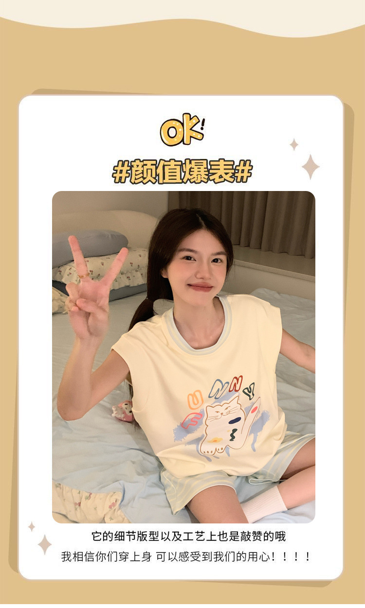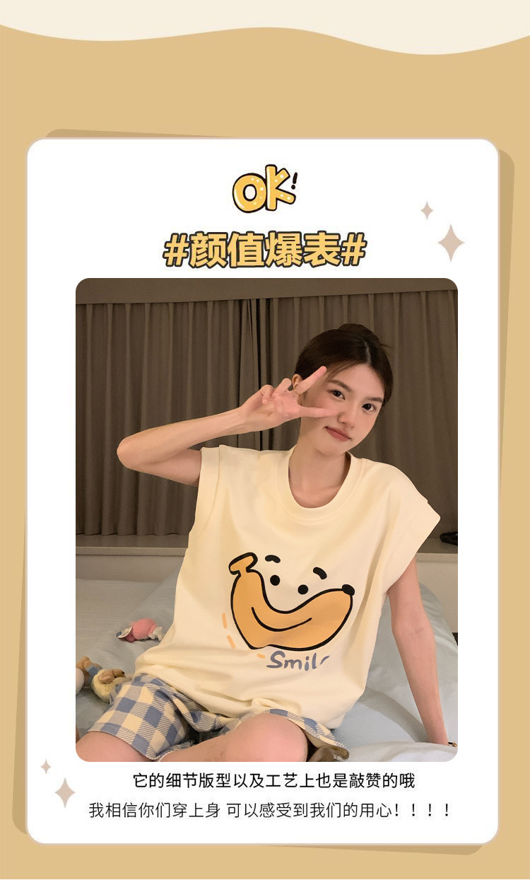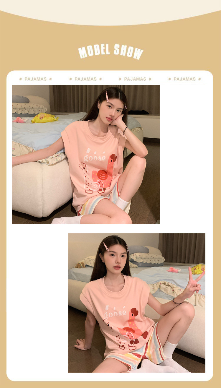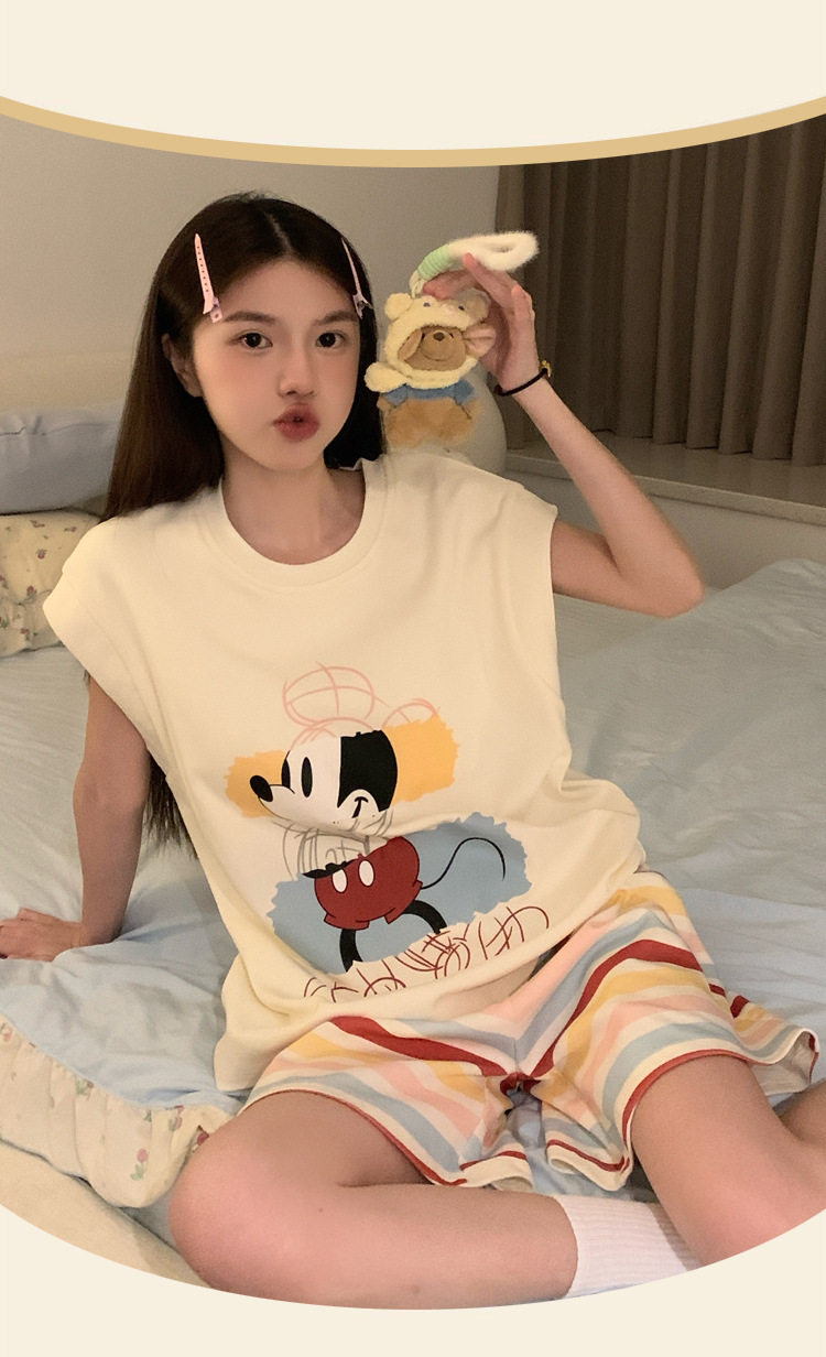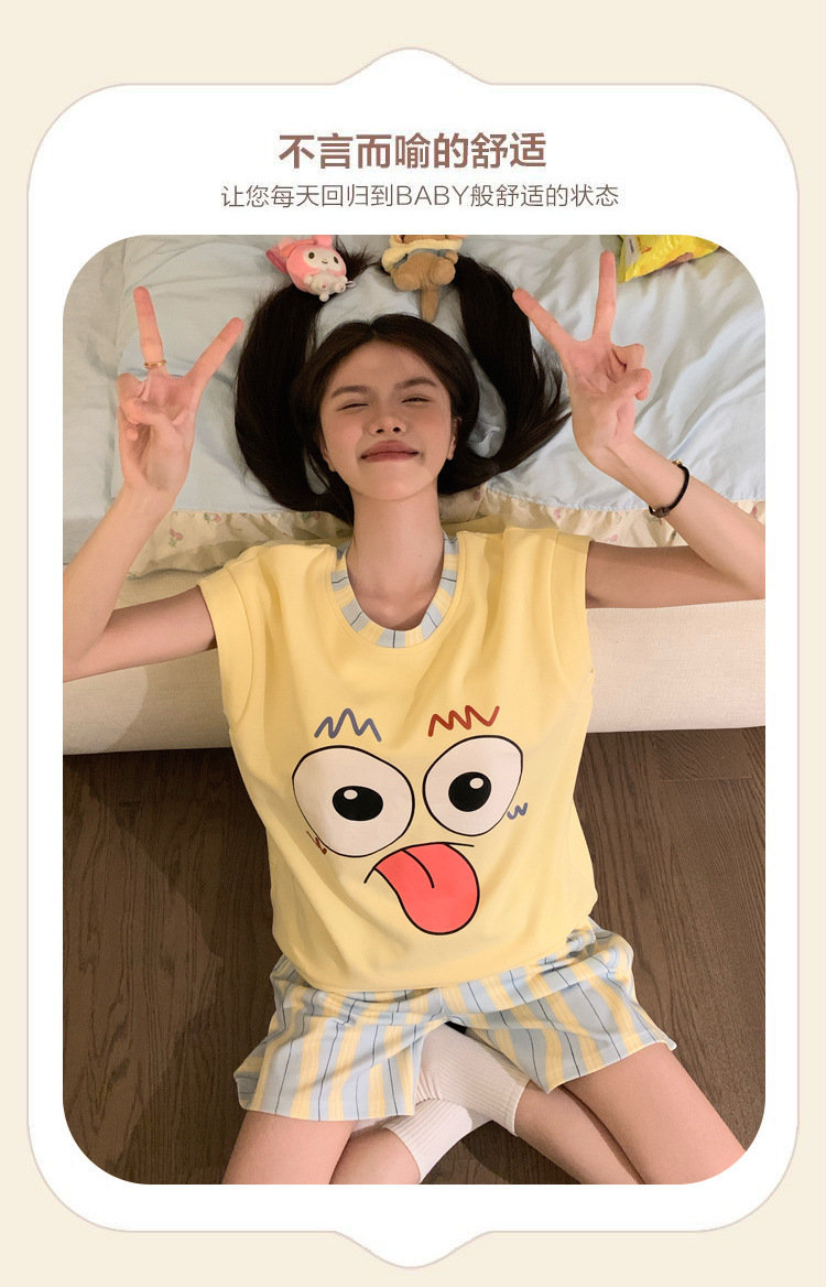 【GZ】无忧购带胸垫睡衣女夏季索罗娜背心卡通可外穿家居服套装(截单后3-5天发货)