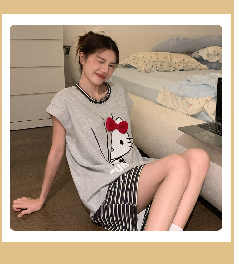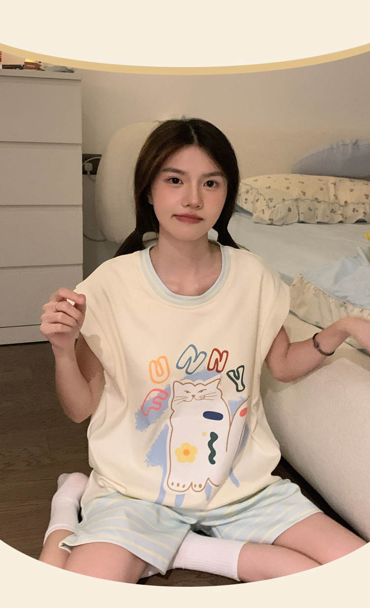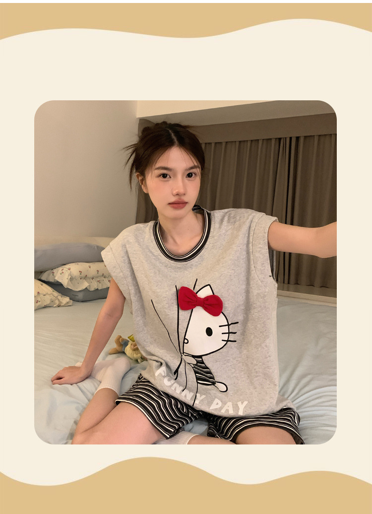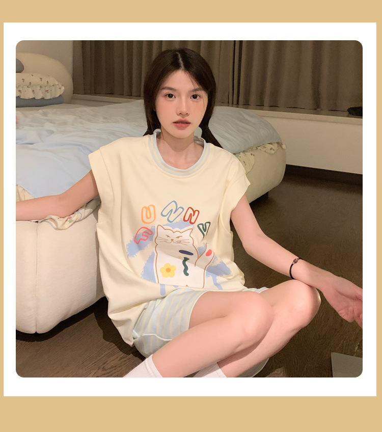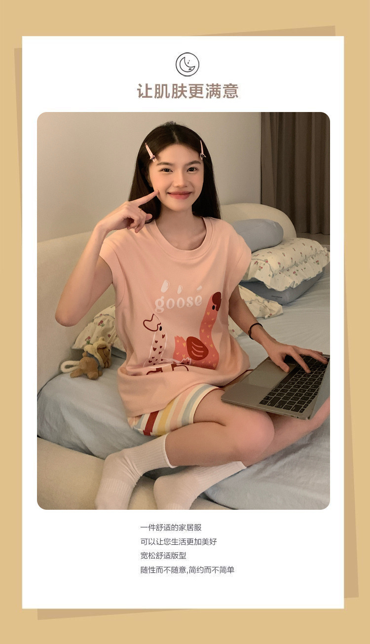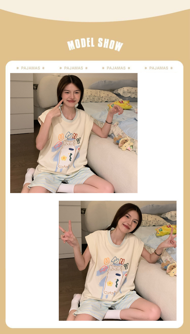 【GZ】无忧购带胸垫睡衣女夏季索罗娜背心卡通可外穿家居服套装(截单后3-5天发货)