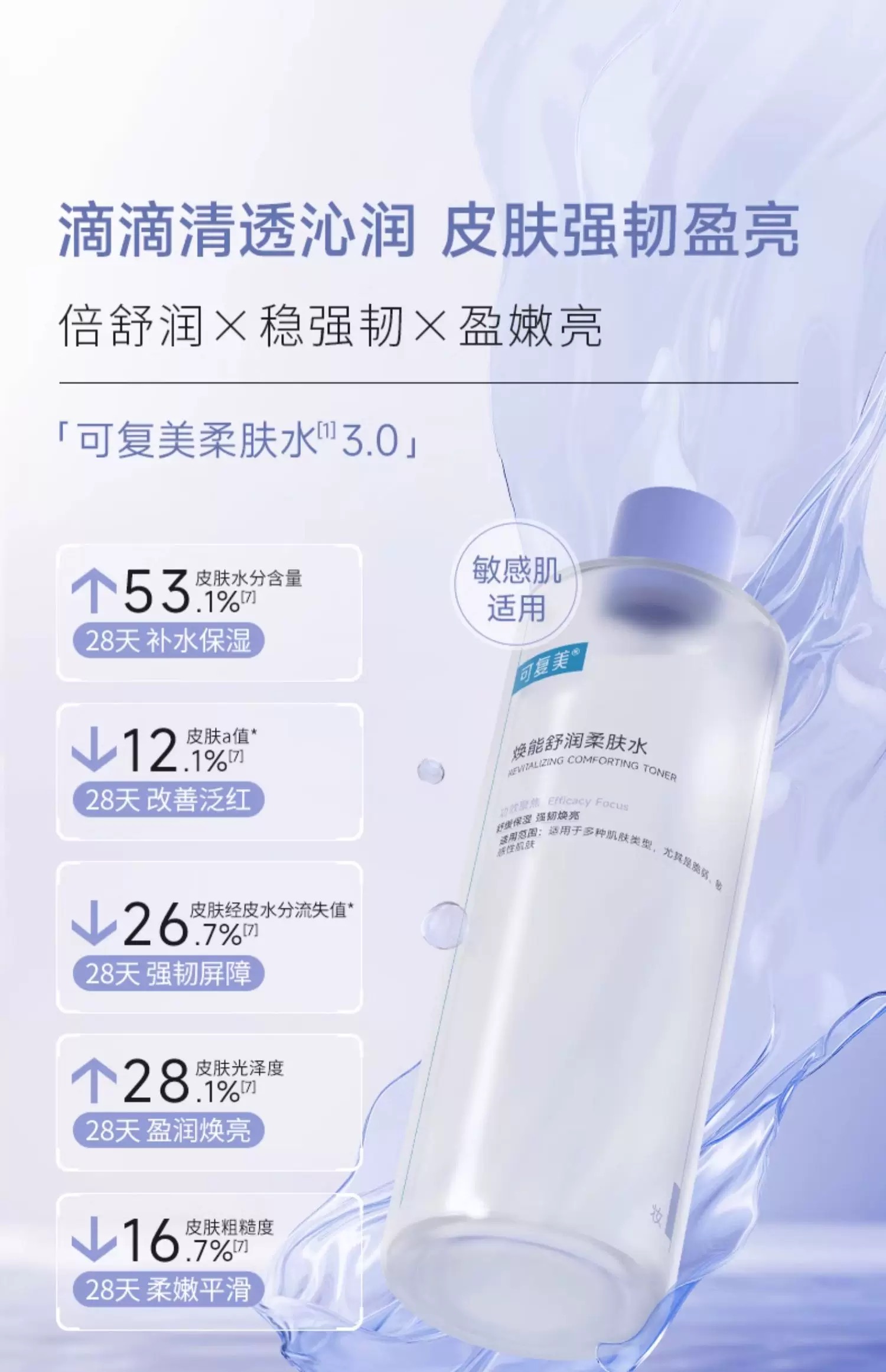 可复美安心爽肤水500ml 湿敷水补水保湿舒缓敏感肌焕能柔肤水夏季3.0送喷头