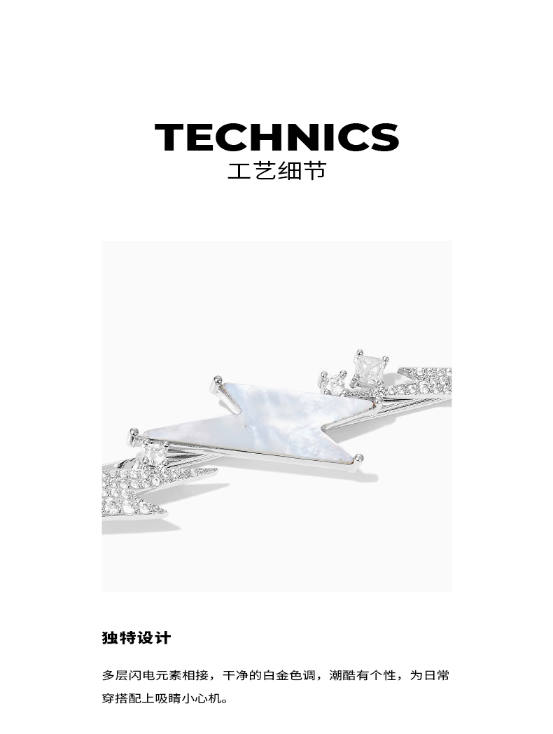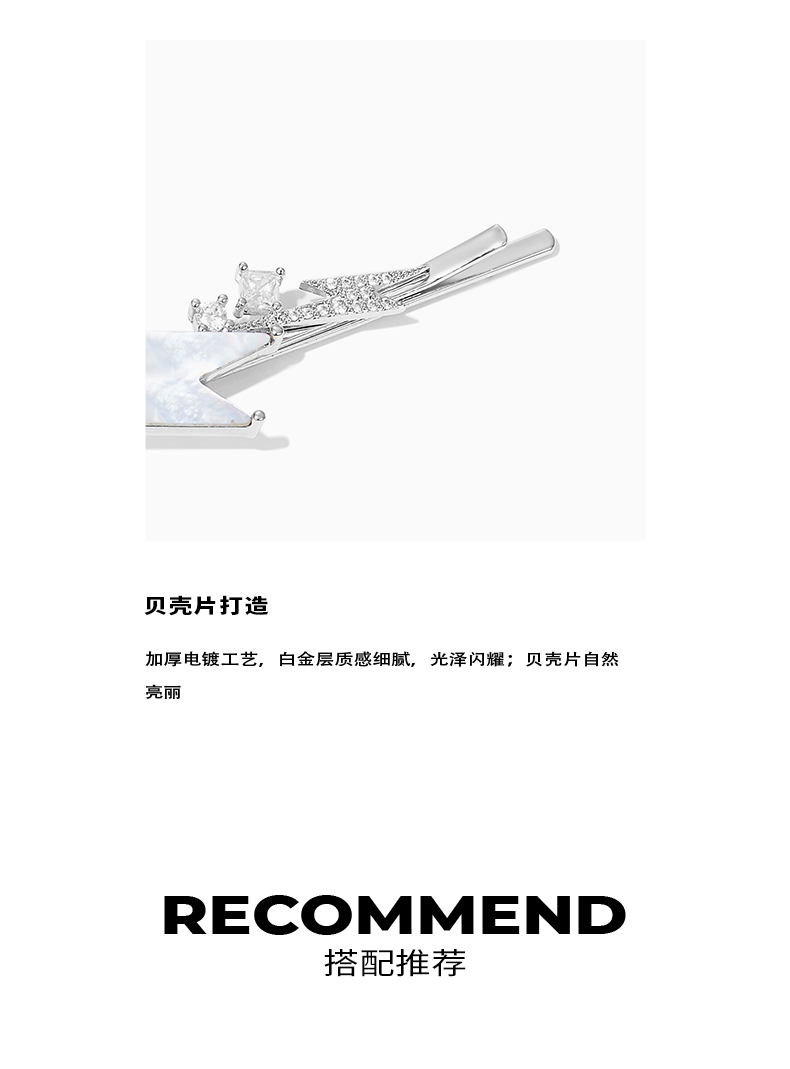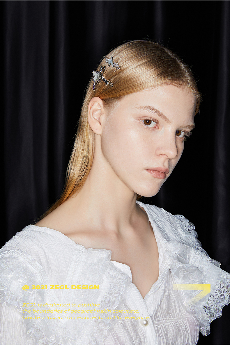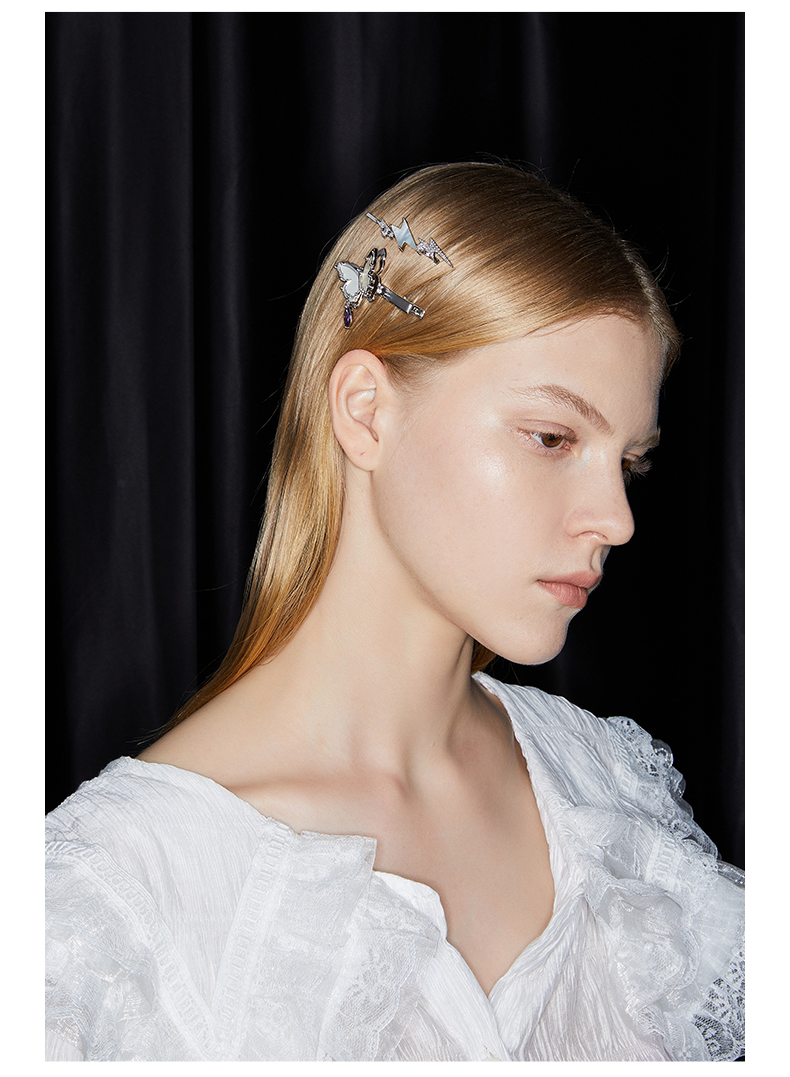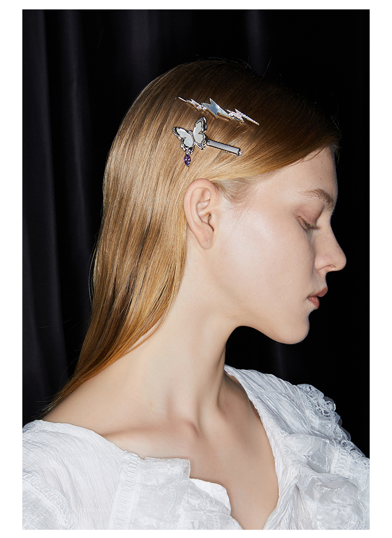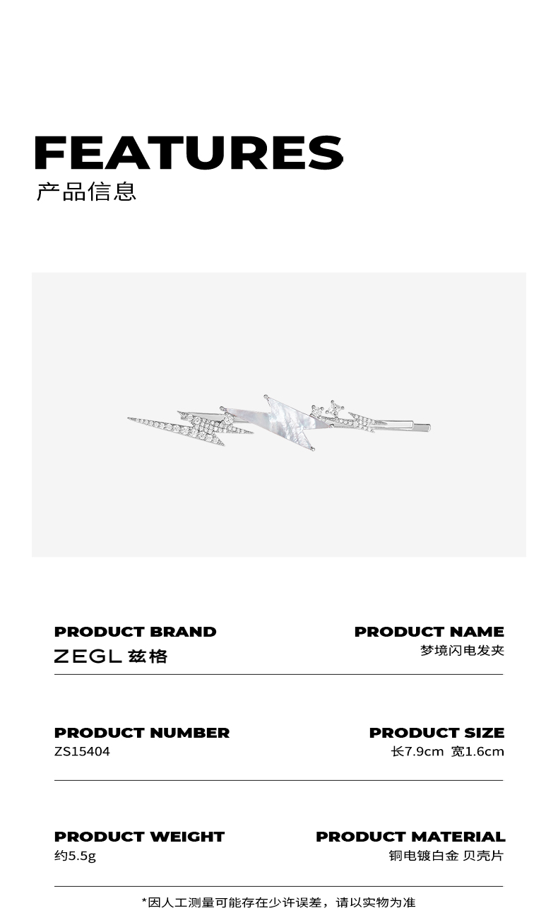 ZEGL设计师贝壳闪电发夹女后脑勺一字夹简约气质百搭发卡甜酷发饰