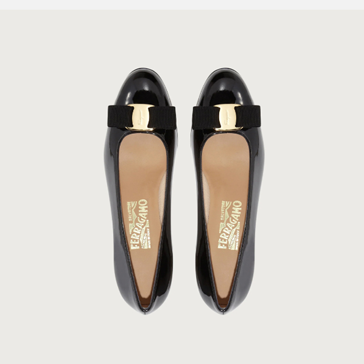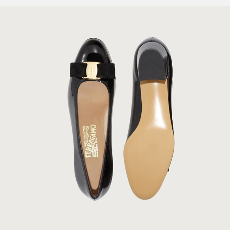 【一】FERRAGAMO 菲拉格慕 女士经典蝴蝶结皮鞋 黑色 574572