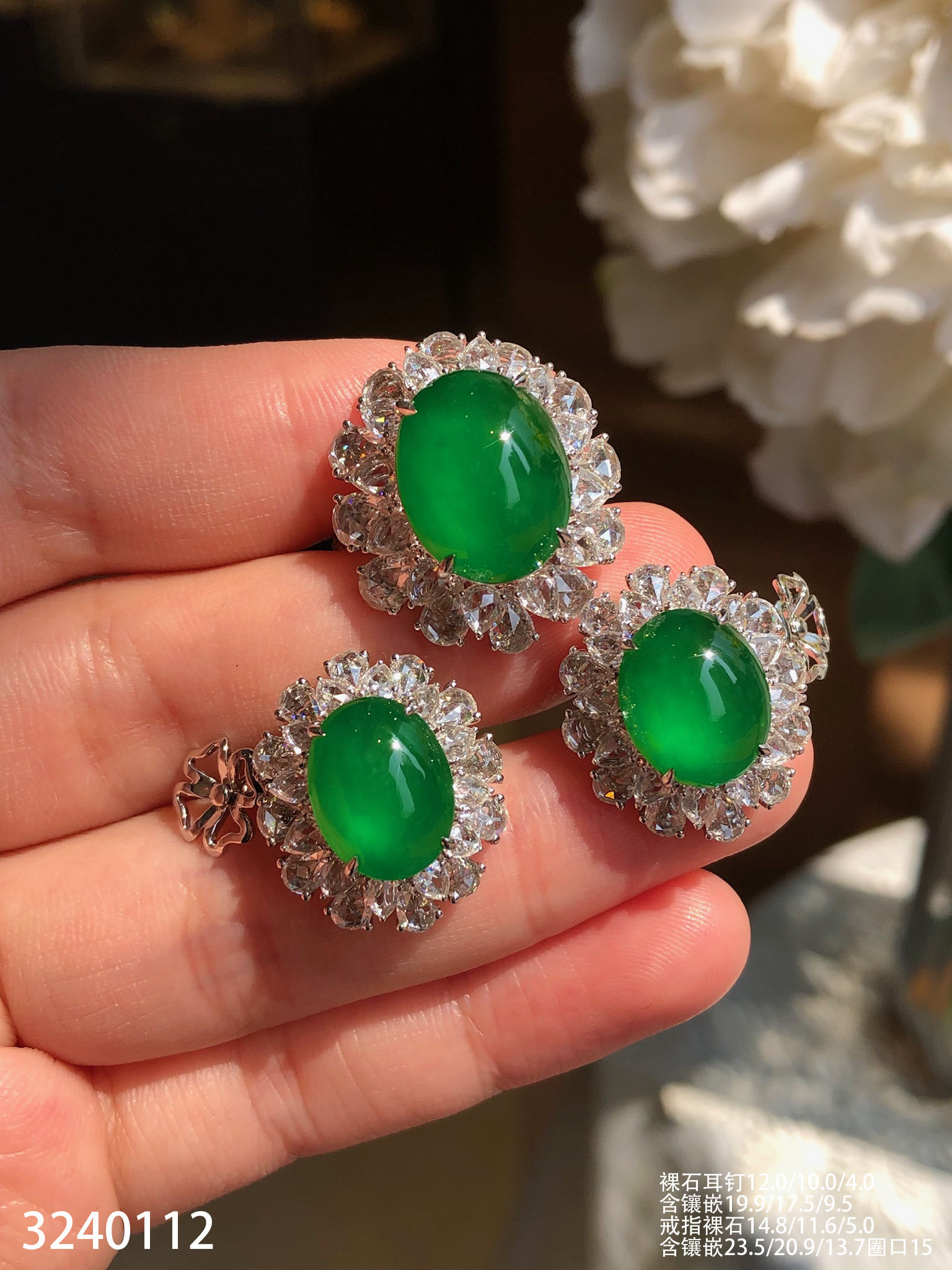 老坑帝王绿蛋面套装【3240112】具体价格微信咨询