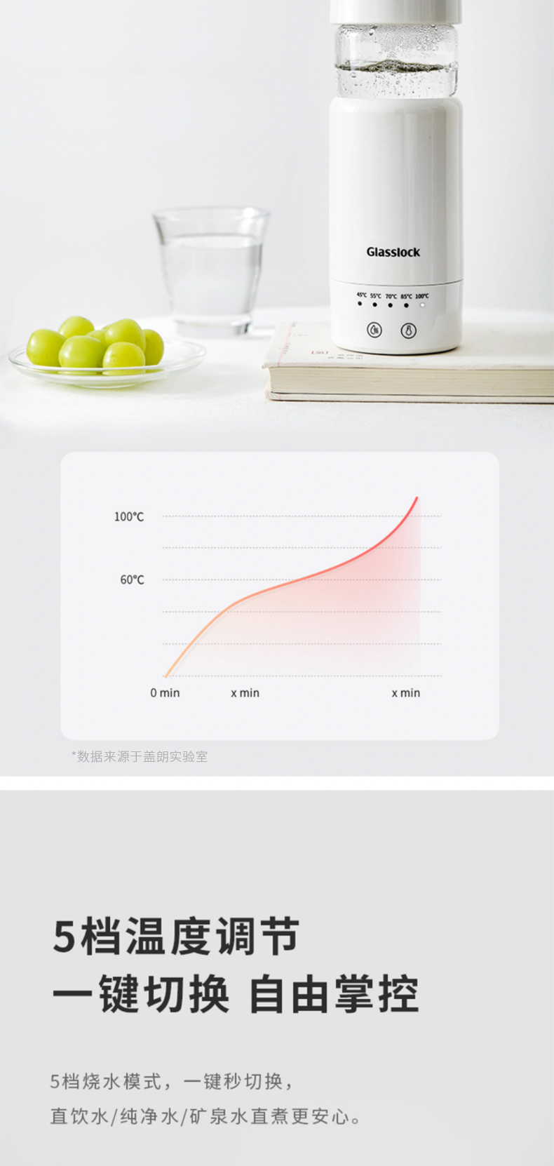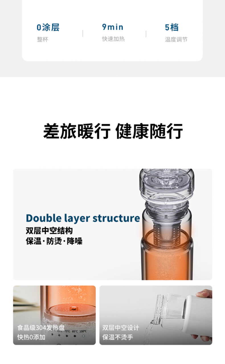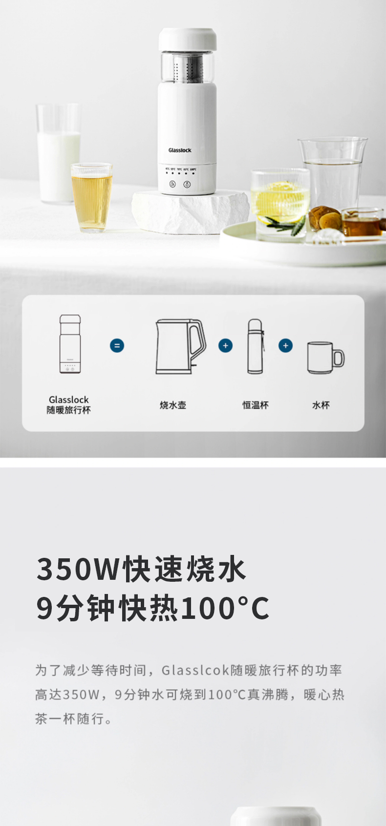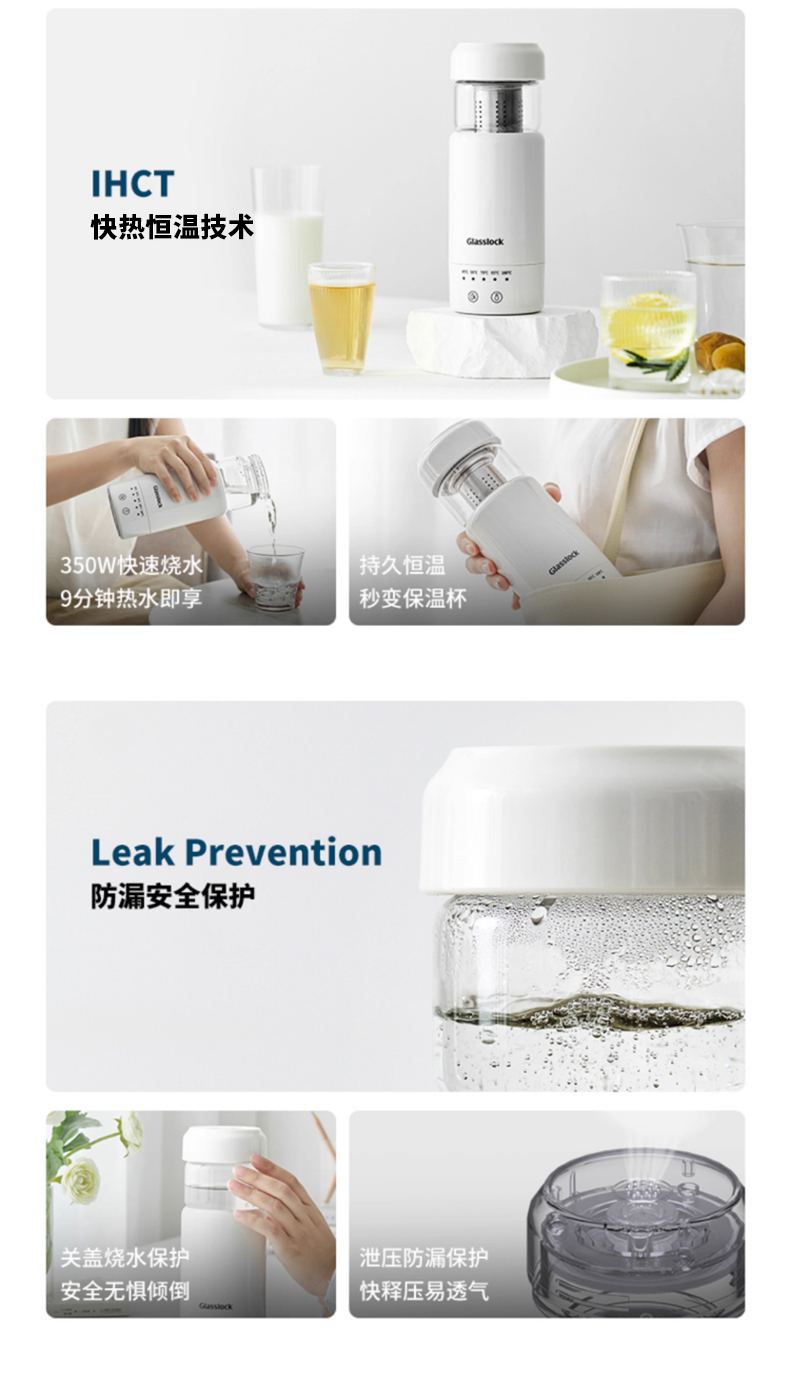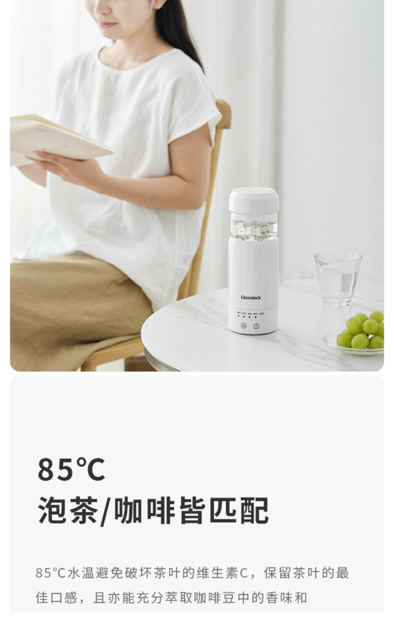 产品名称:Glasslock电热水杯-400ml GE-TH01WH