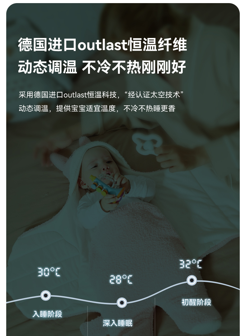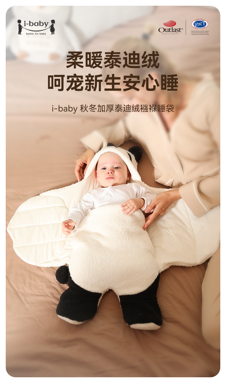 【秒杀】ibaby×outlast太空科技恒温 新生婴儿防惊跳襁褓睡袋春秋冬厚宝宝用品神器初生包被抱被