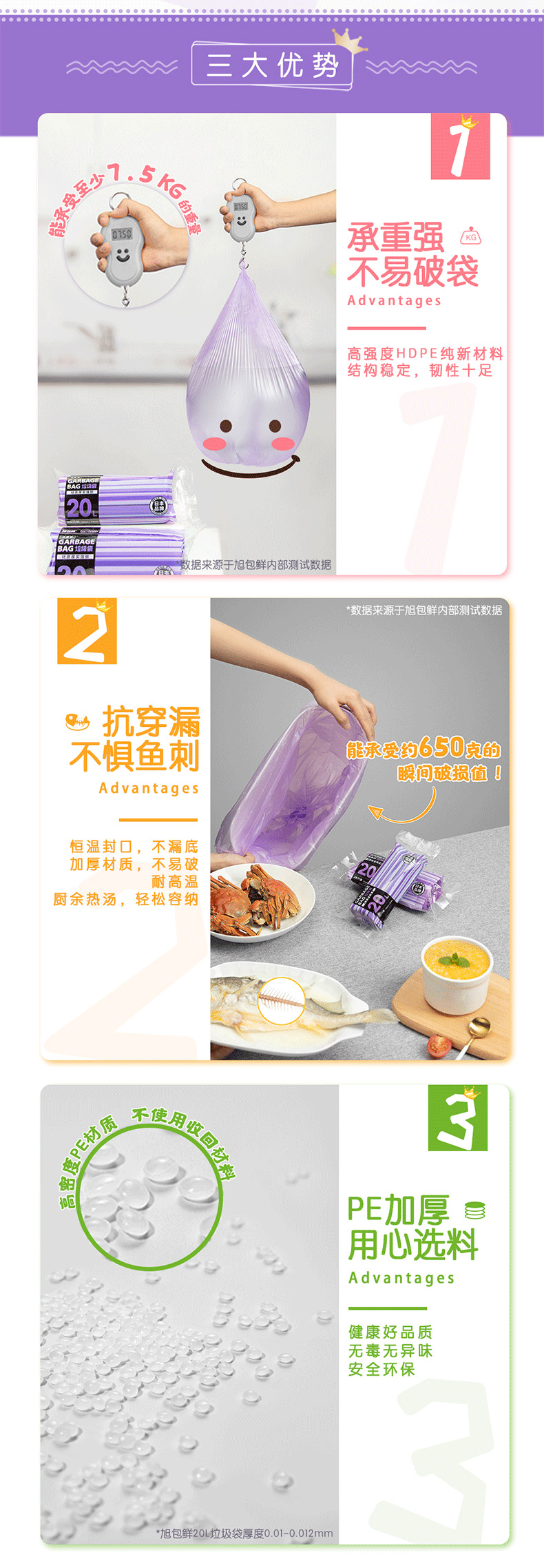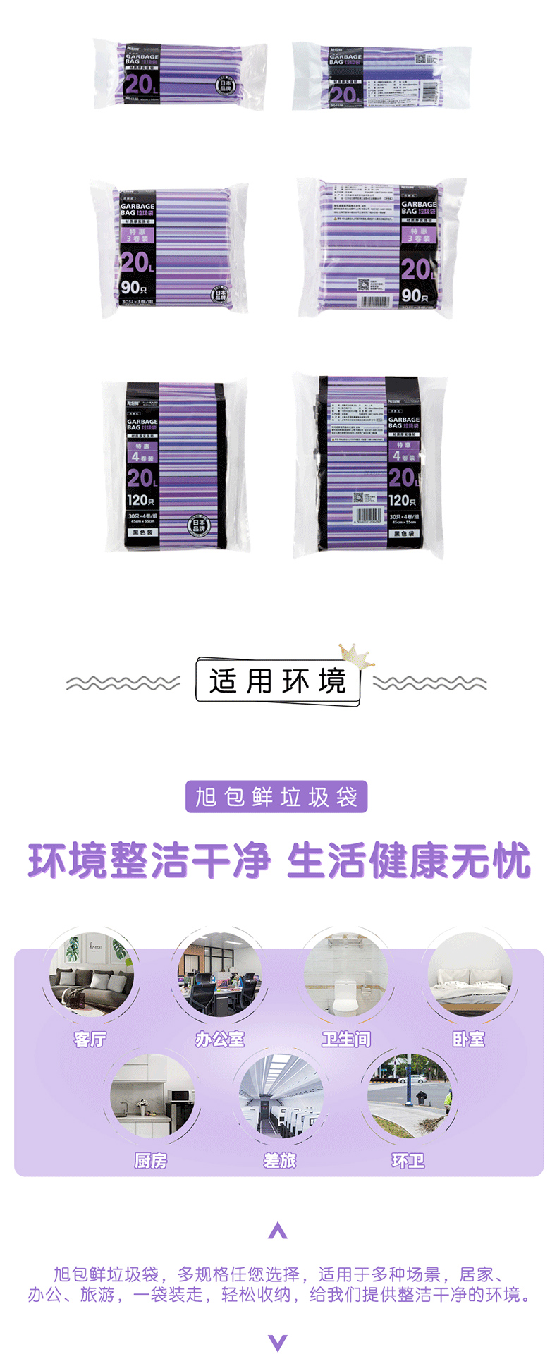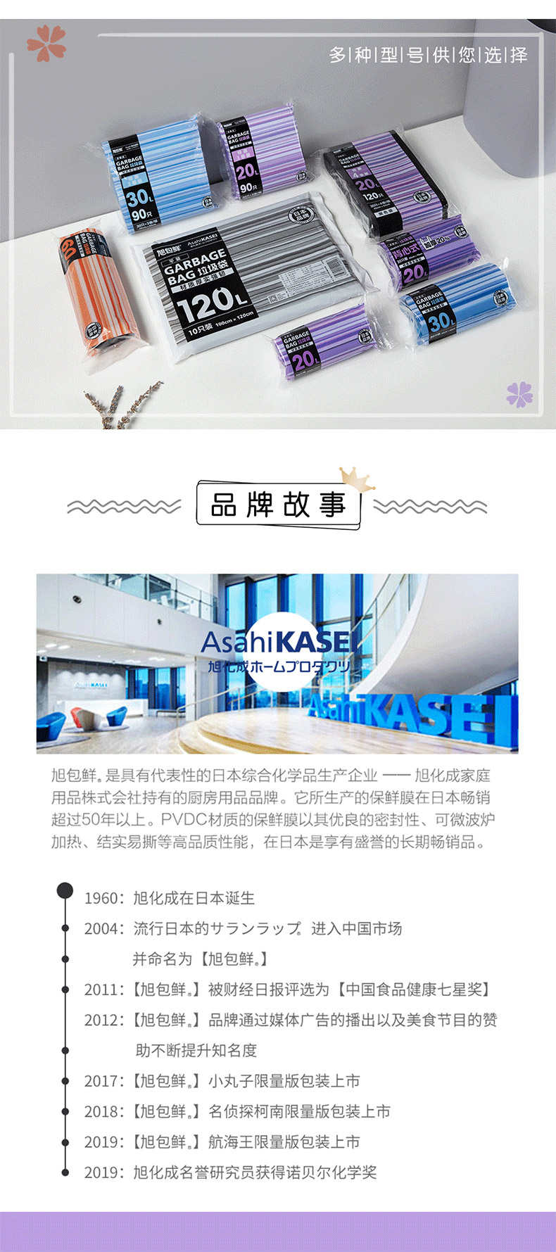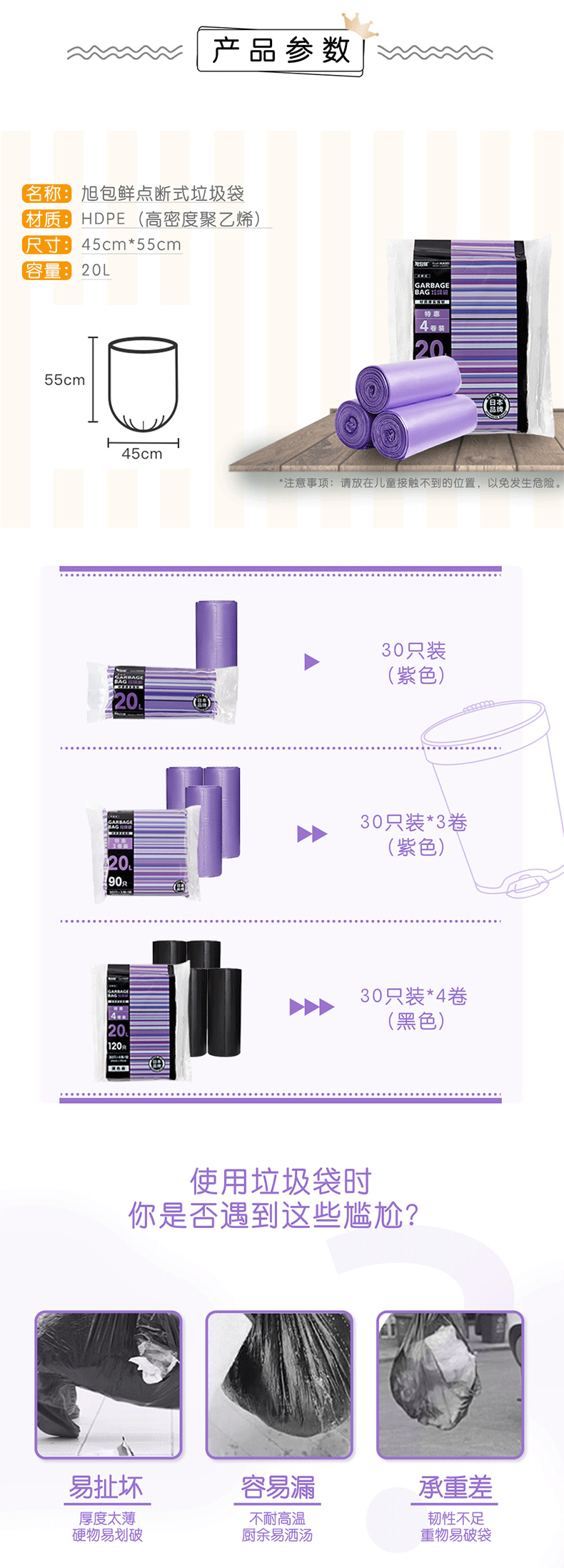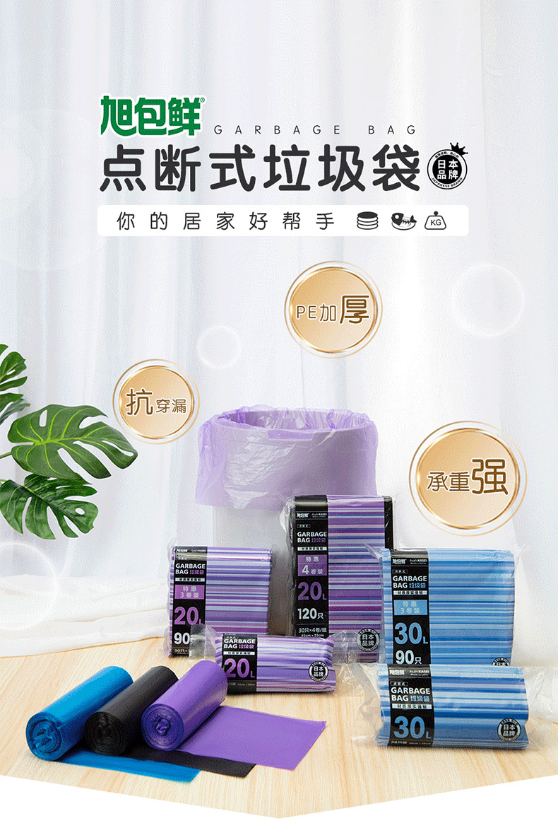 日本旭包鲜 点断式加厚垃圾袋20L 30只装