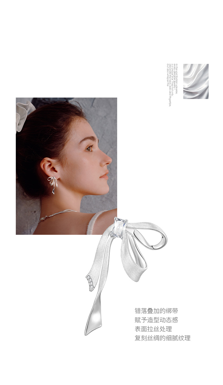 ZEGL真柳设计师Ribbon丝带系列蝴蝶结耳环女新款爆款耳钉流苏耳饰
