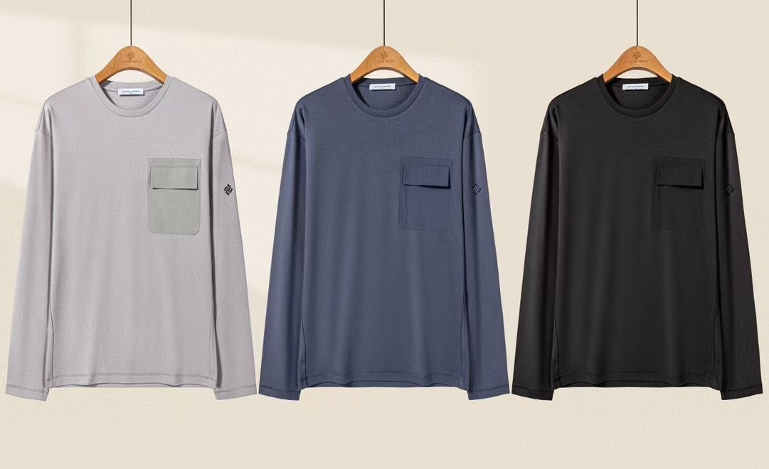 纯原Martine Wester 男款棉莫代尔氨纶混纺贴袋圆领长袖T 定制混纺面料 款号11023318