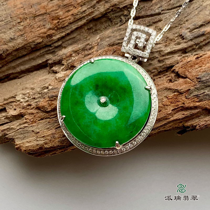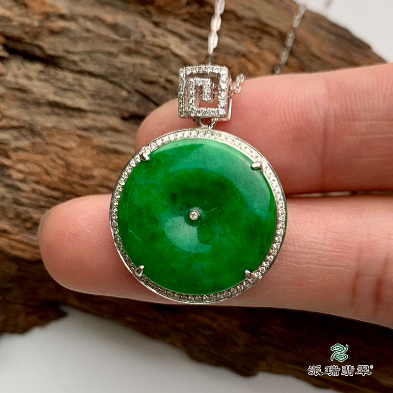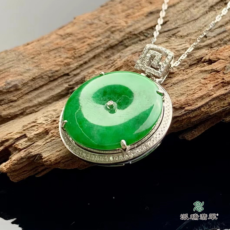 派瑞翡翠 18k金翡翠挂件 糯冰种 绿色