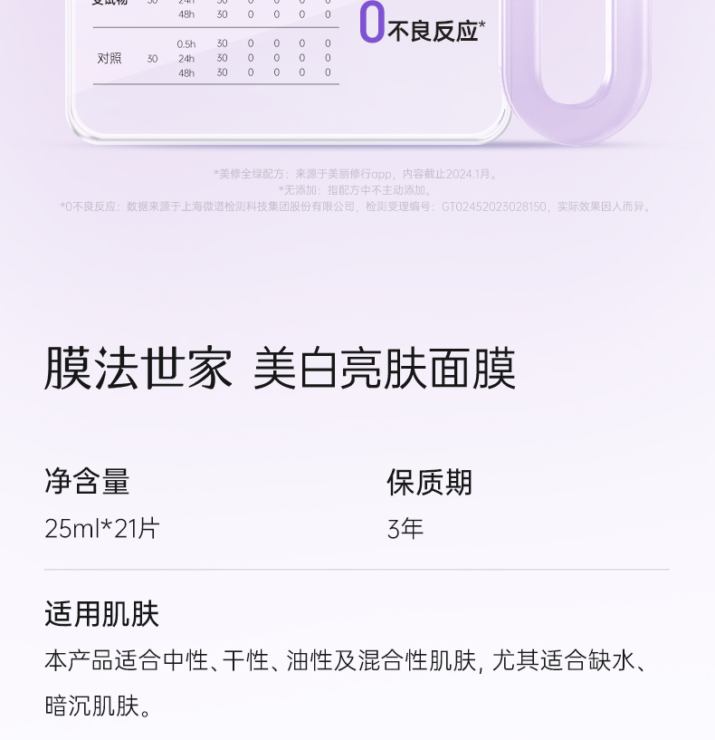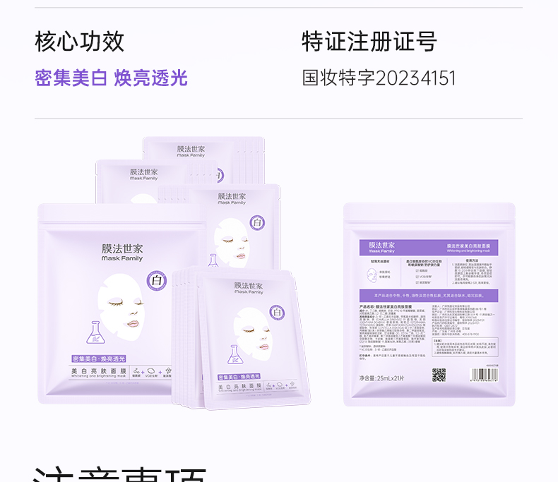 【褪黑焕白】膜法世家美白亮肤面膜21片袋装