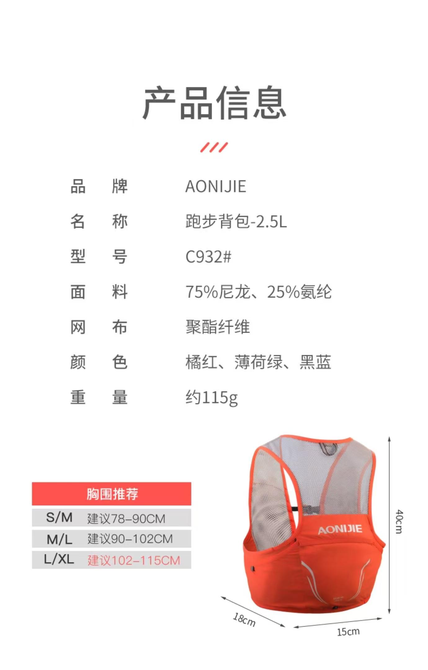 奥尼捷跑步腰包,大功能双水壶马拉松跑步包