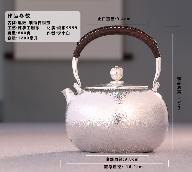 李小白银壶 纯银9999烧水壶 银壶烧水壶 烧水银壶 银壶 茶壶