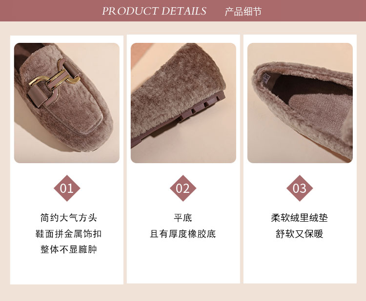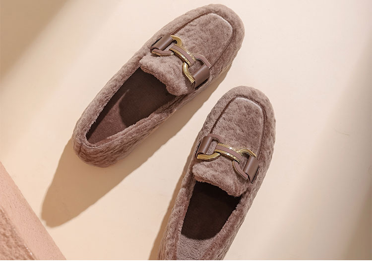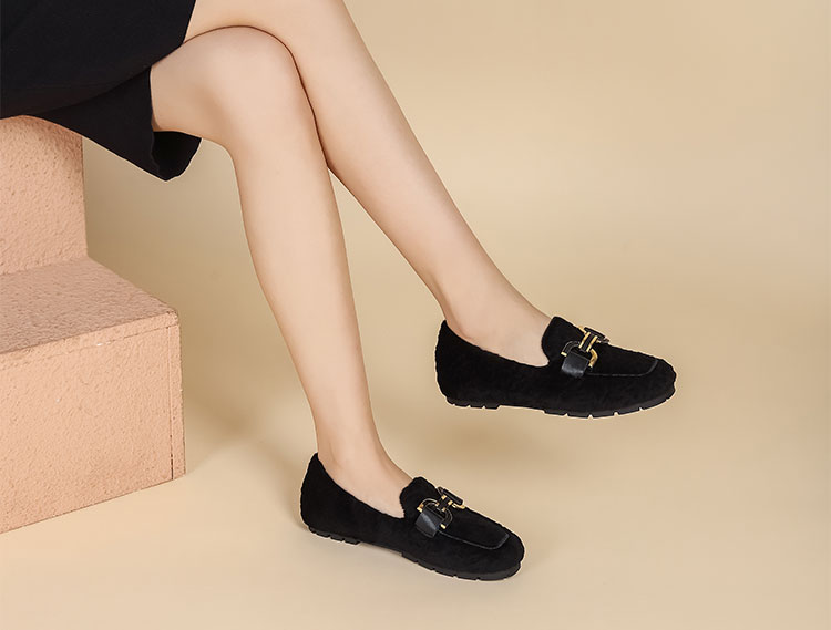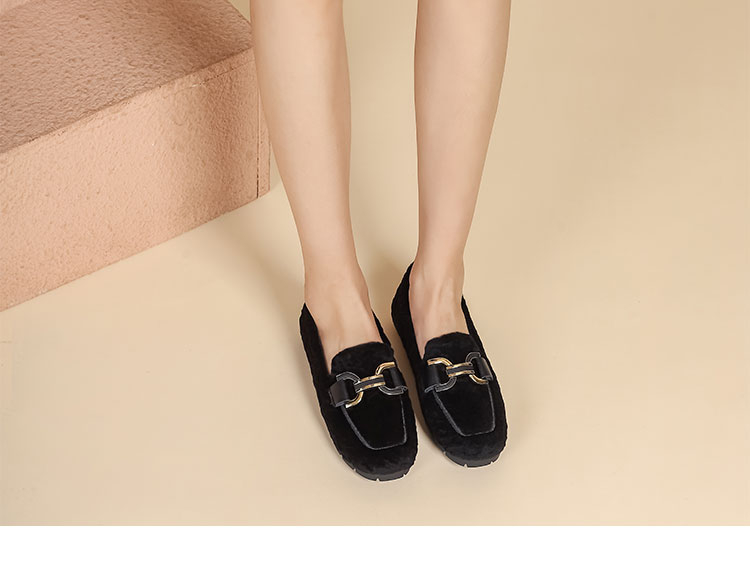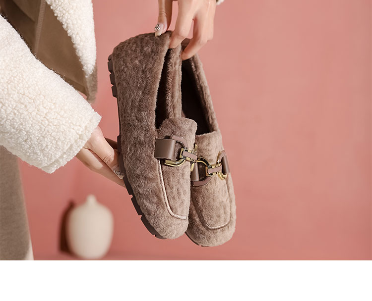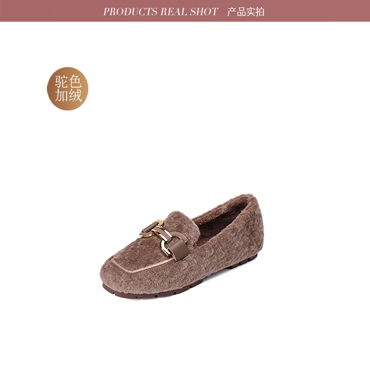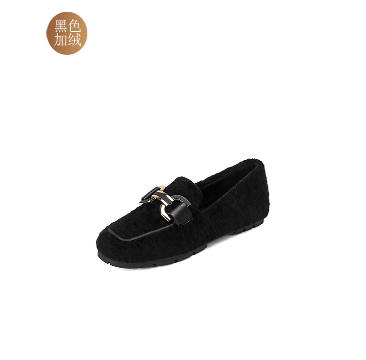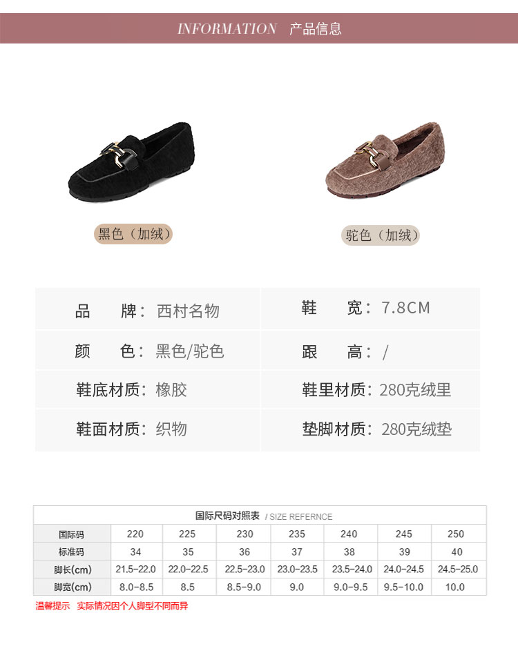 西村名物2023年新款简约风加绒保暖平底鞋毛毛鞋乐福鞋女秋冬11771