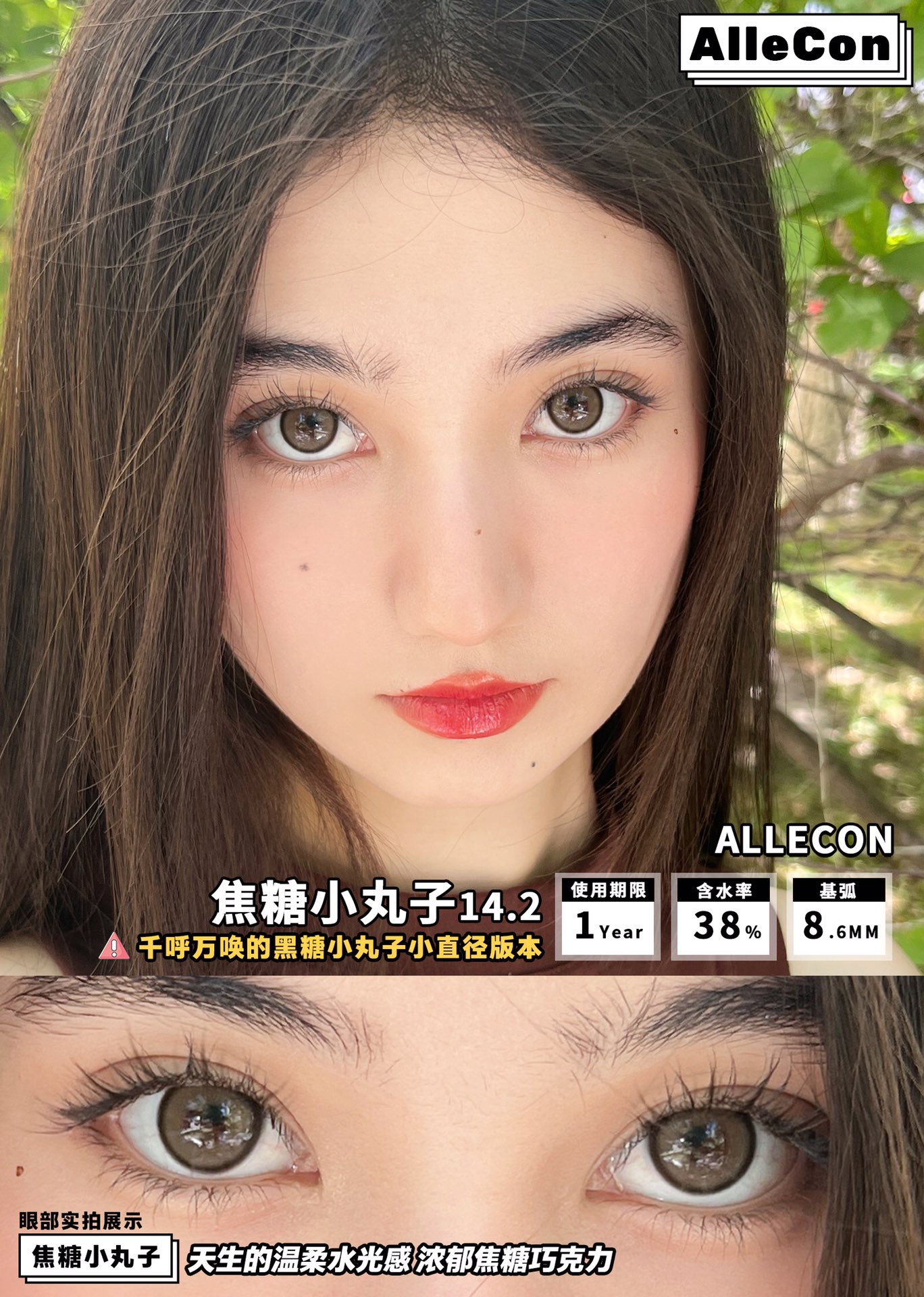 bariecat国产日抛/Allecon韩产半年抛焦糖小丸子美瞳 直径14.2着色直径13.4