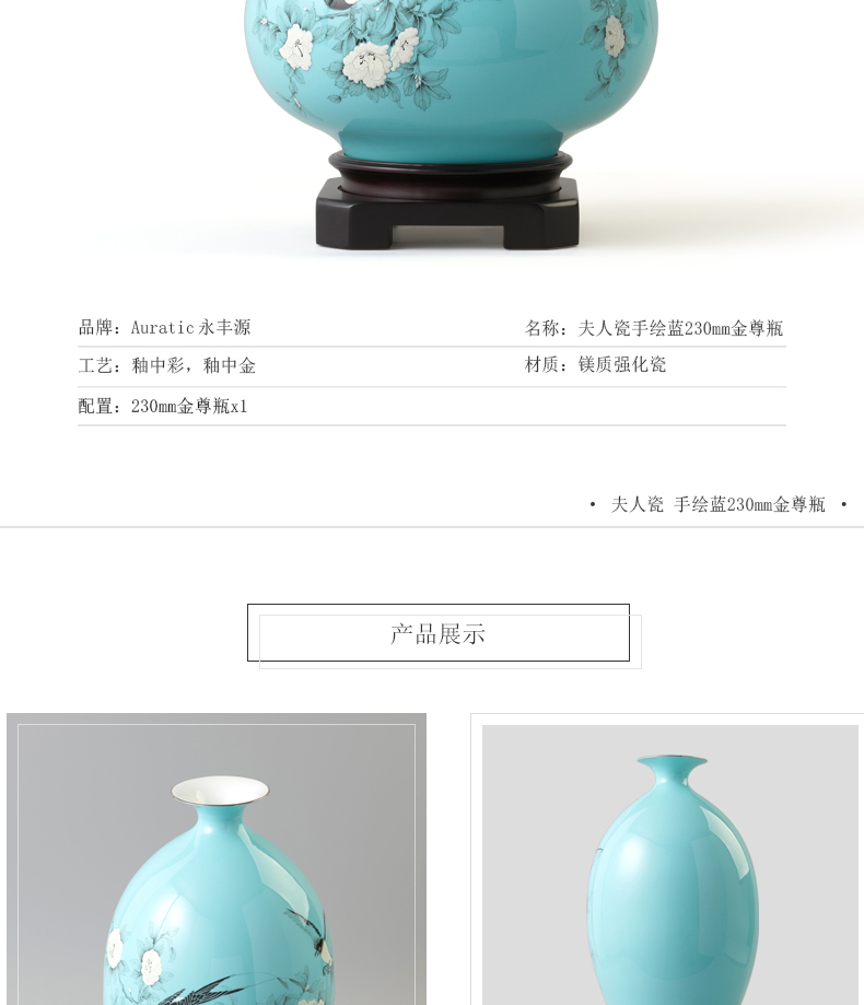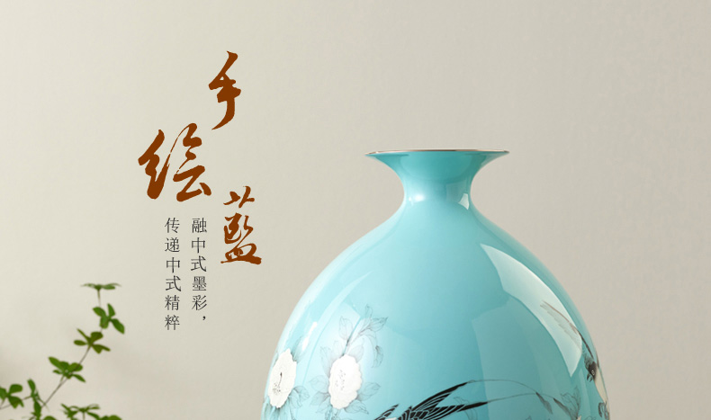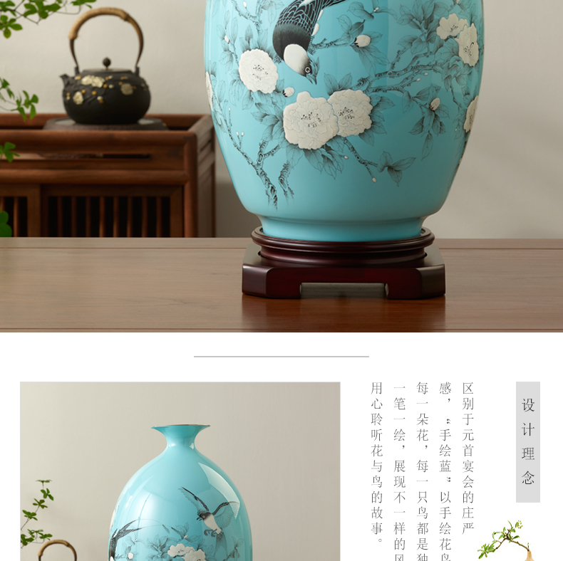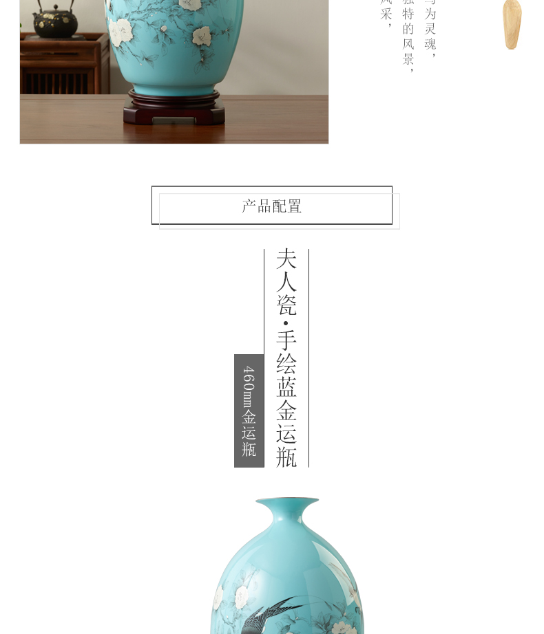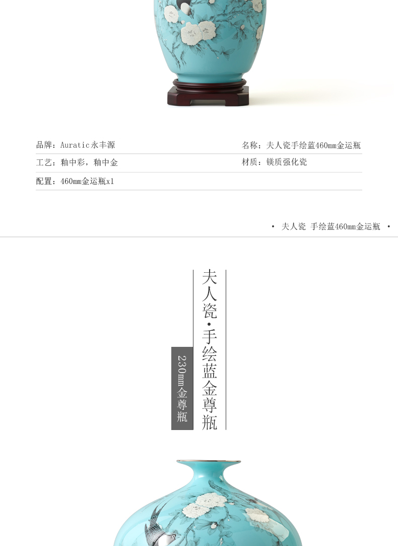 【国瓷·永丰源】手绘蓝花瓶 金运瓶/金尊瓶 客厅摆件轻奢礼品