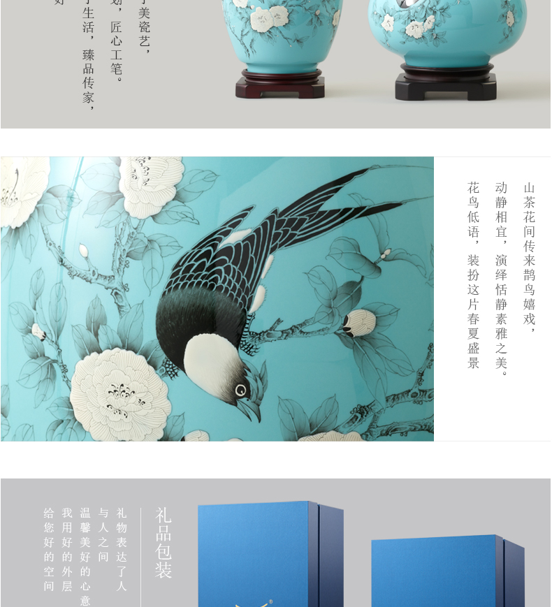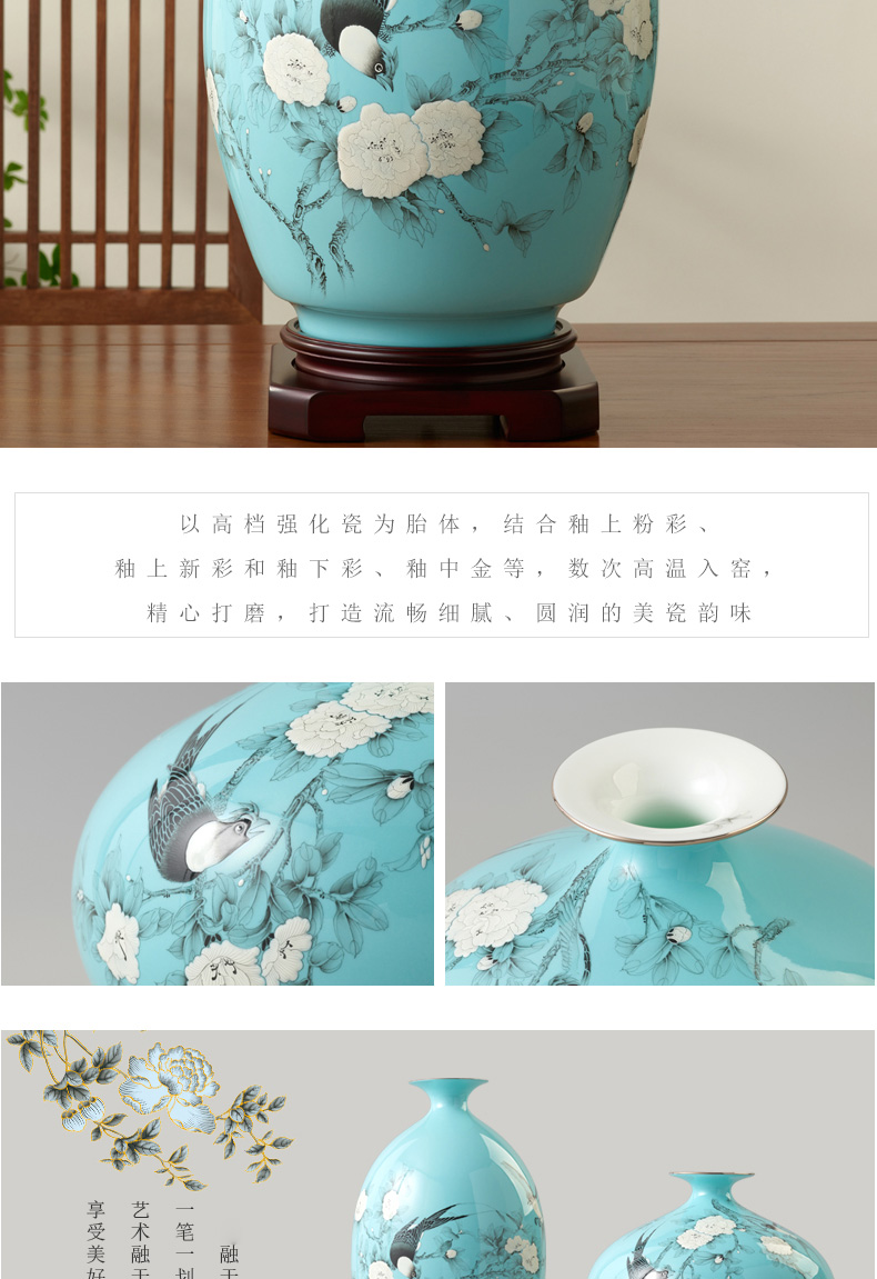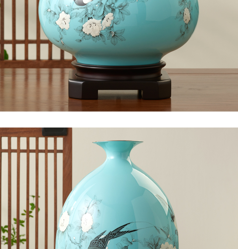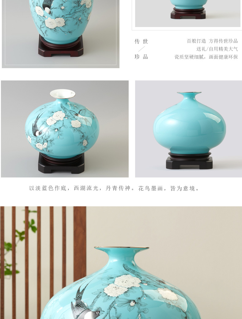 【国瓷·永丰源】手绘蓝花瓶 金运瓶/金尊瓶 客厅摆件轻奢礼品