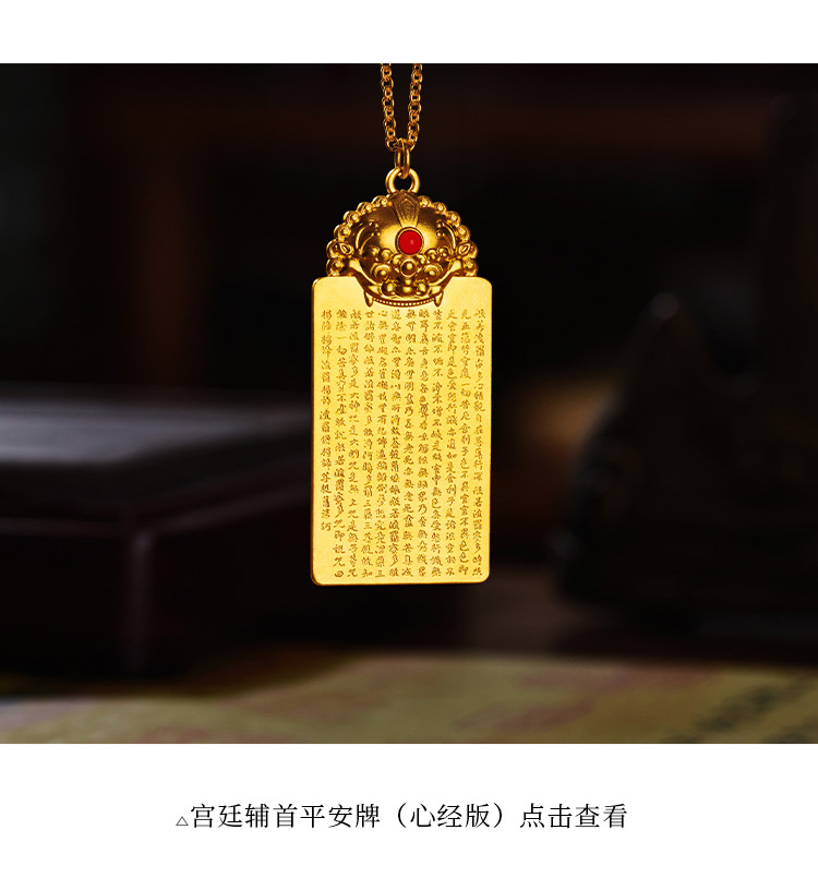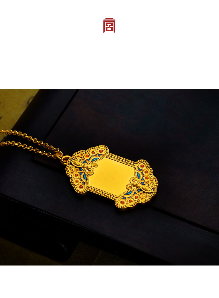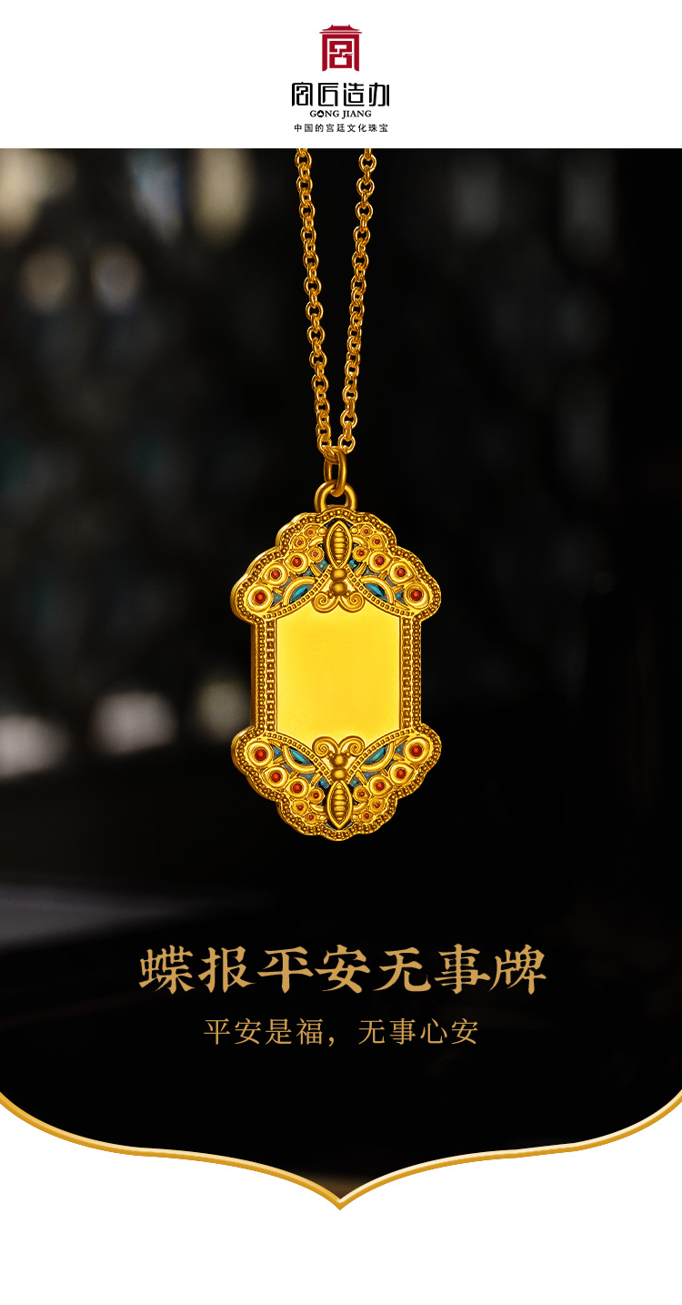 宫匠造办 宫廷福佑 蝶报平安无事牌黄金吊坠