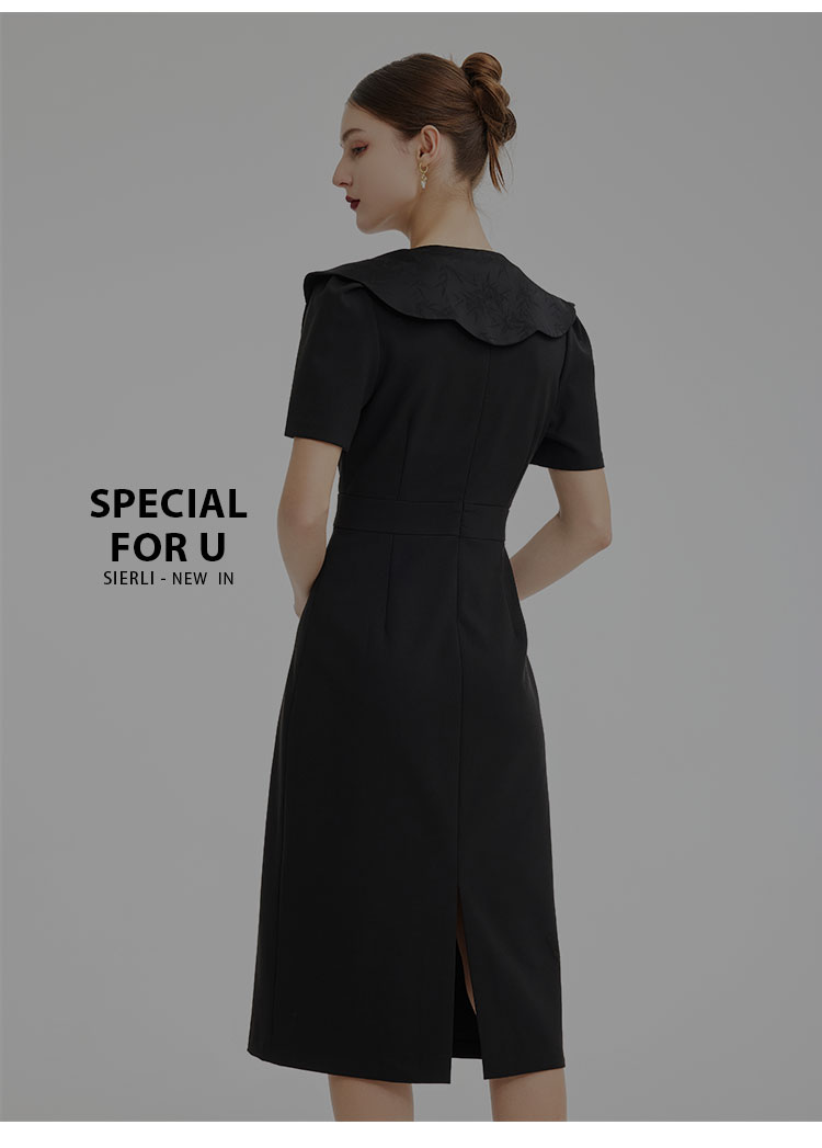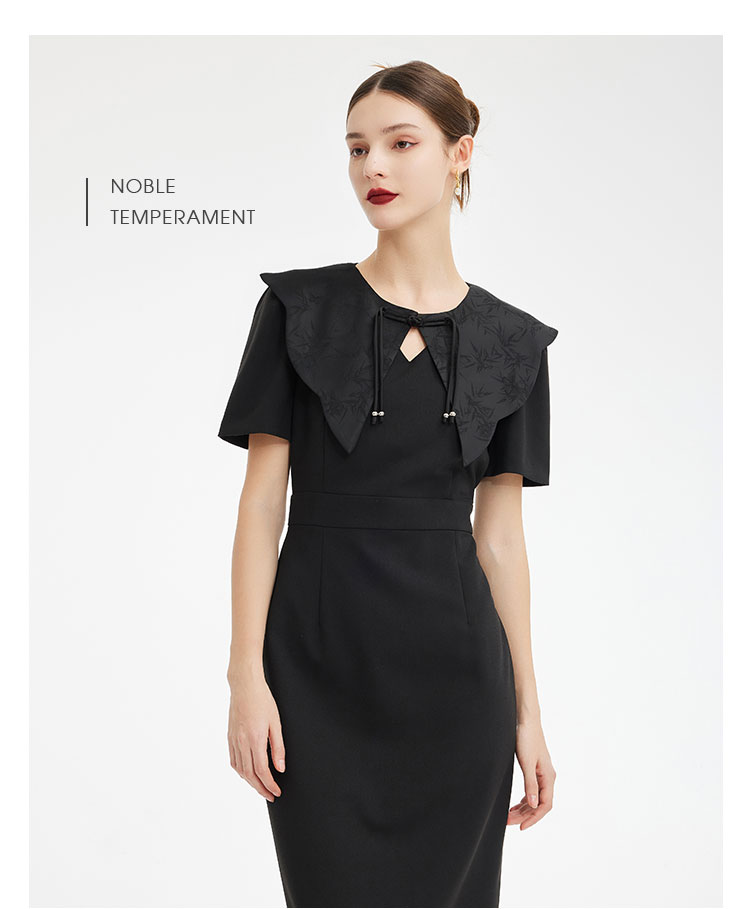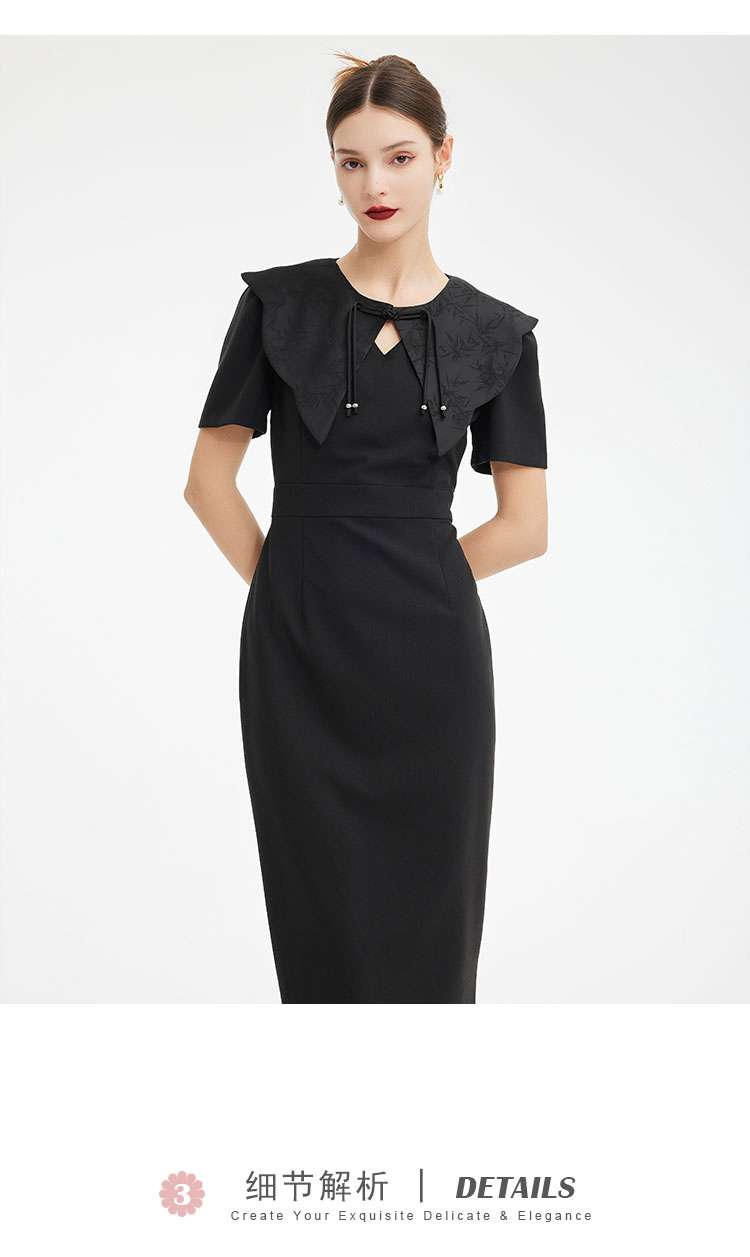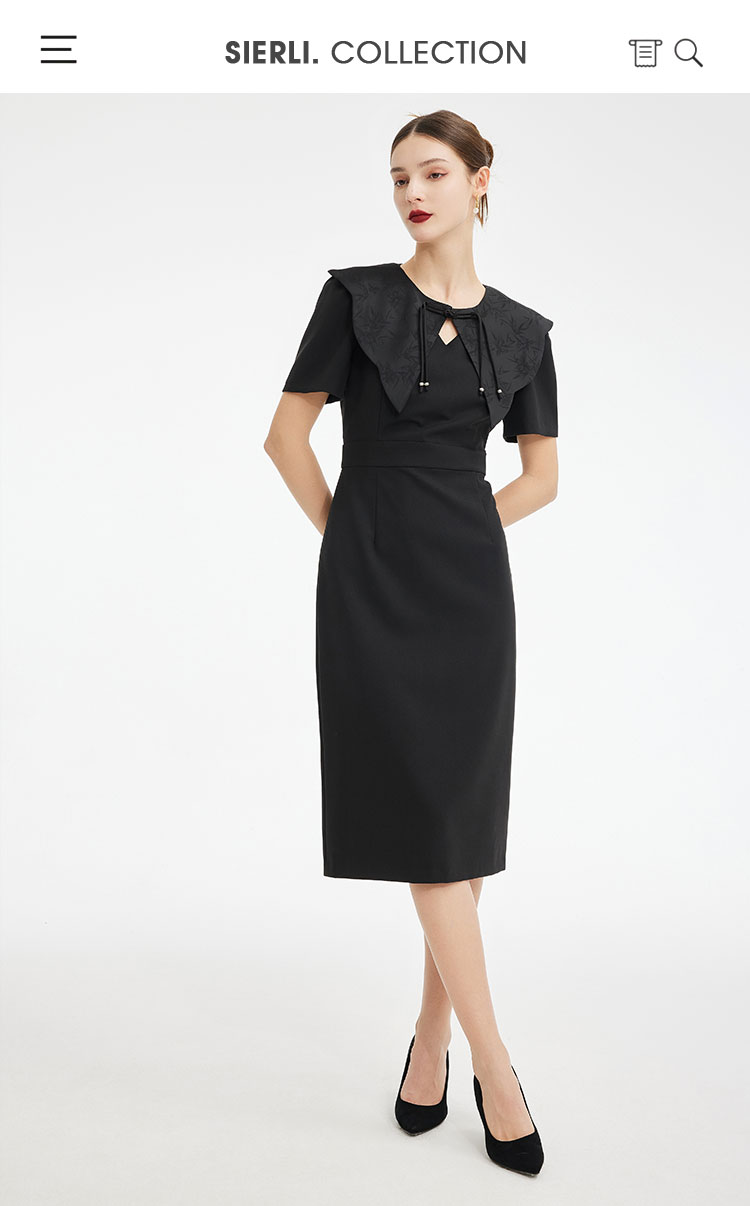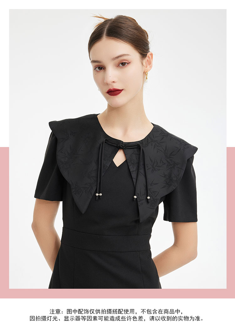 PF857斯尔丽2024新款轻国风设计感异形提花流苏可脱卸领搭配收腰连衣裙