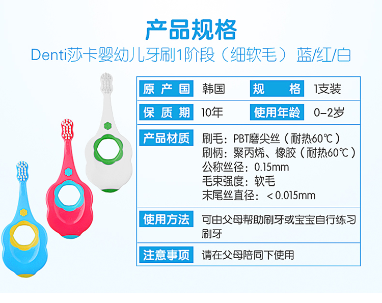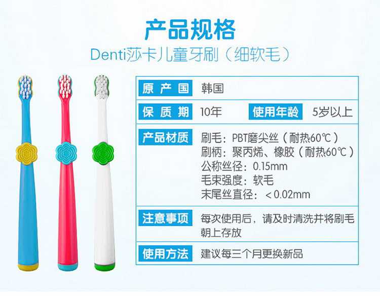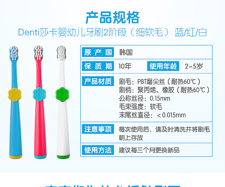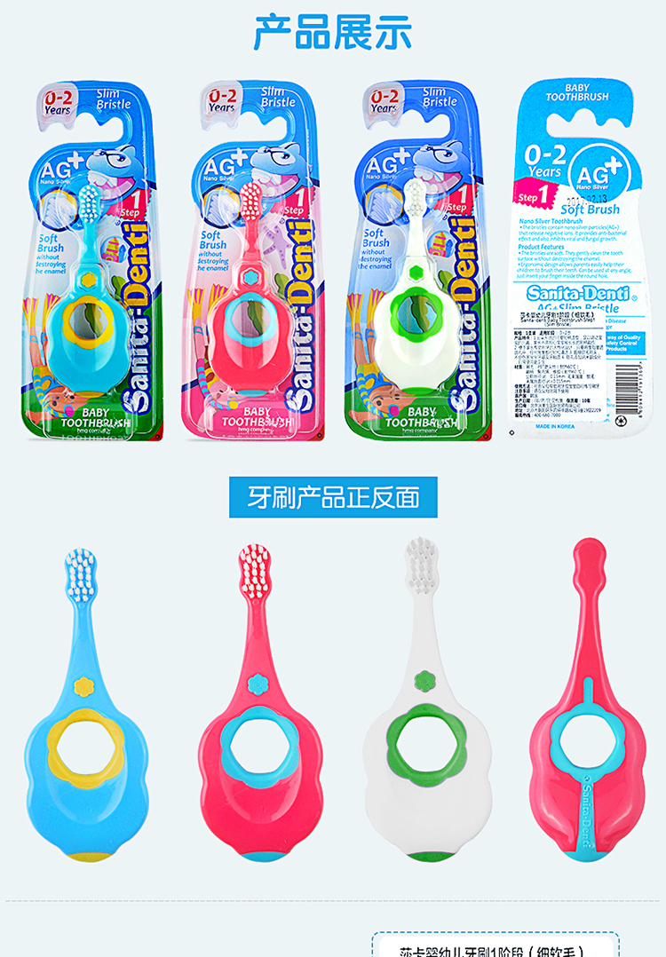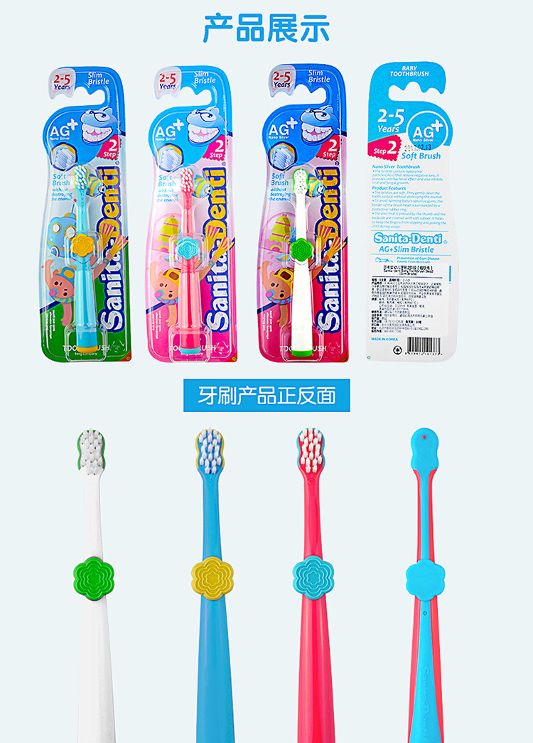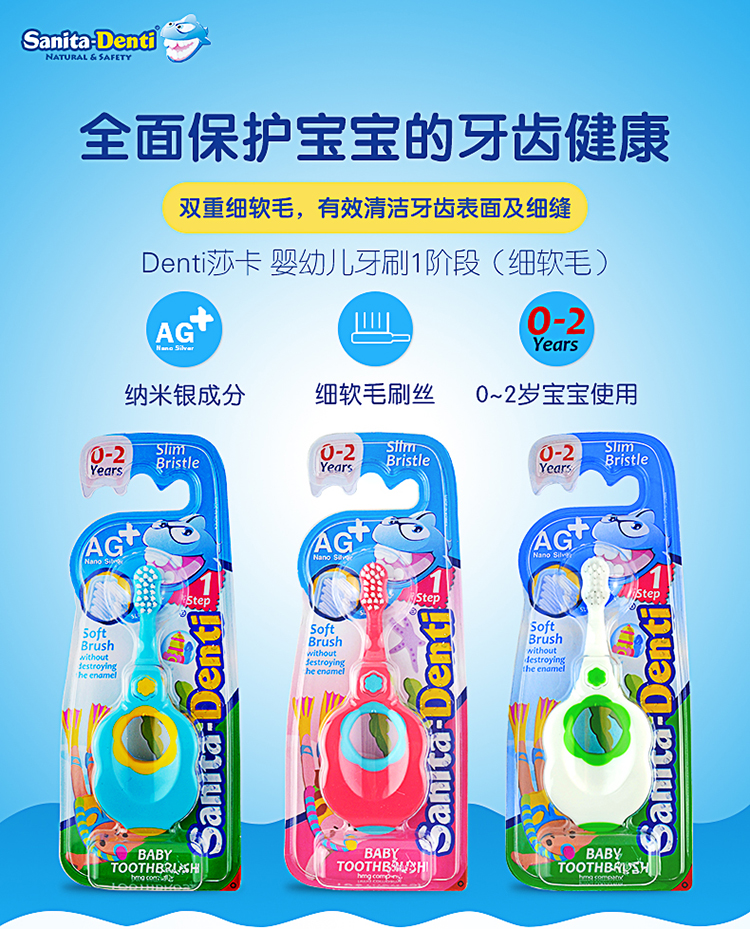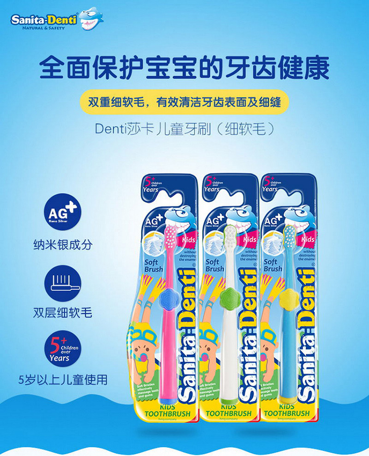 【阶梯满减】韩国SanitaDenti莎卡婴幼儿软毛超细牙刷0-2岁2-5岁5岁+