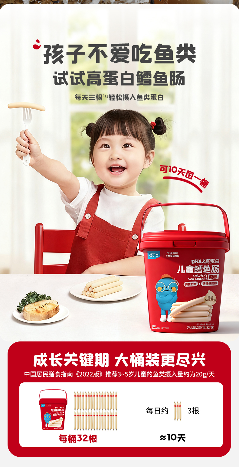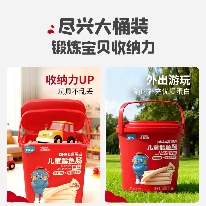 【新品上市】英氏忆小口DHA&高蛋白鳕鱼肠分享桶(内含32支)