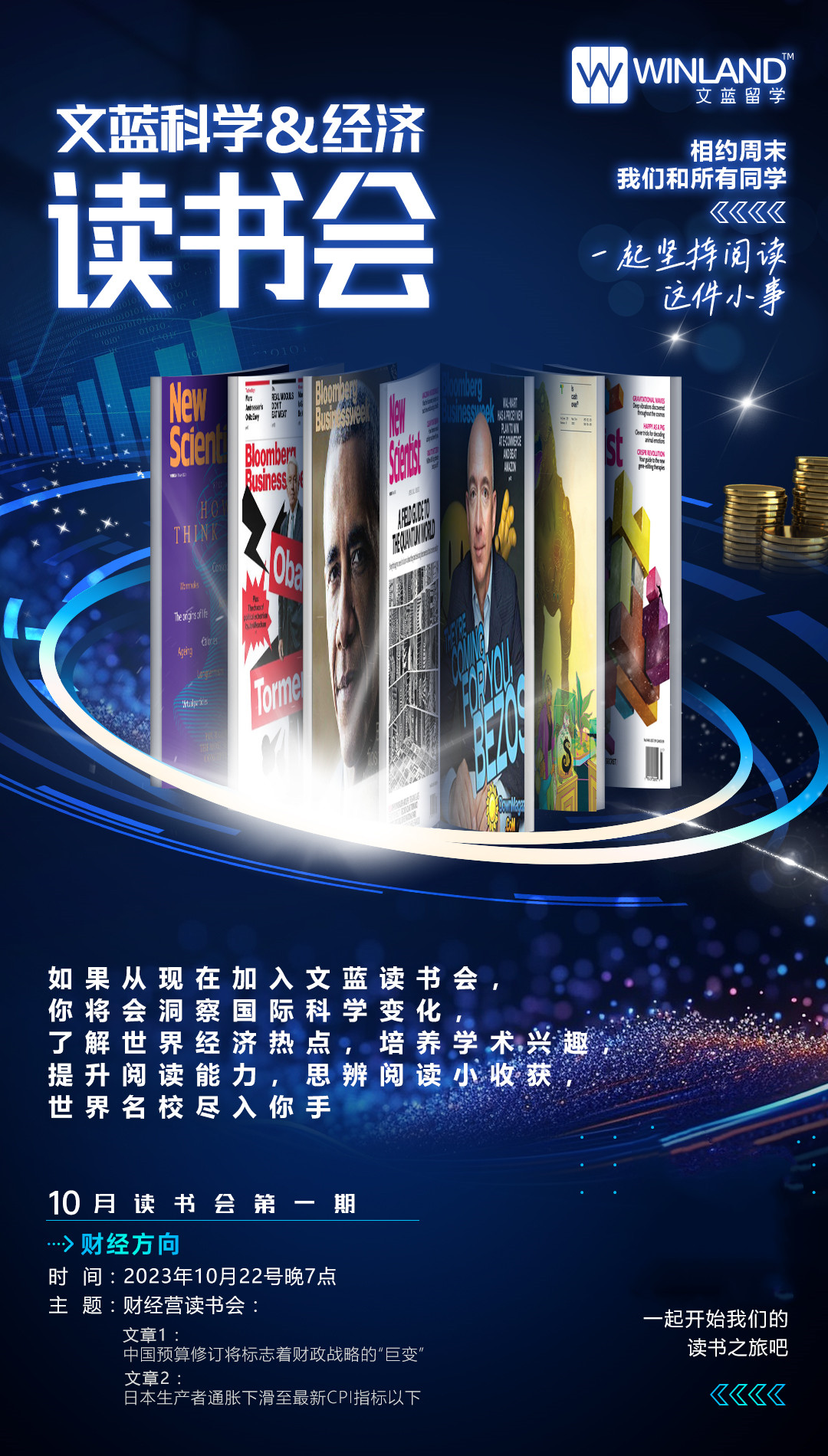 如果从现在加入文蓝读书会,你将会洞察国际科学变化,了解世界经济热点,培养学术兴趣,提升阅读能力,思辨阅读小收获,世界名校尽入你手!