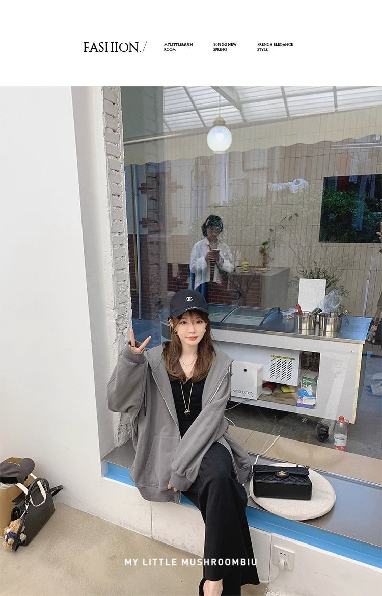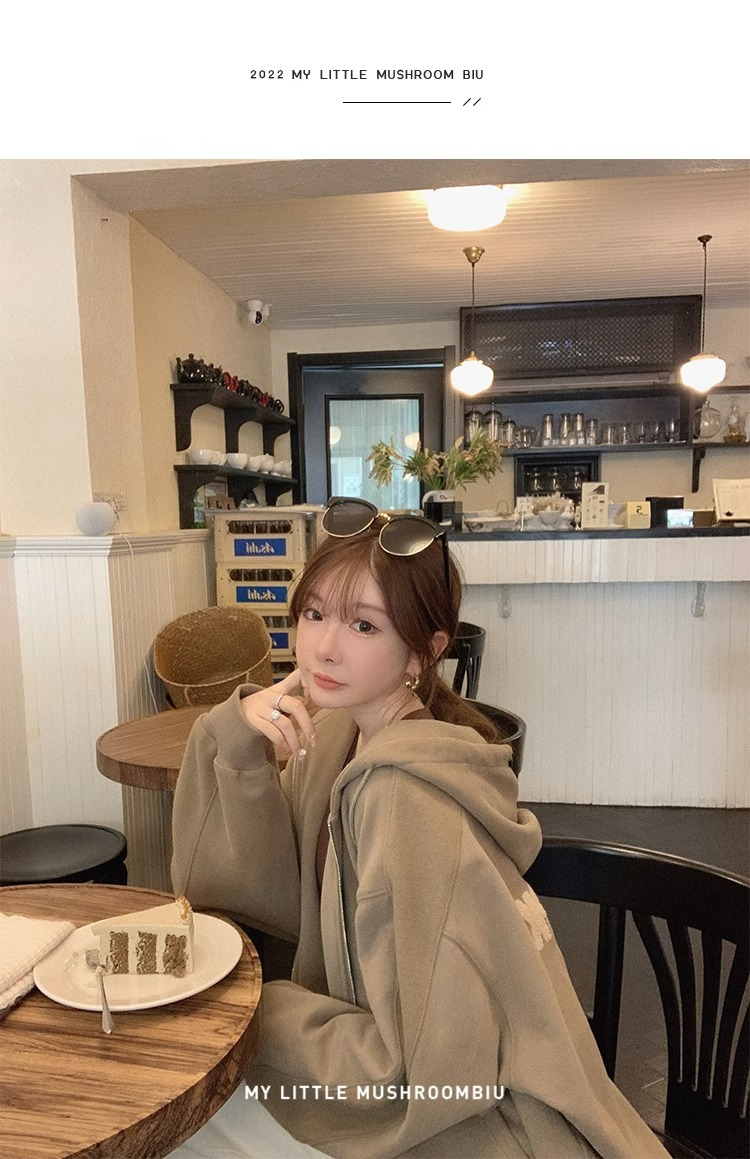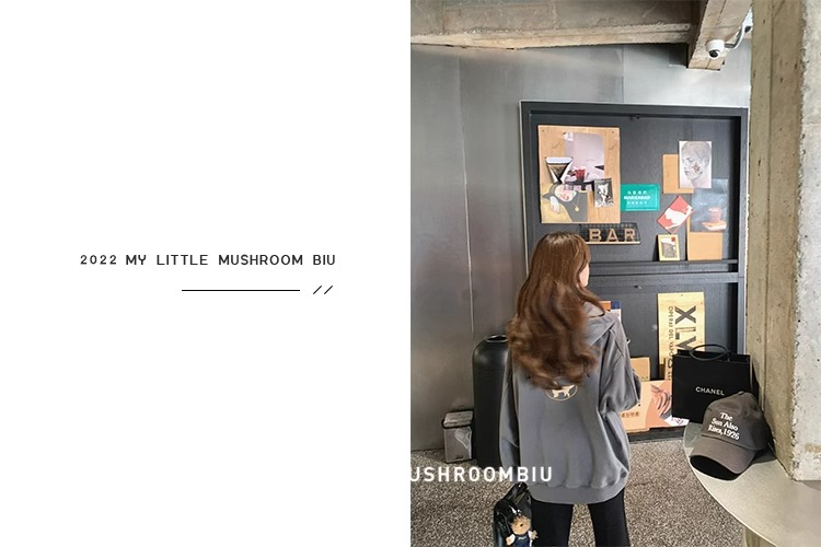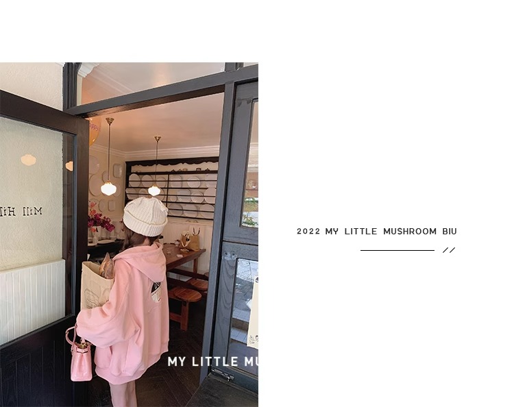 club奶茶XS码 金蘑菇菇 满分安全感 / 哪个女孩不爱大卫衣呢?连帽宽松刺绣卫衣