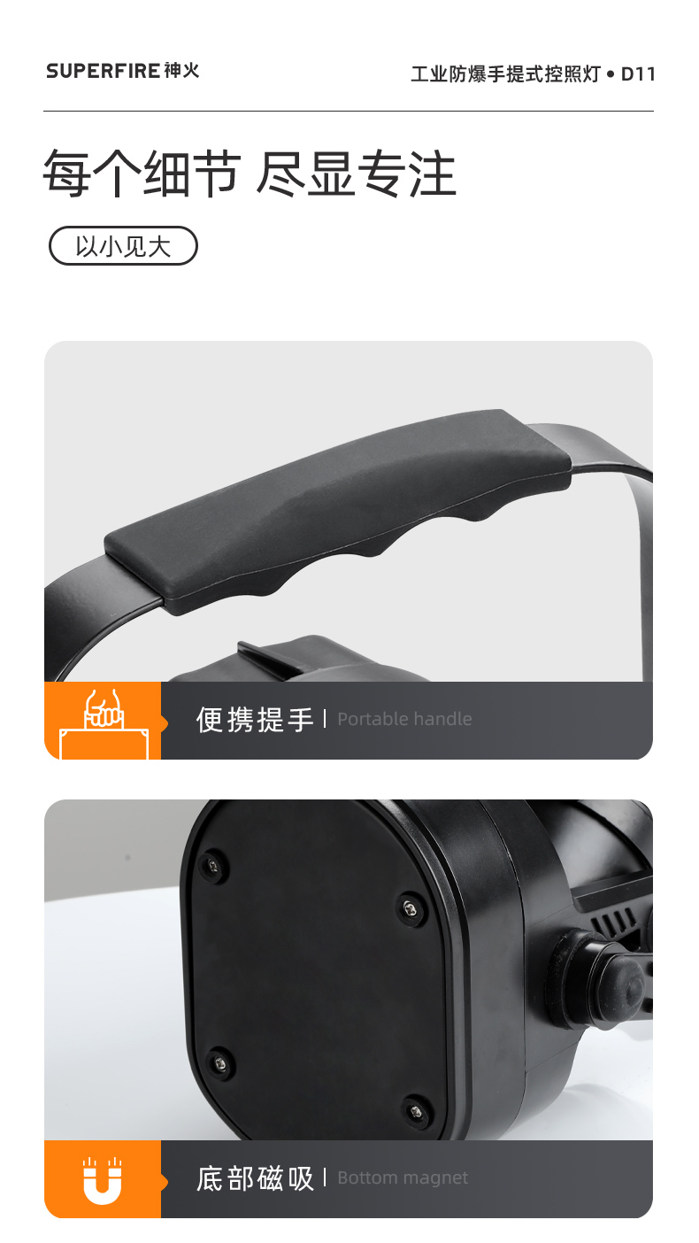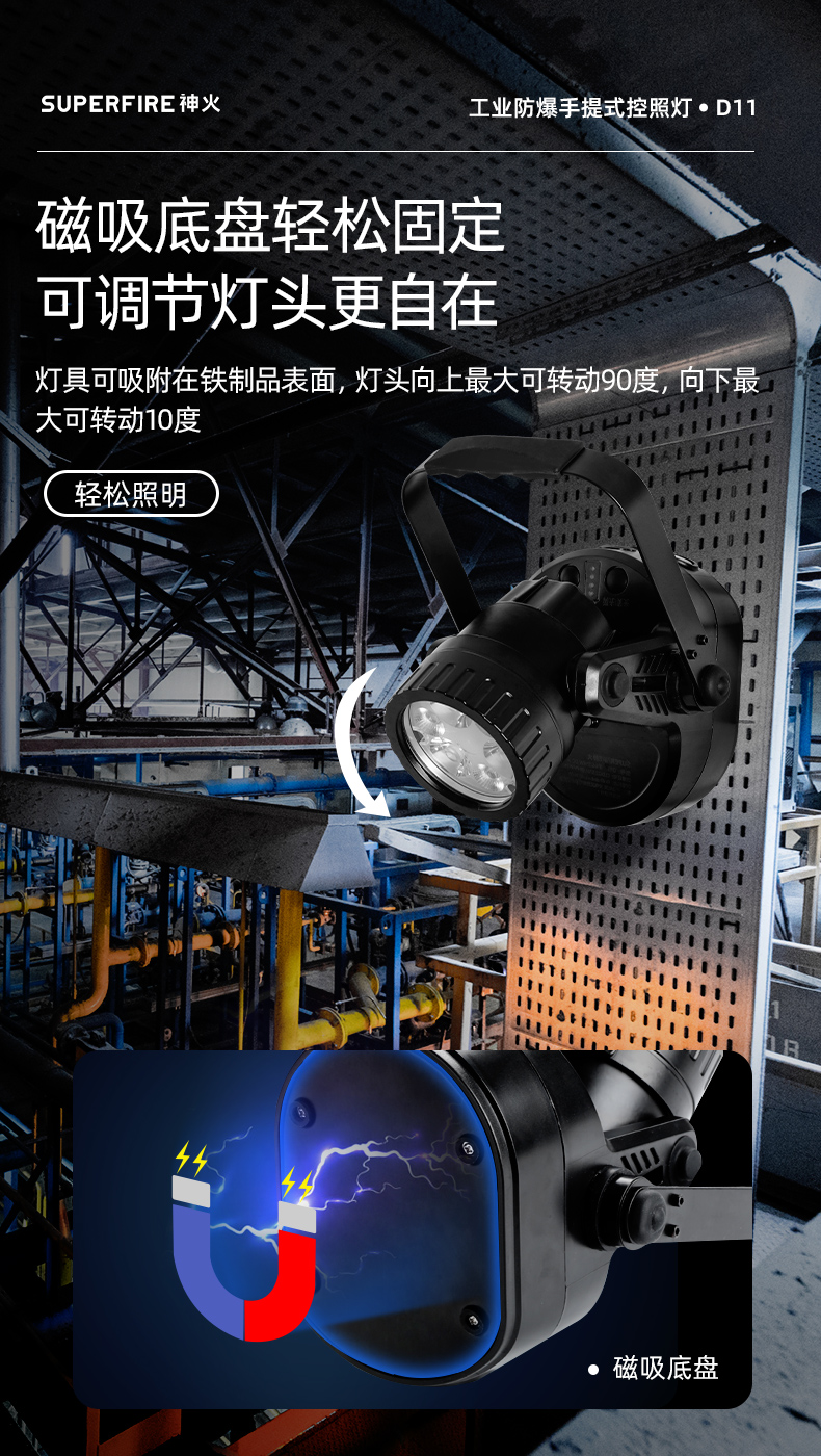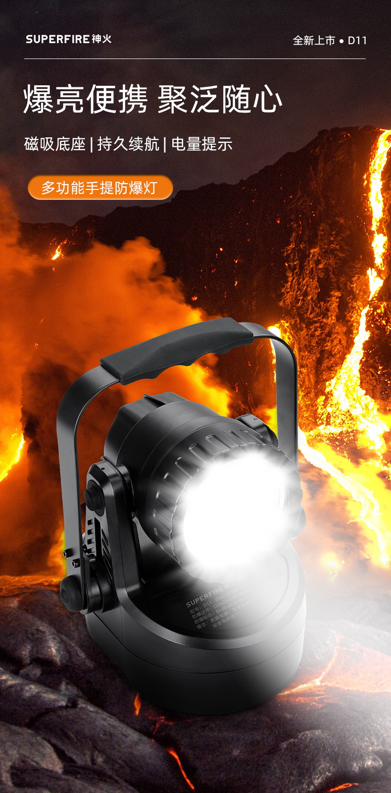 SUPERFIRE神火D11防爆手电筒多功能磁吸超亮远射大功率带防爆证手提探照灯