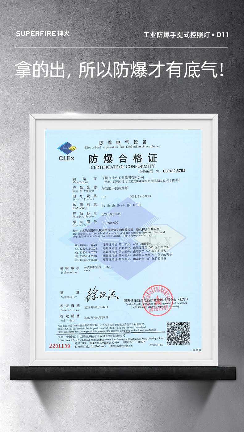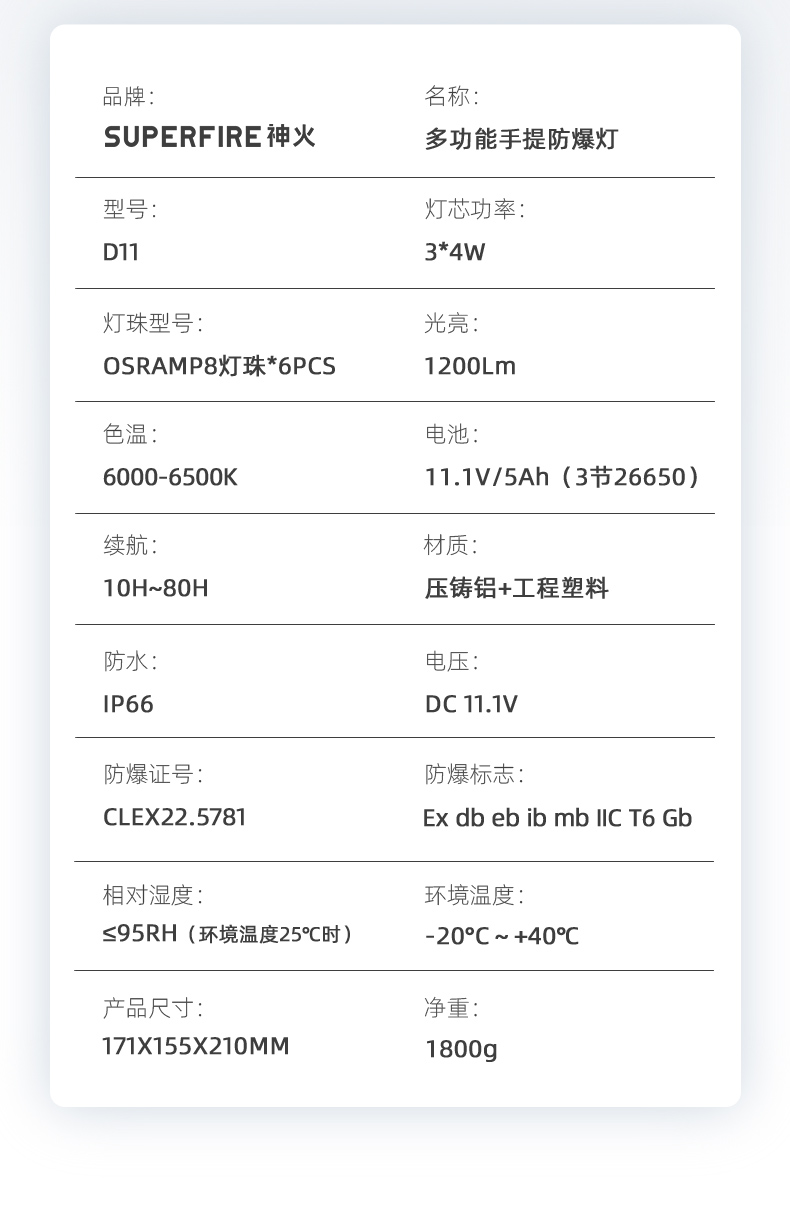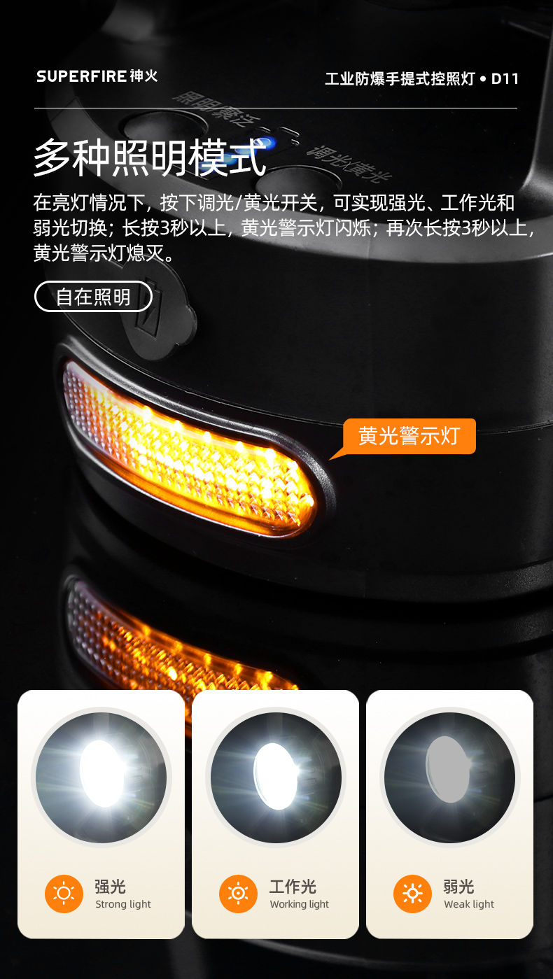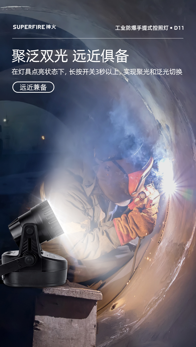 SUPERFIRE神火D11防爆手电筒多功能磁吸超亮远射大功率带防爆证手提探照灯