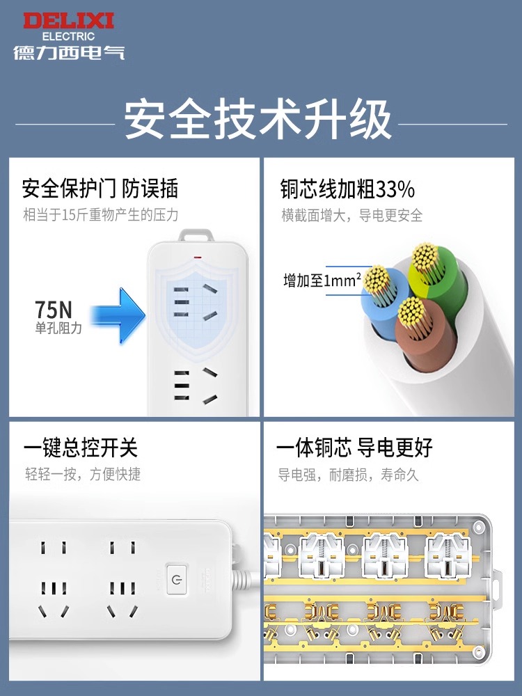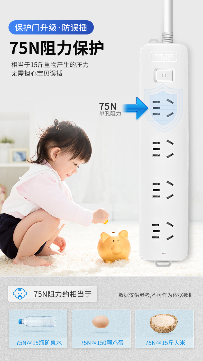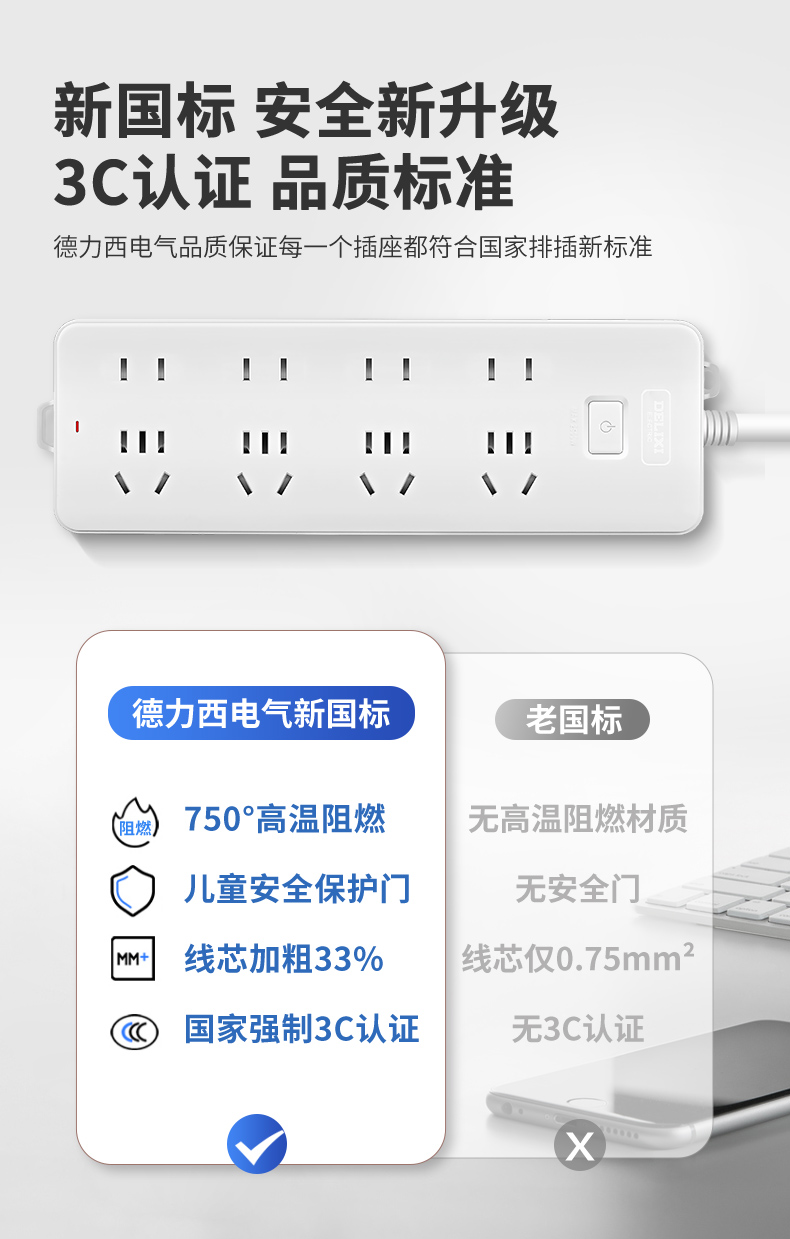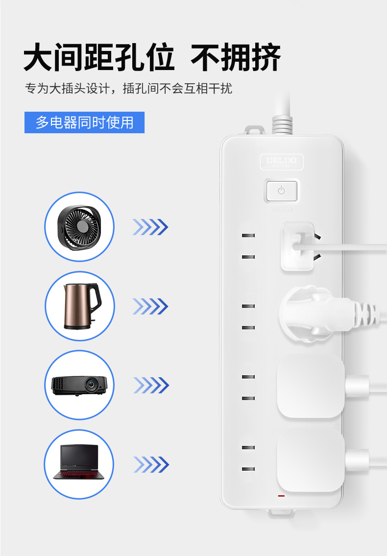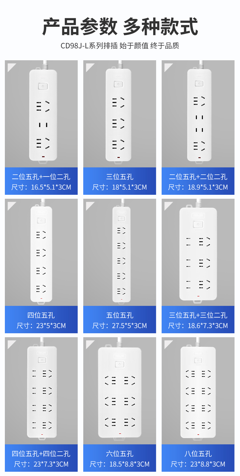 多功能插板三位五孔+三位二孔 1.8米 FX-A-2253-240409