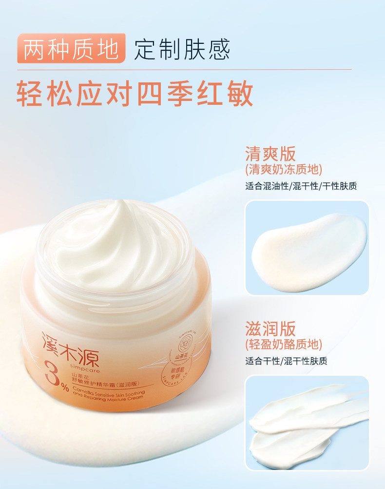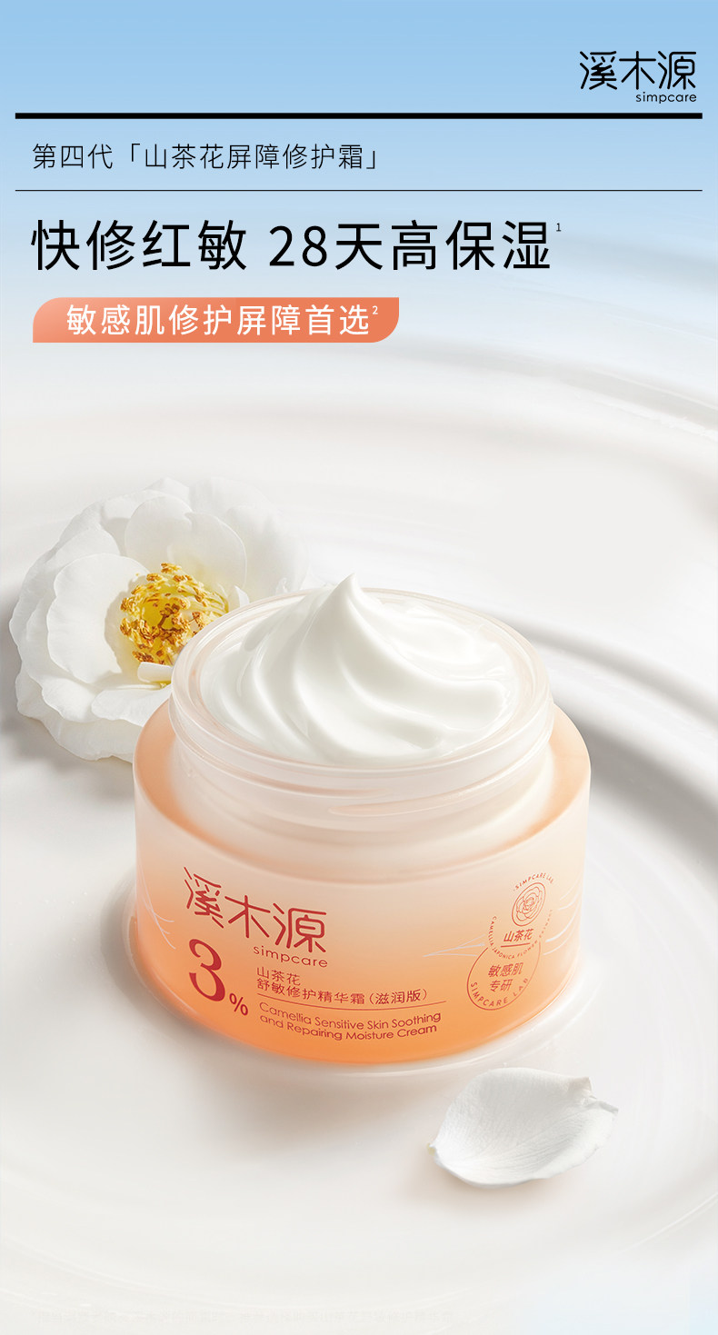 溪木源山茶花面霜50G 保湿滋润清爽乳液敏感肌舒缓修护褪红精华
