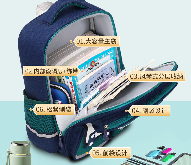 【E选好物】新款小学生书包儿童护脊减负牛津布双肩包夹层大容量男童防泼水-E24080201(下单后5-7天发货)