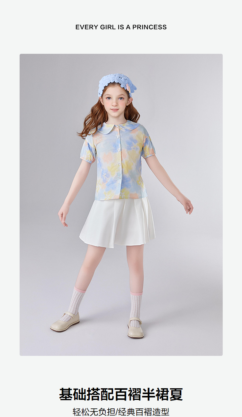 笛莎Deesha 童装女童半身裙2025夏新款女童基础搭配百褶半裙