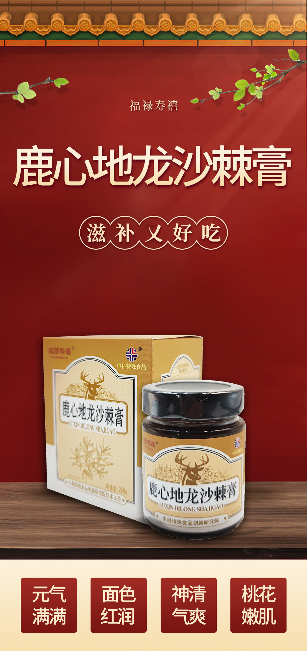 福鹿寿禧 鹿心地龙沙棘膏 道地药材传统古方260g/瓶