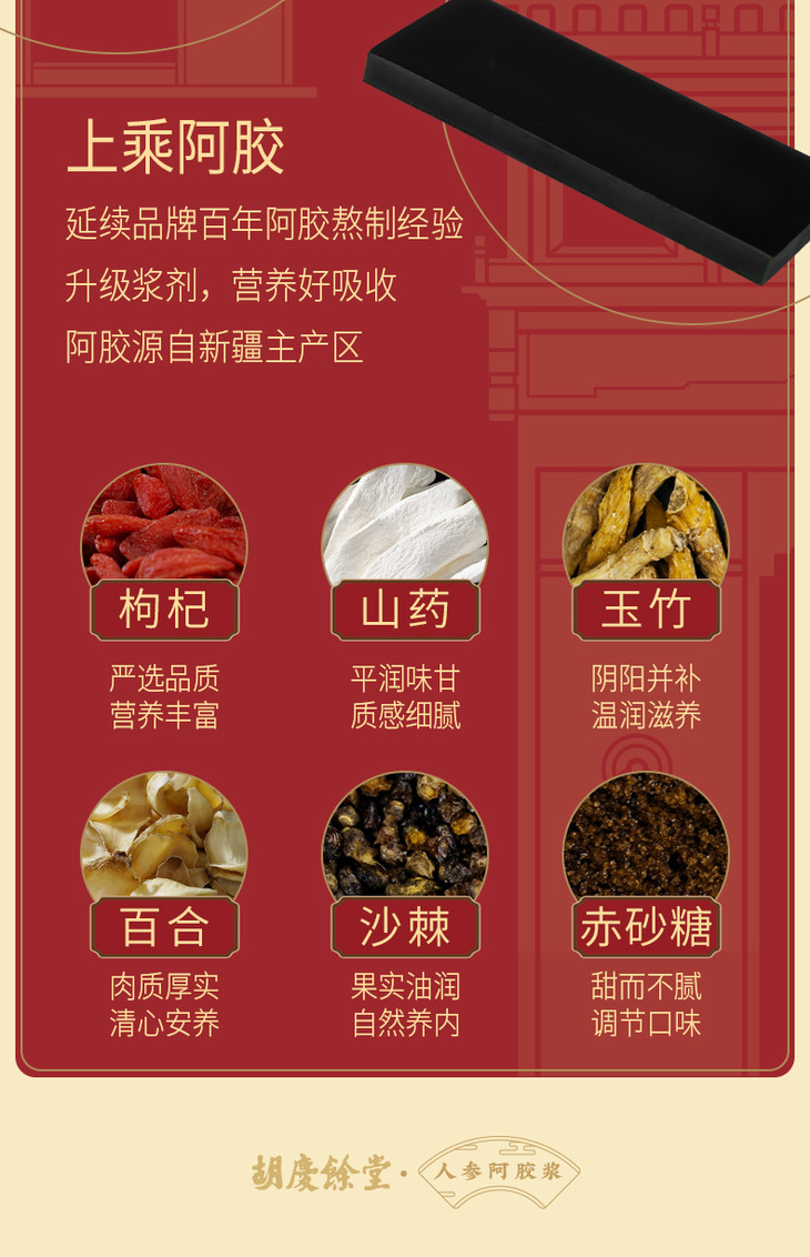胡庆余堂 人参阿胶浆250ml(50ml_5支)人参阿胶浓缩精华