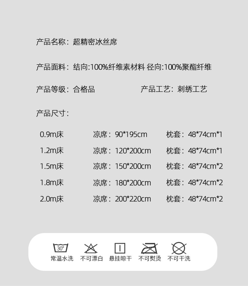 【吸湿透气】双面刺绣冰藤席2件套/3件套 凉席