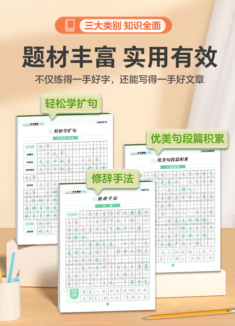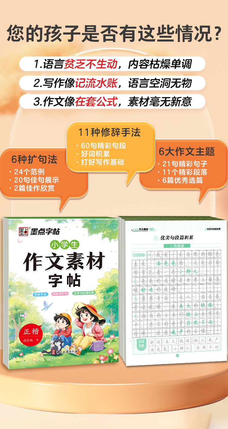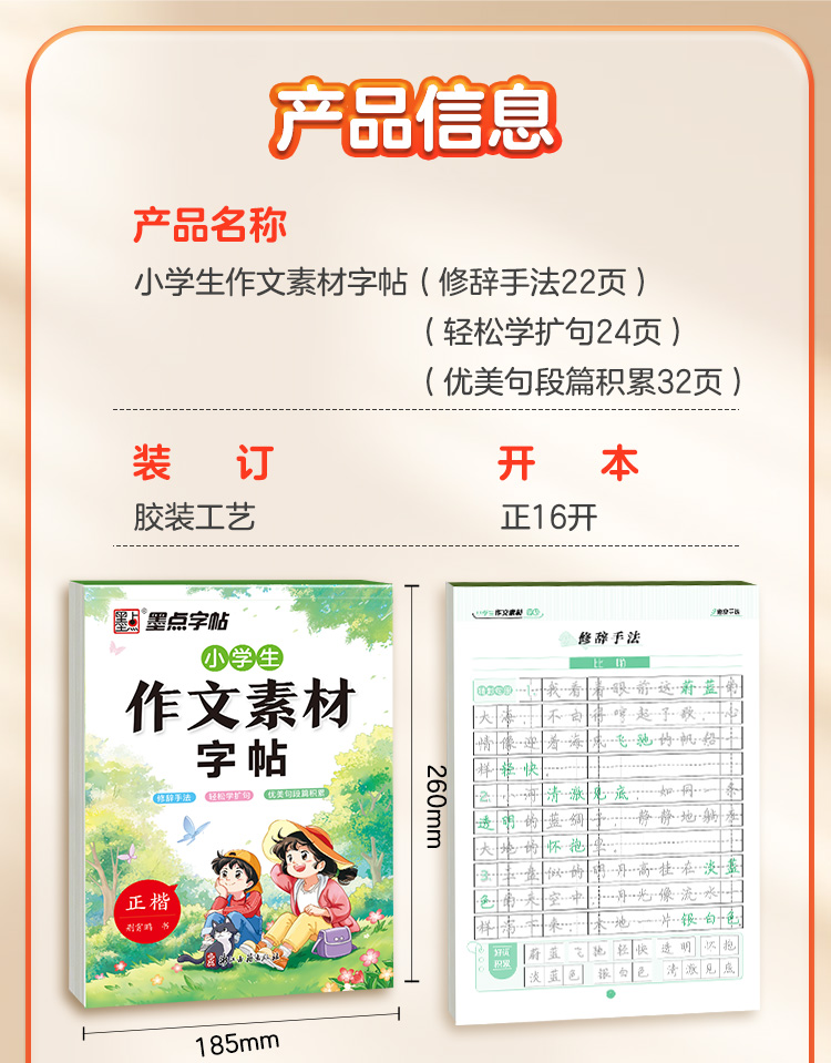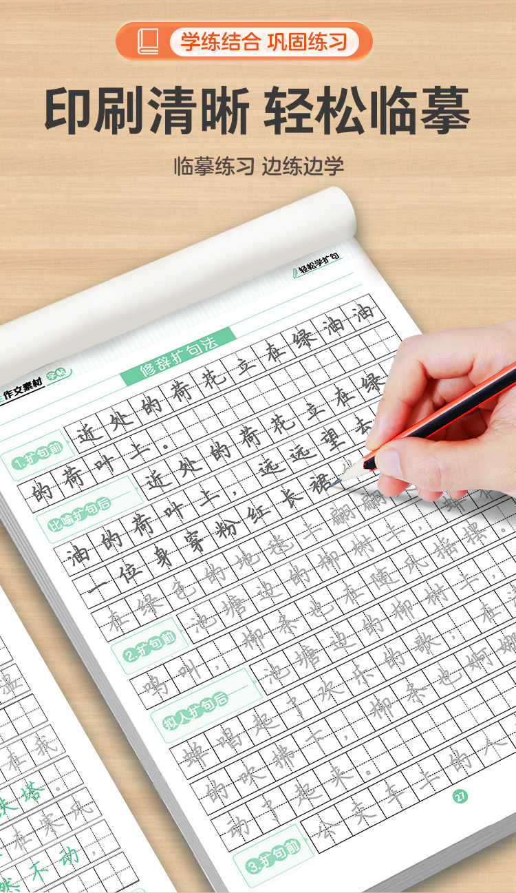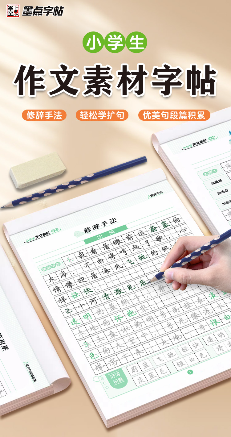 墨点小学生作文素材字帖练字专用语文一二三四五六年级上册下册正楷书同步描红满分作文每日一练修辞手法轻松学扩句优美句段篇积累