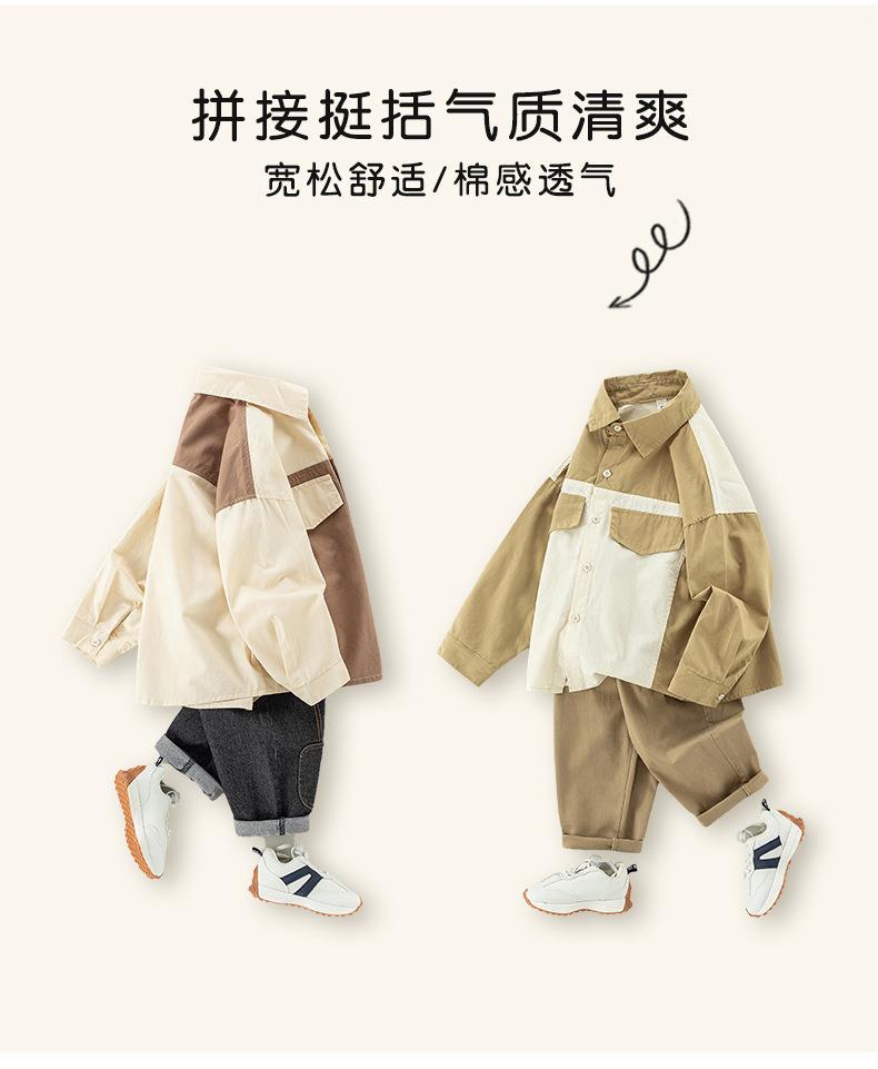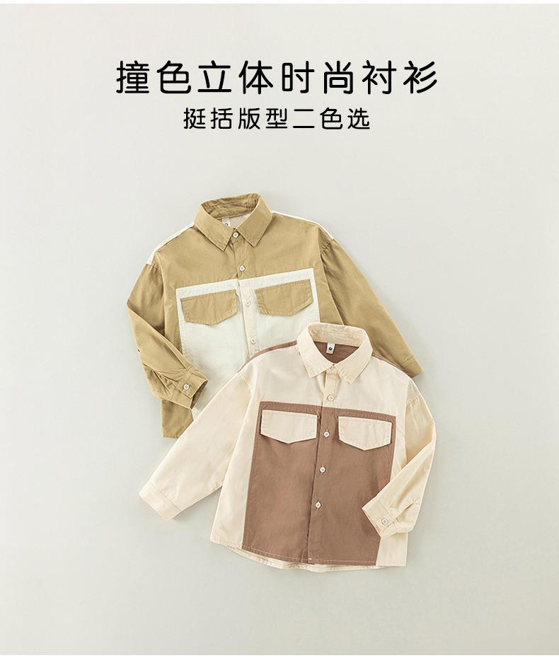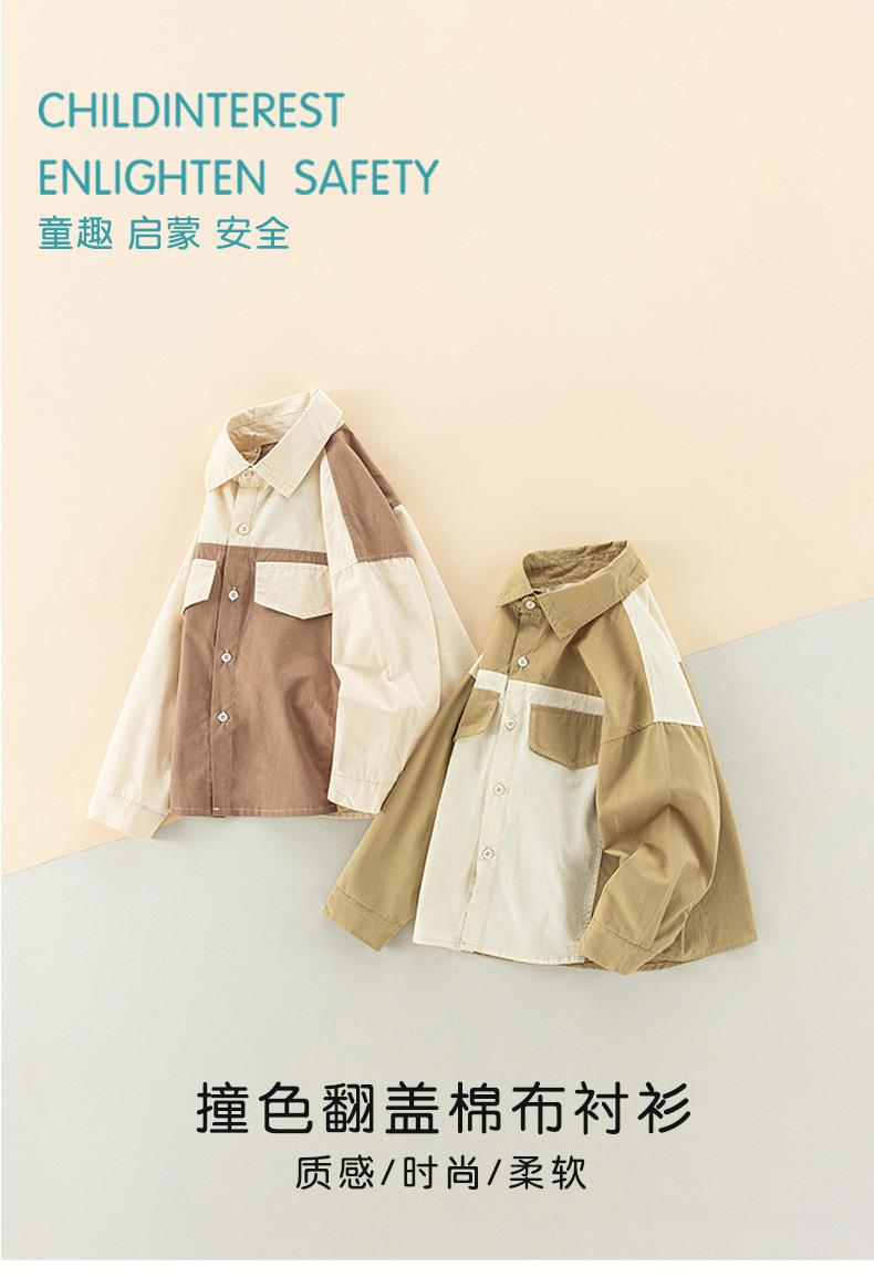 男童衬衫春季宝宝韩版撞色上衣小童长袖翻领衣服春装儿童纯棉衬衣