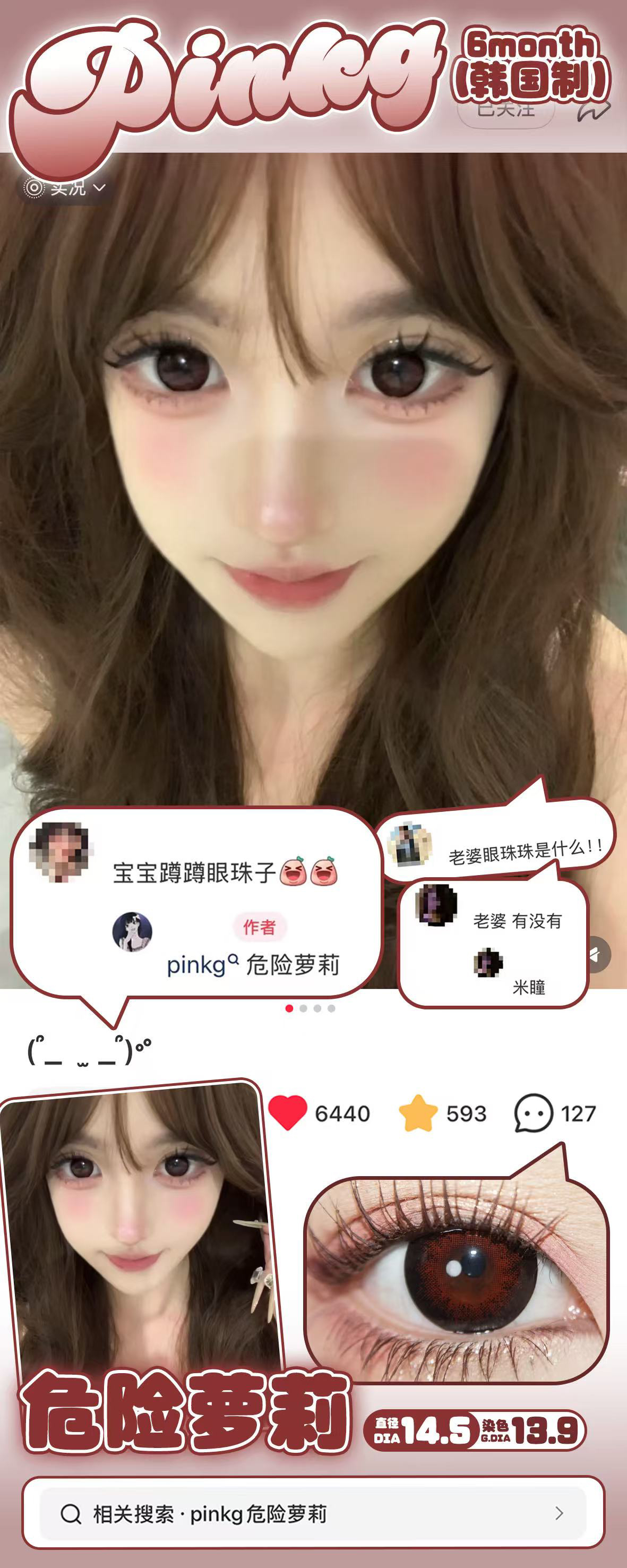 PINKG/韩产玻尿酸主打大直径半年抛美瞳小酪棕/危险萝莉/laseecon