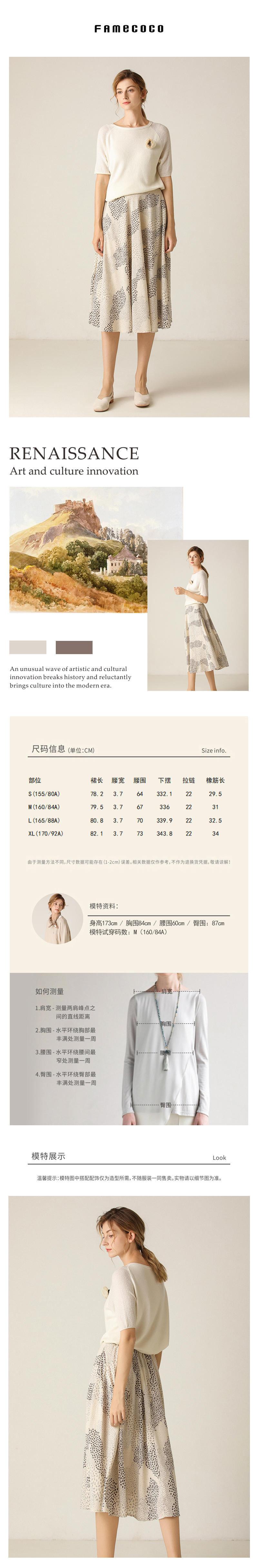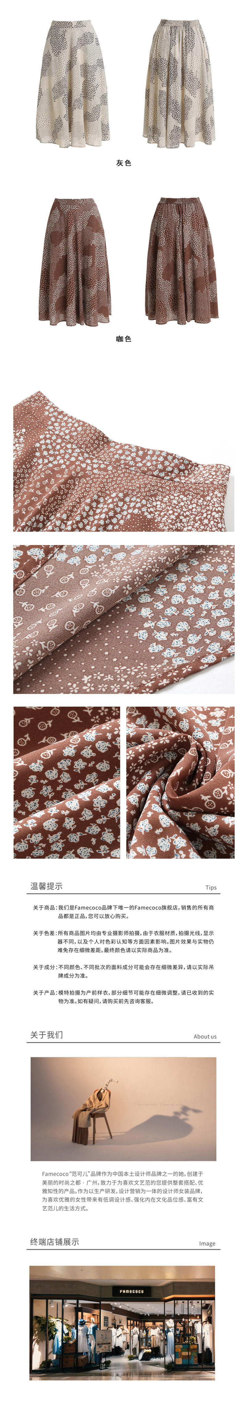 famecoco范可儿半身裙女夏新款碎花百搭显瘦半裙F203HA018