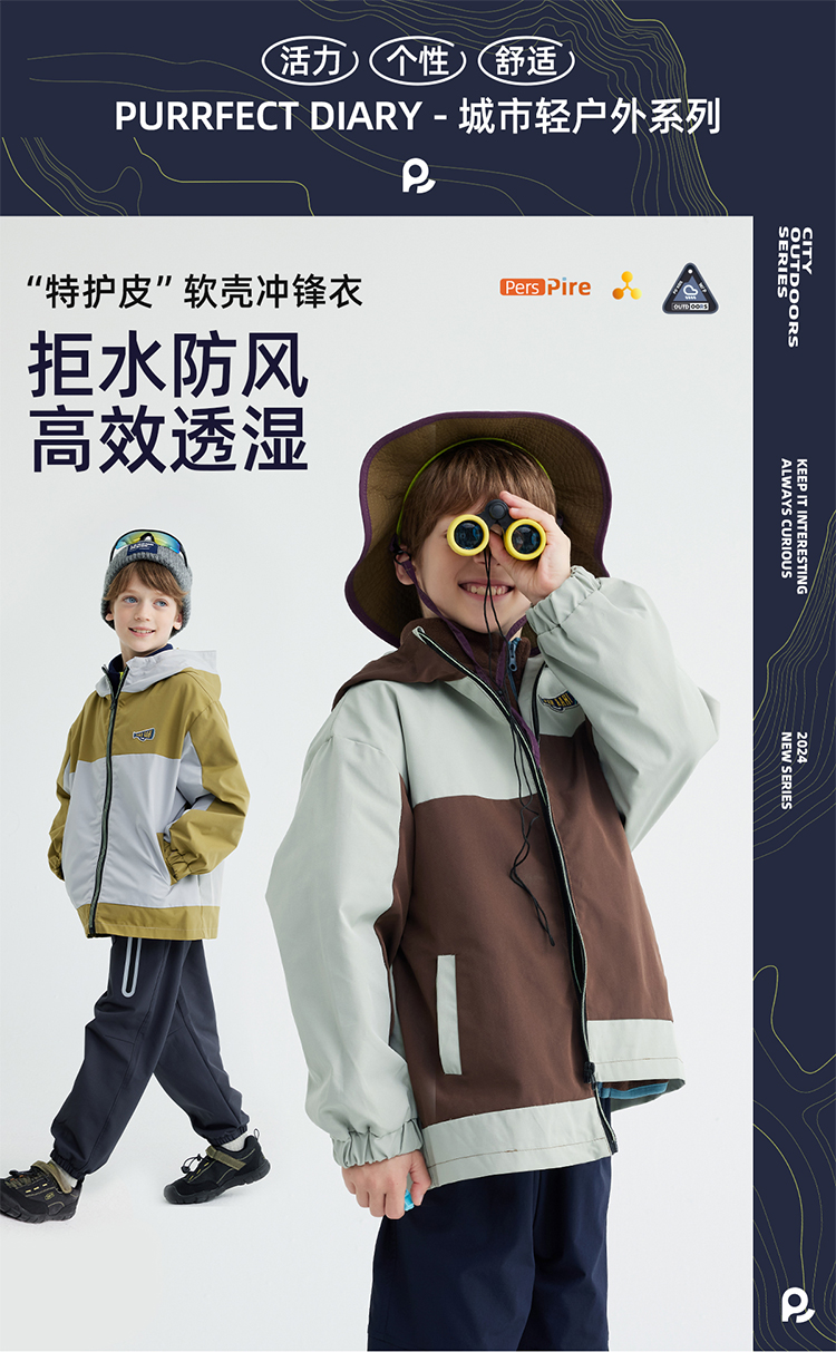 fx-【超轻】咕噜日记童装儿童轻薄款外套男女童耐磨上衣户外夹克防水PCWT2504
