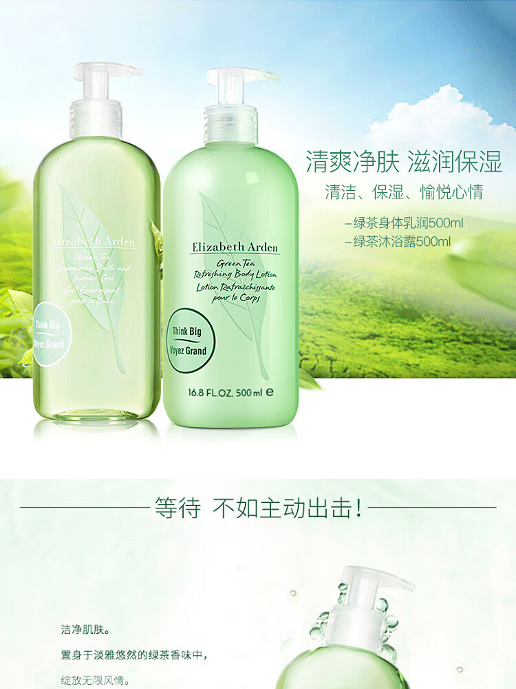 伊丽莎白雅顿绿茶清新身体护理礼盒1000ml(沐浴露500ml+身体乳500m1)