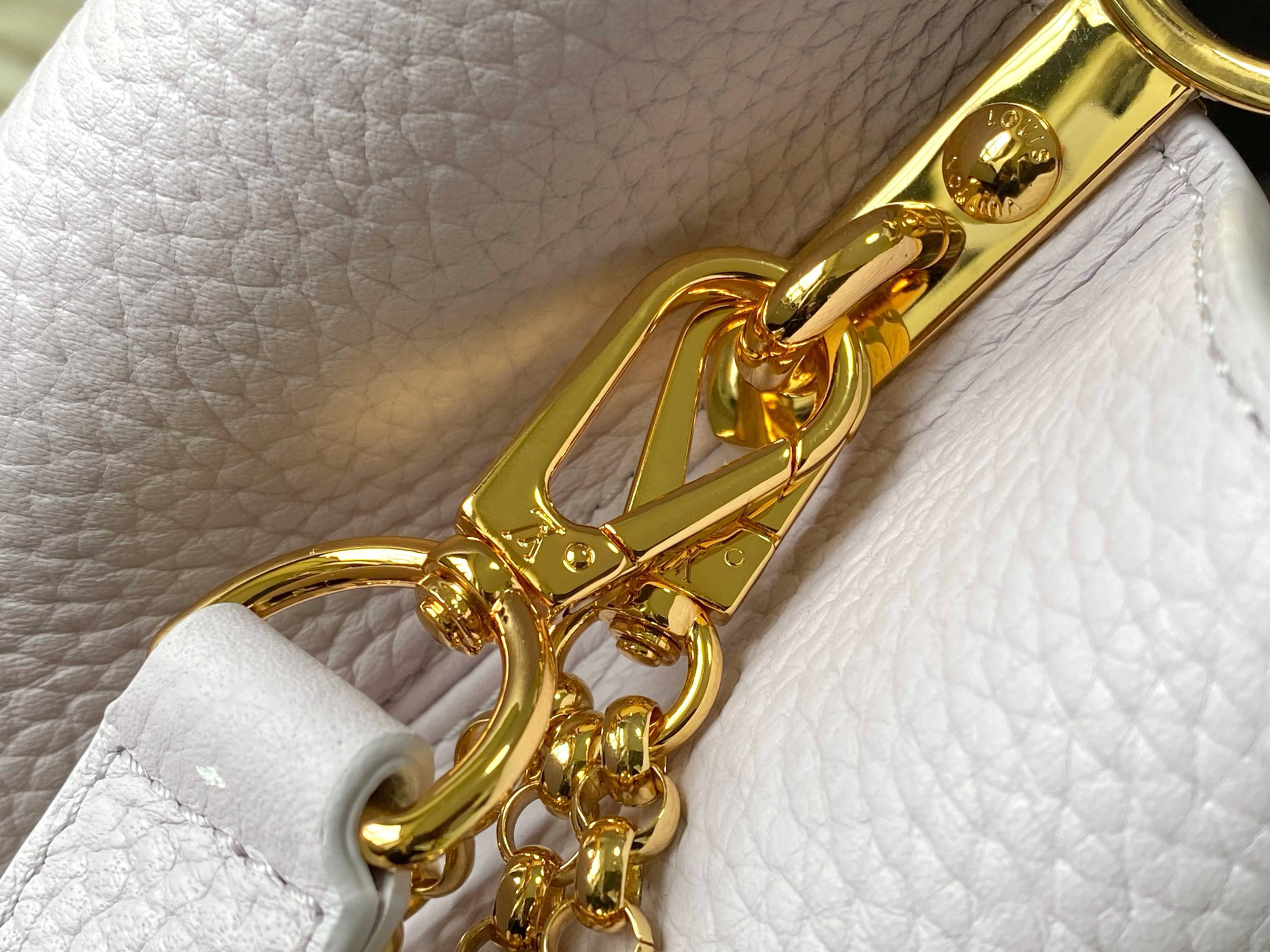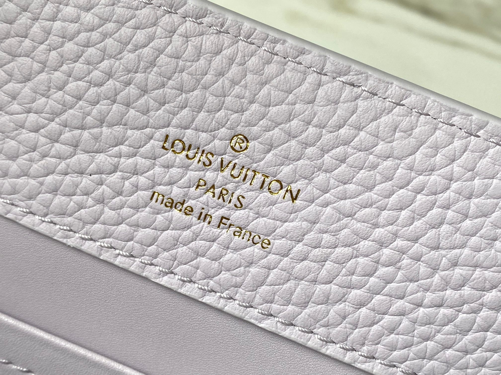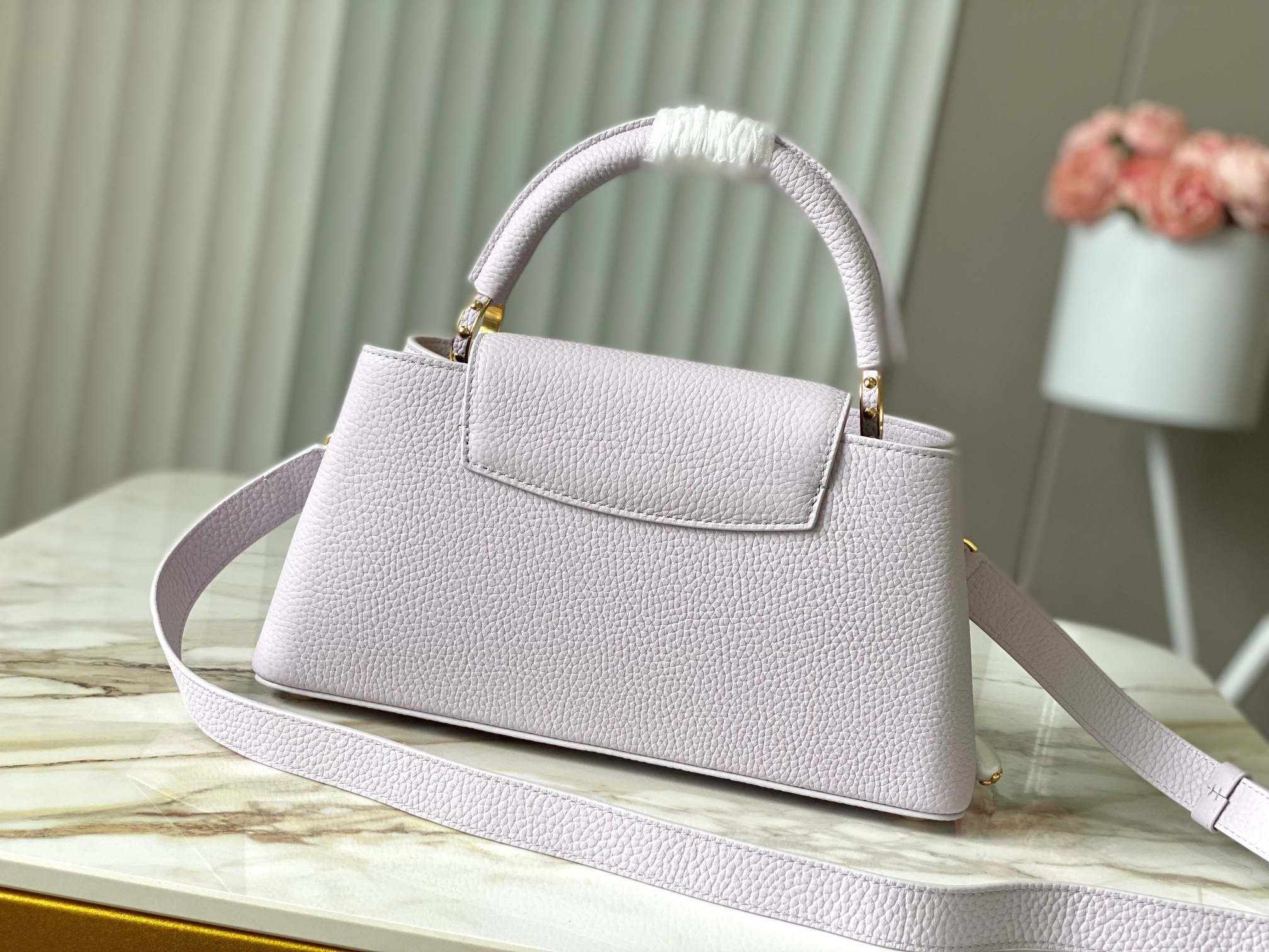 秋冬特惠💰1800 渠道级LV 新品 te级LV 动态芯片 M25476/M48865浅紫珍珠花朵 本款Capucines East-West手袋为Taurillon 牛皮革渲染柔婉色调 讲述Daydream系列的灵感启发 巴洛克风格链条融入贝壳 Monogram 花卉装饰 肩背、斜挎或手提皆宜 Size : 30 * 19 * 9 CM
