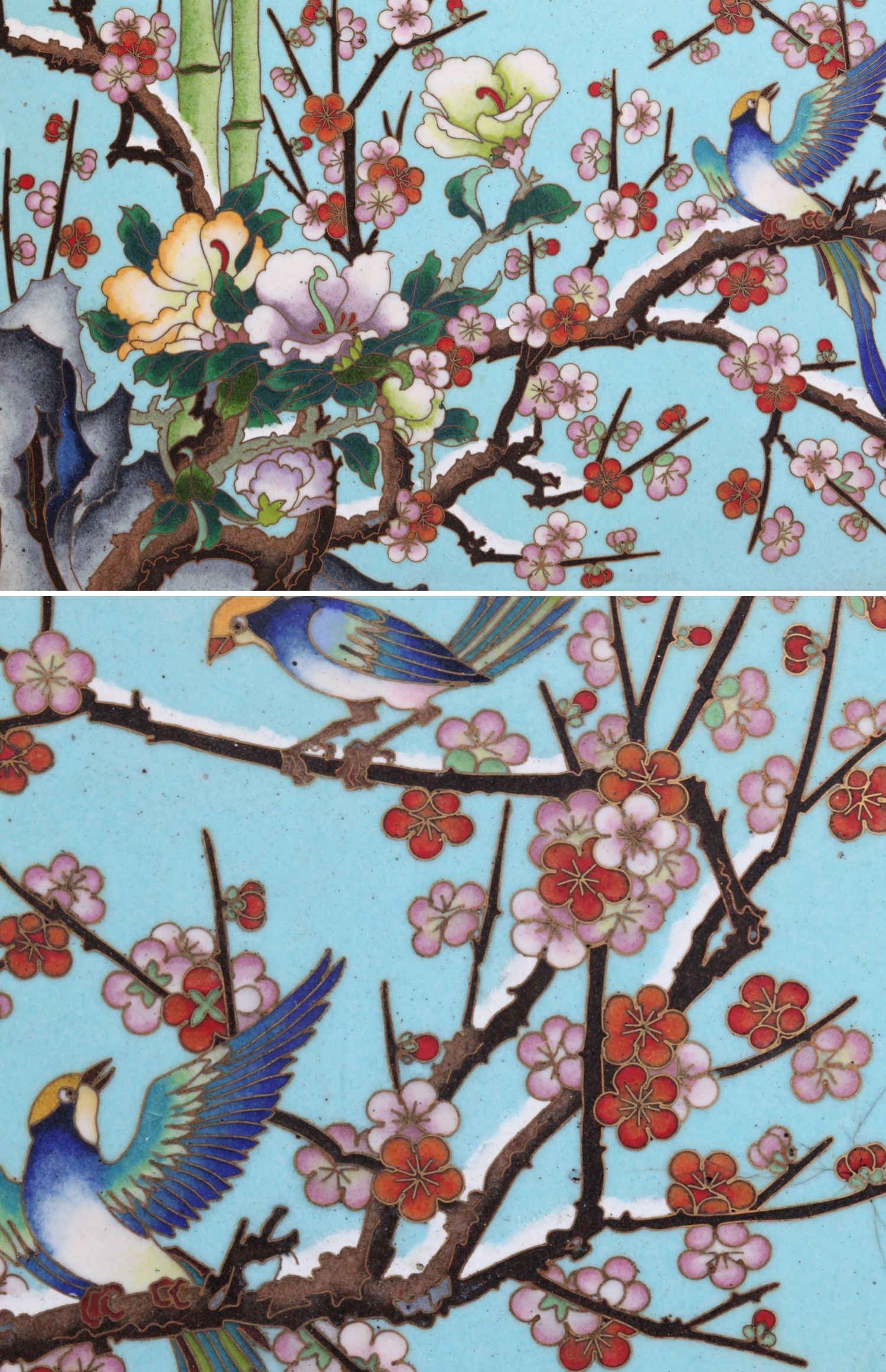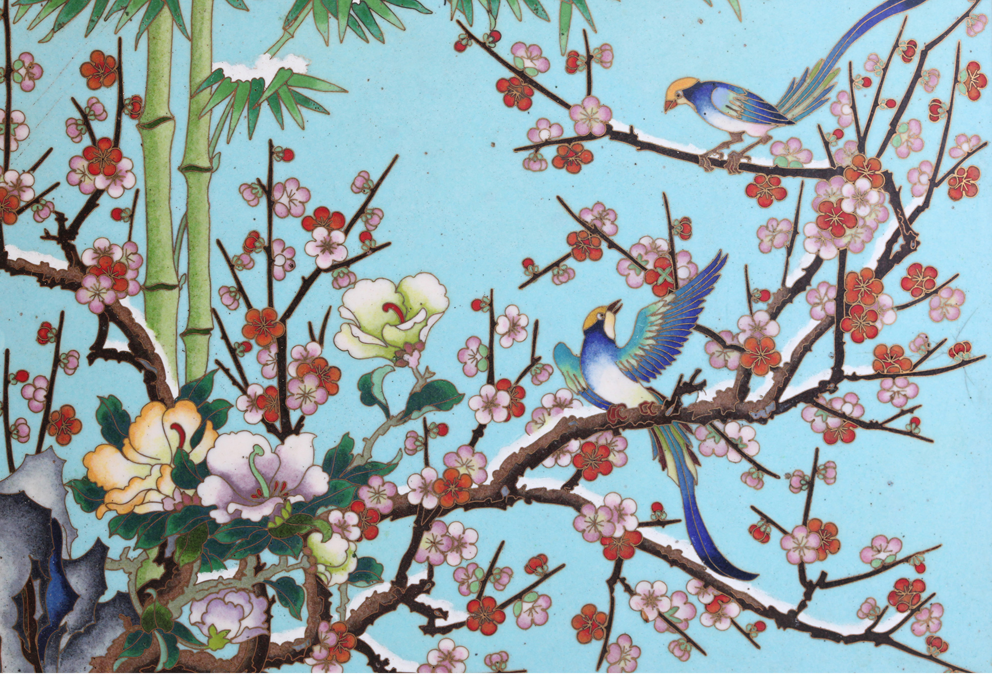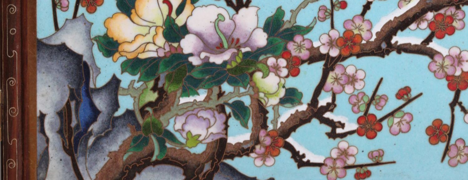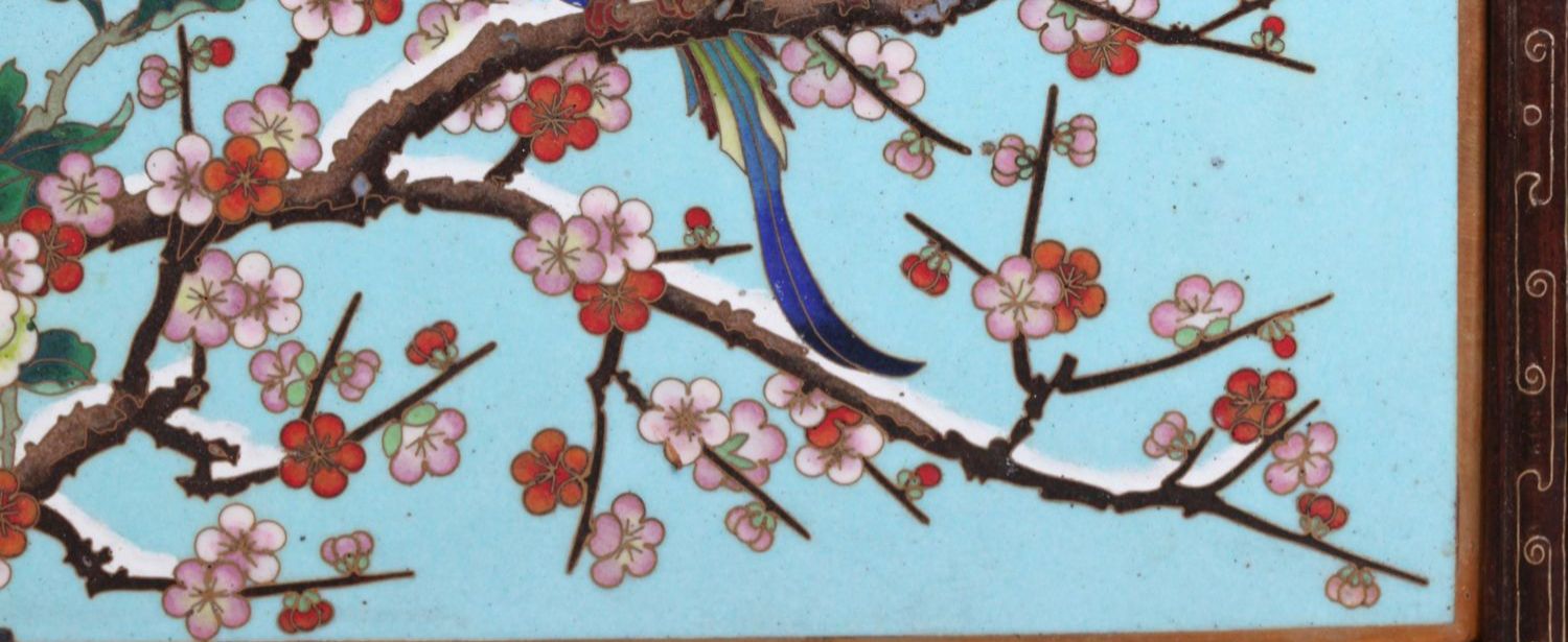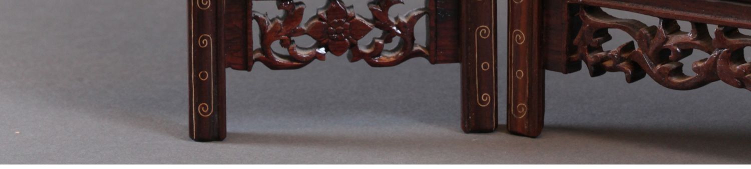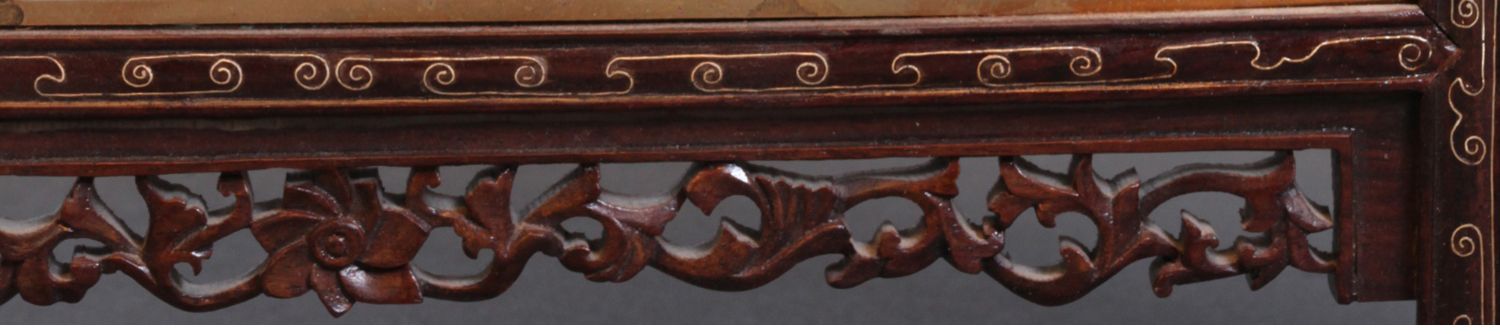独角鹿西洋古董清代中国花叶纹镂雕木质边框掐丝珐琅三曲小桌屏