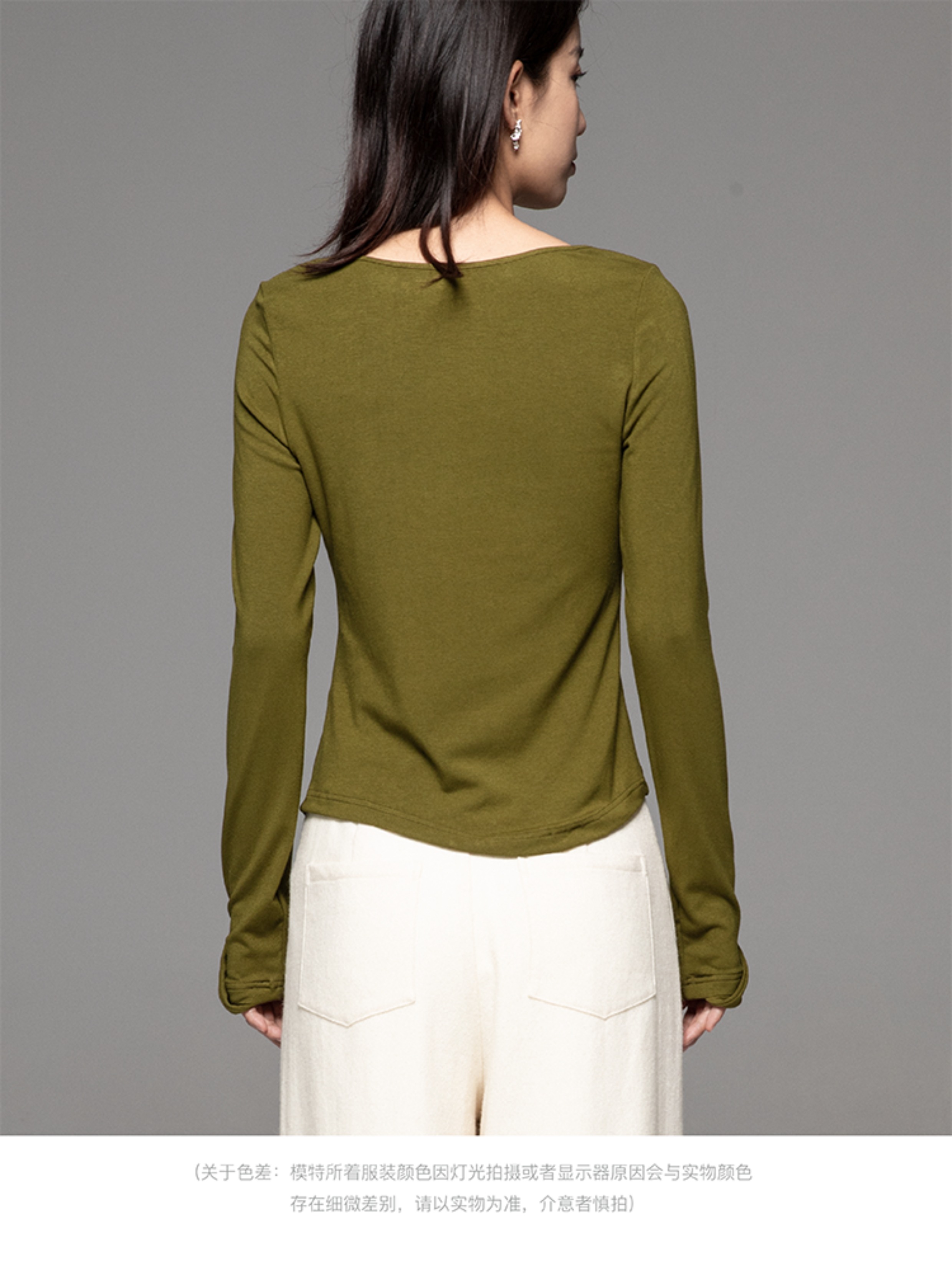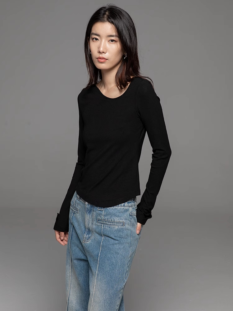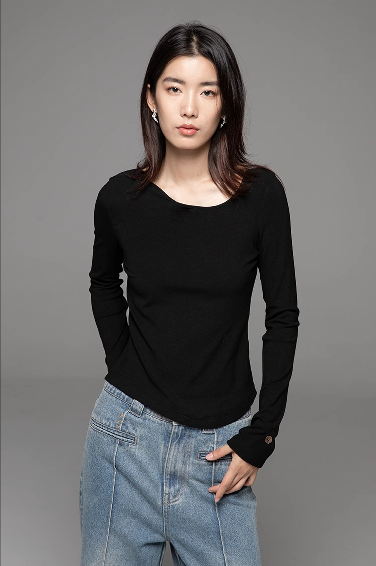 LIYIHAN24不规则上衣豌豆领打底衫春秋女修身内搭长袖t恤秋设计感