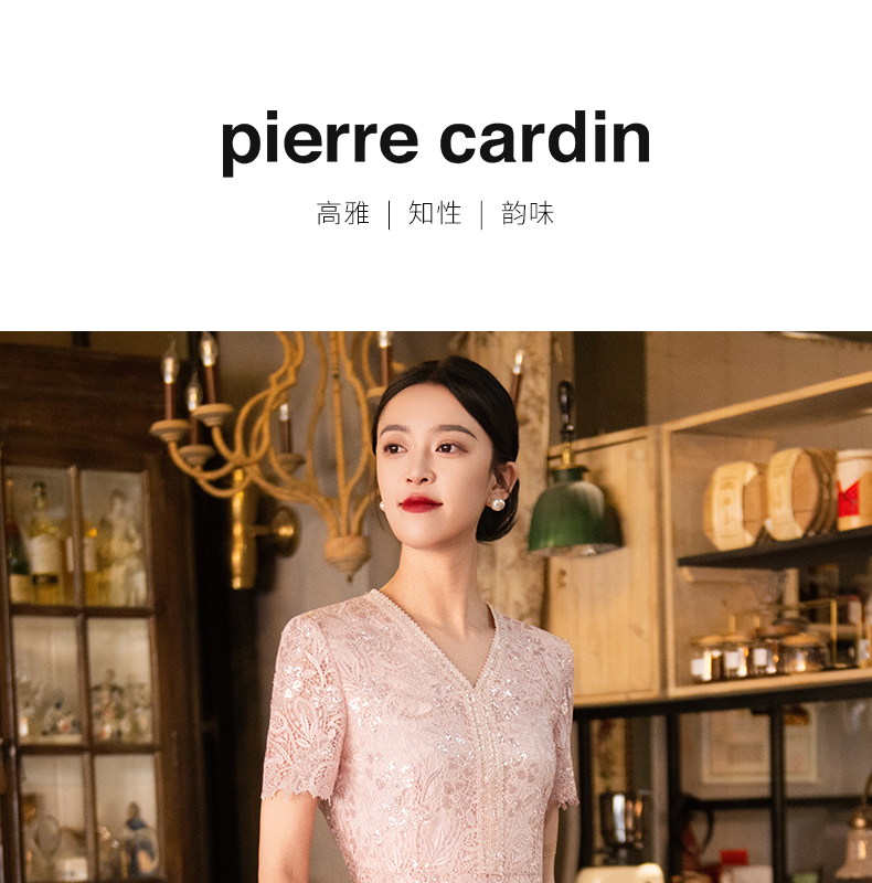 皮尔卡丹女装春季淑女优雅浪漫蕾丝连衣裙P2204D2096F0