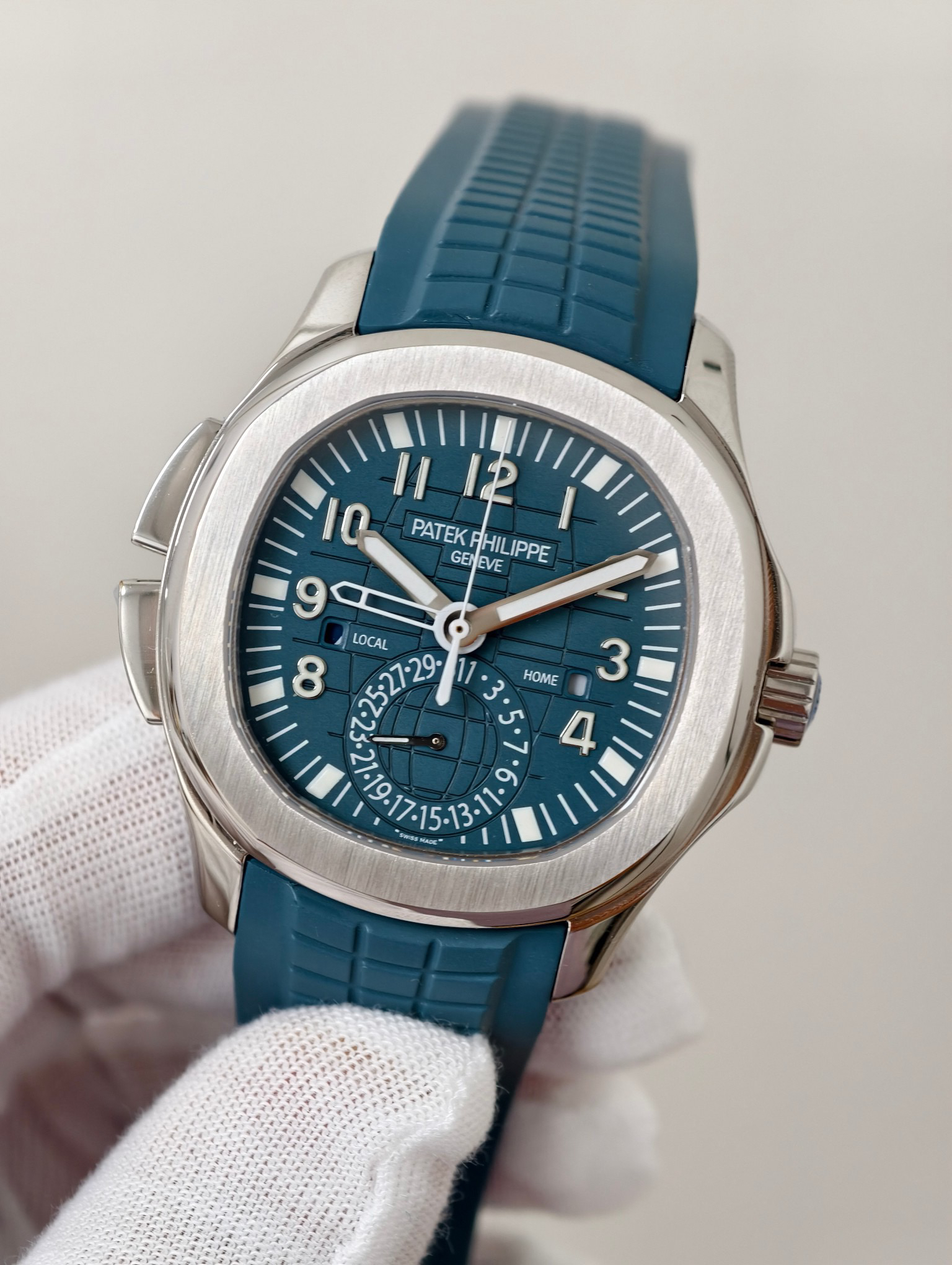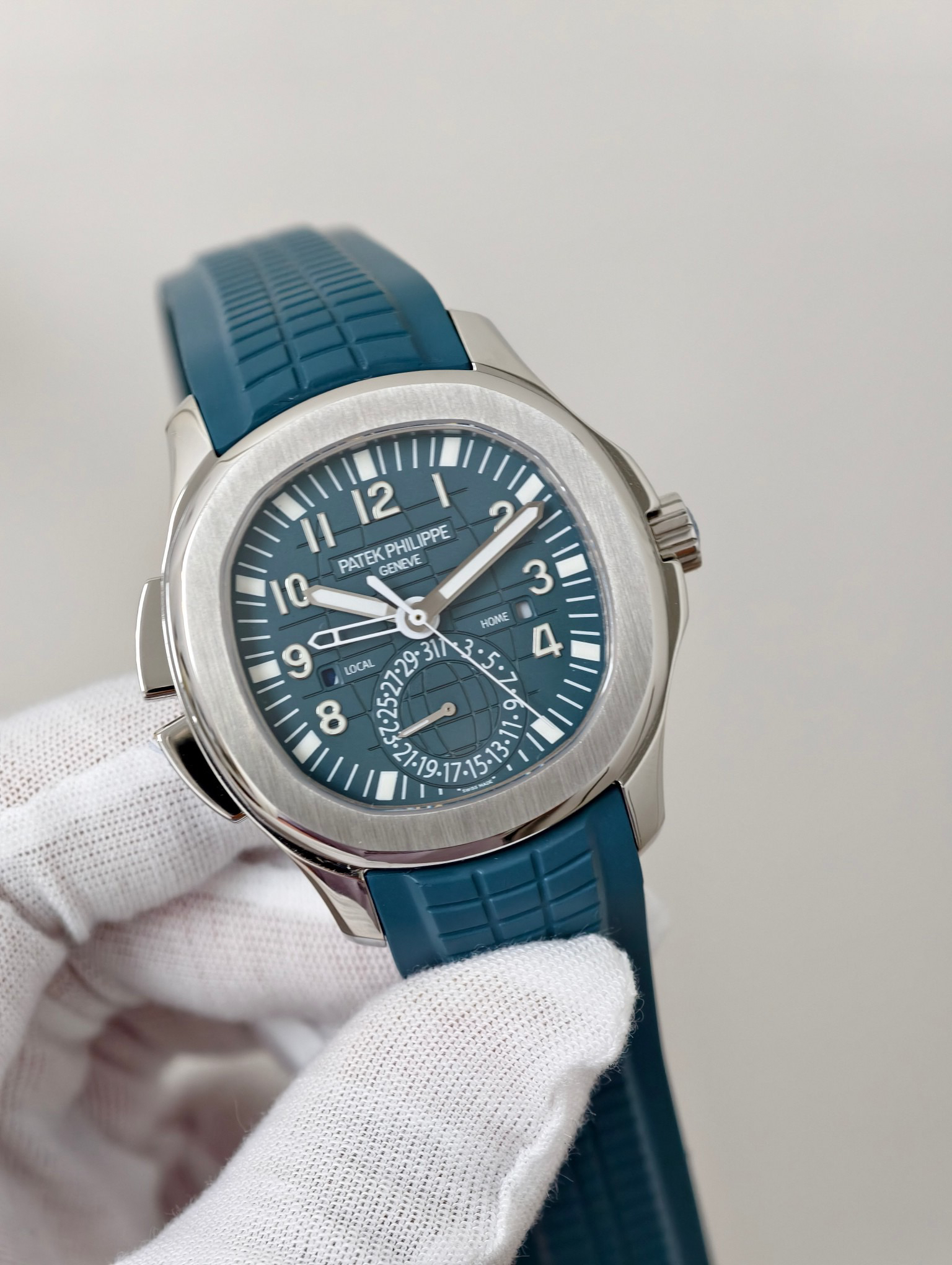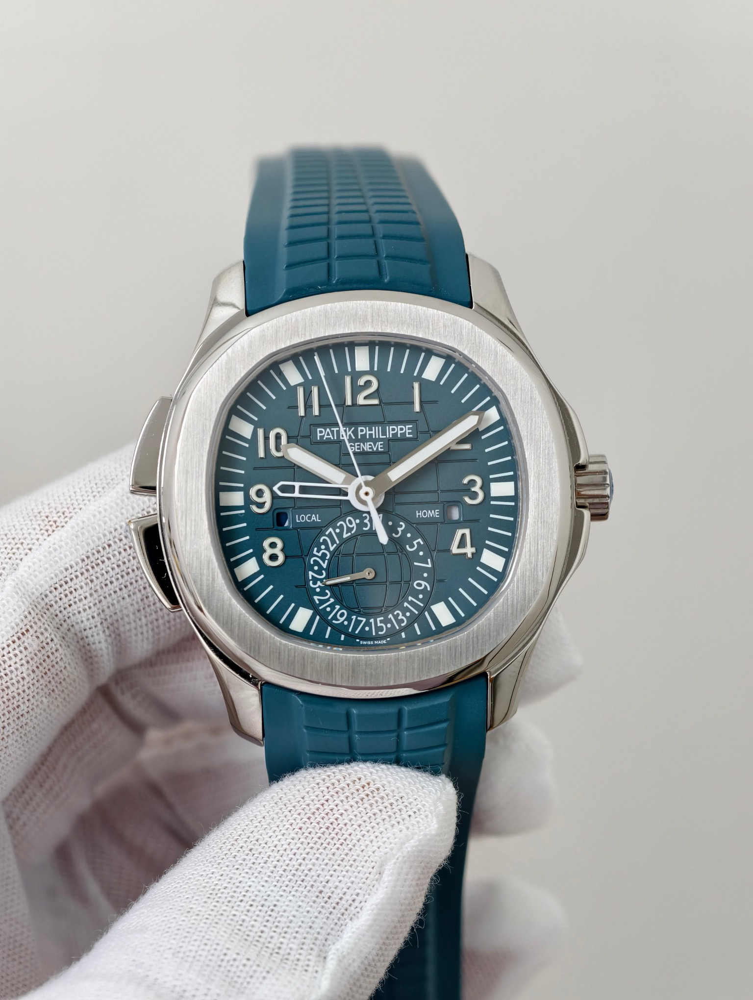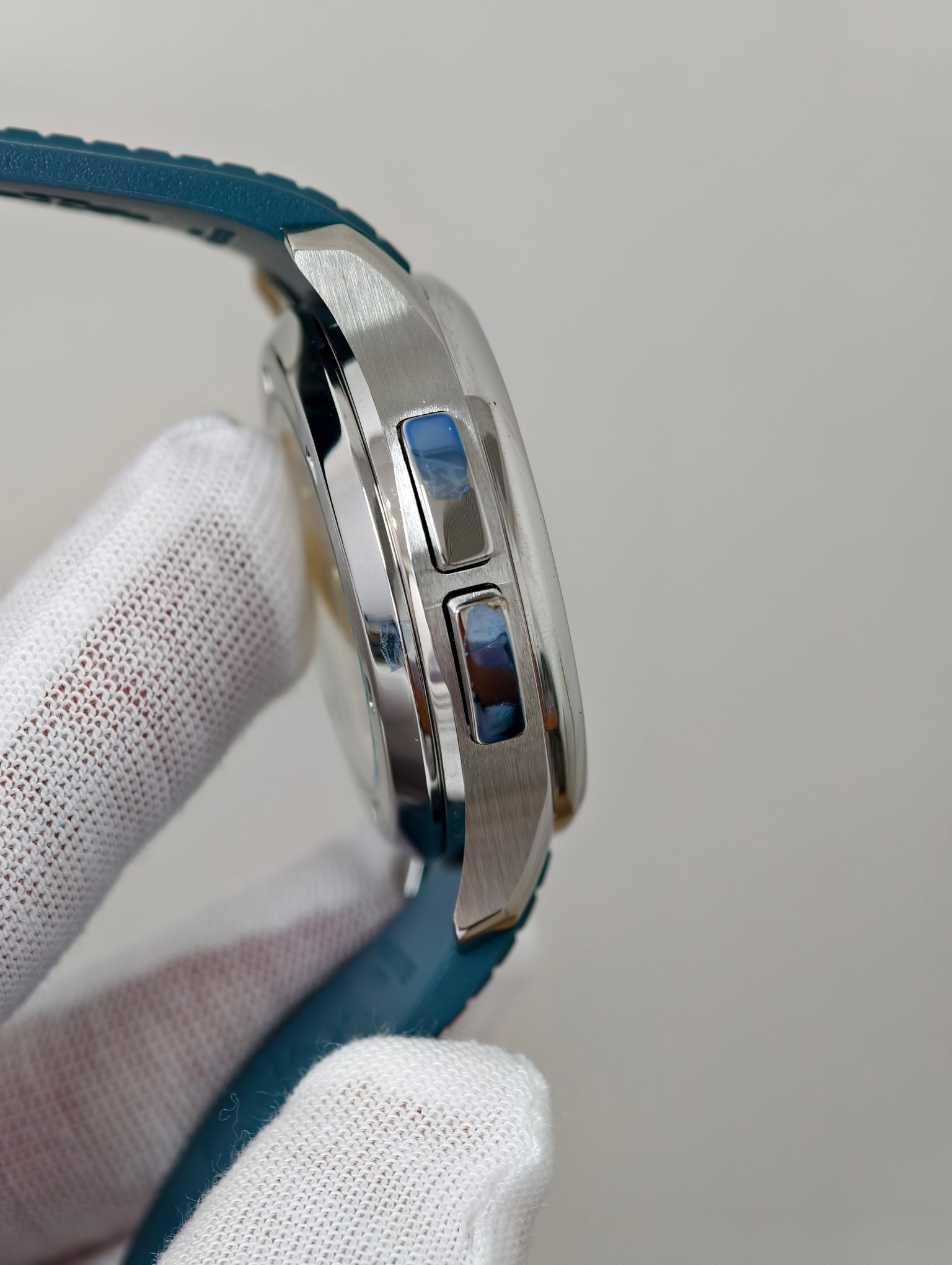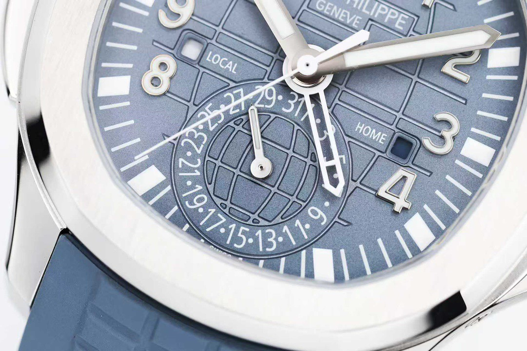 【 Case 】 With a diameter of 40.8MM, it is still made of Patek Philippe's classic stainless steel material. The rounded octagonal case is just right, and the shark fin shaped design on the left side of the case is a button that can quickly adjust the central hollow hour hand forward and backward. This pointer can be used to indicate the second time zone time.